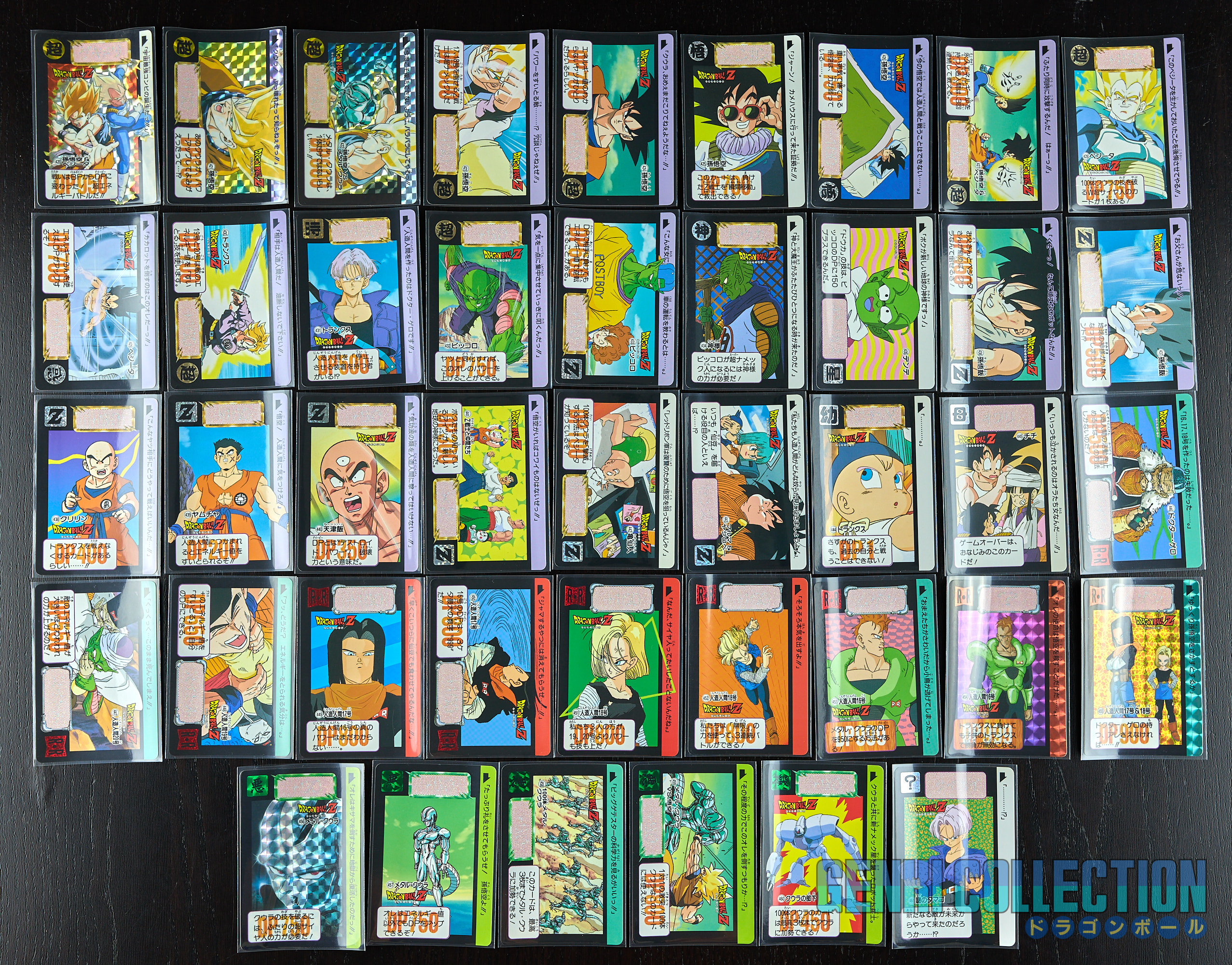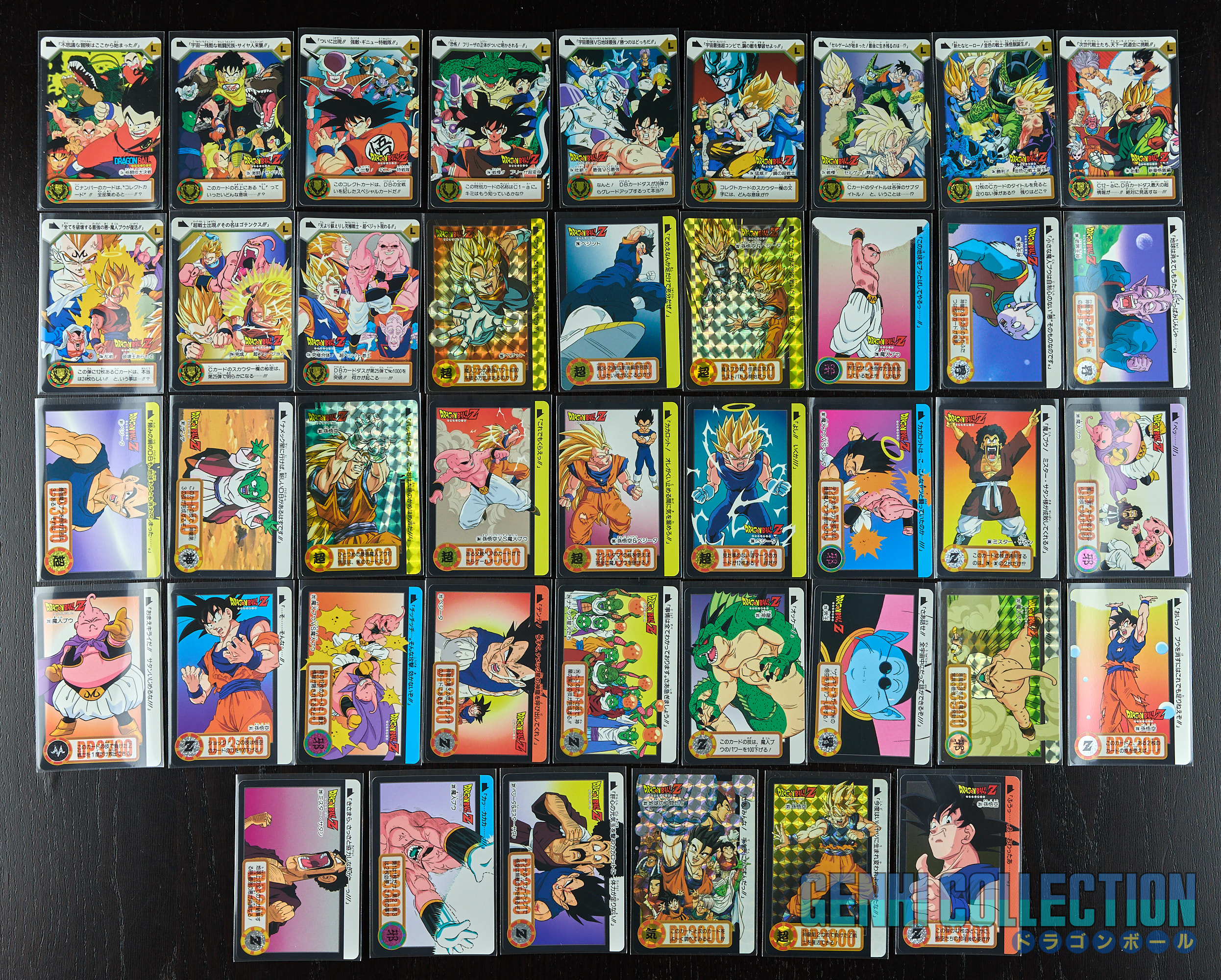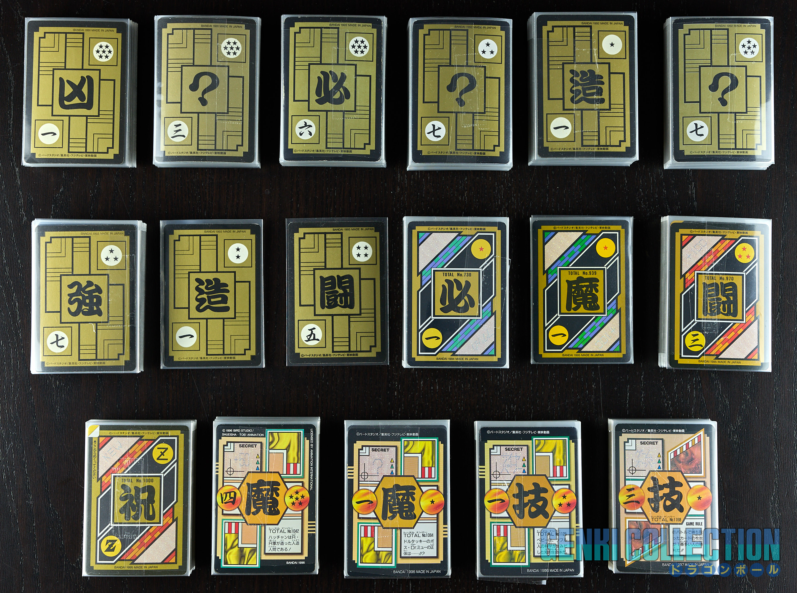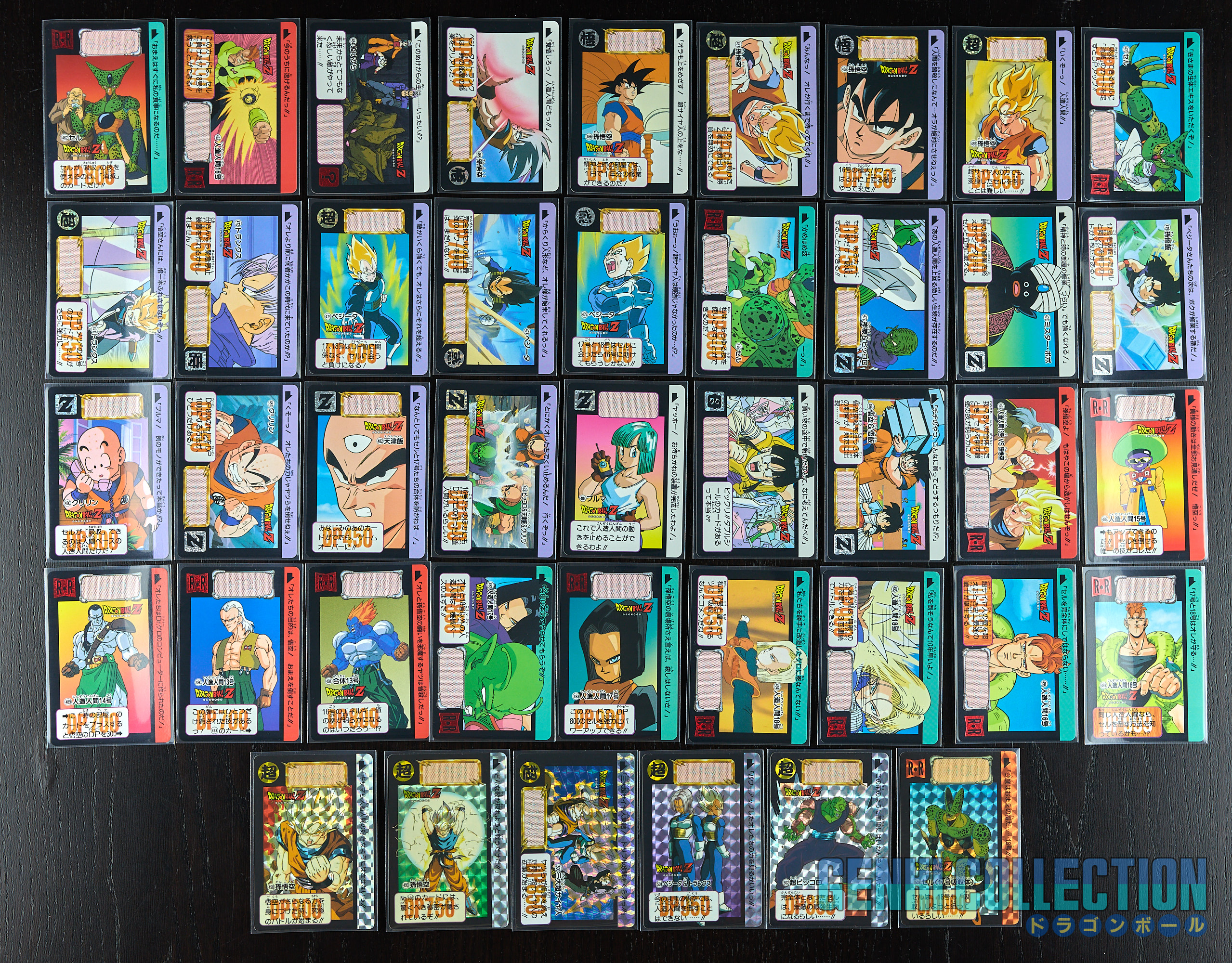 Set of Japanese Carddass cards, complete sets of common cards (regulars) parts 9 to 14, part 18, and parts 24 to 29 + numerous prisms including unpeeled hiddens. All cards are Japanese editions from the 90s and range from good condition to near mint. Full details: