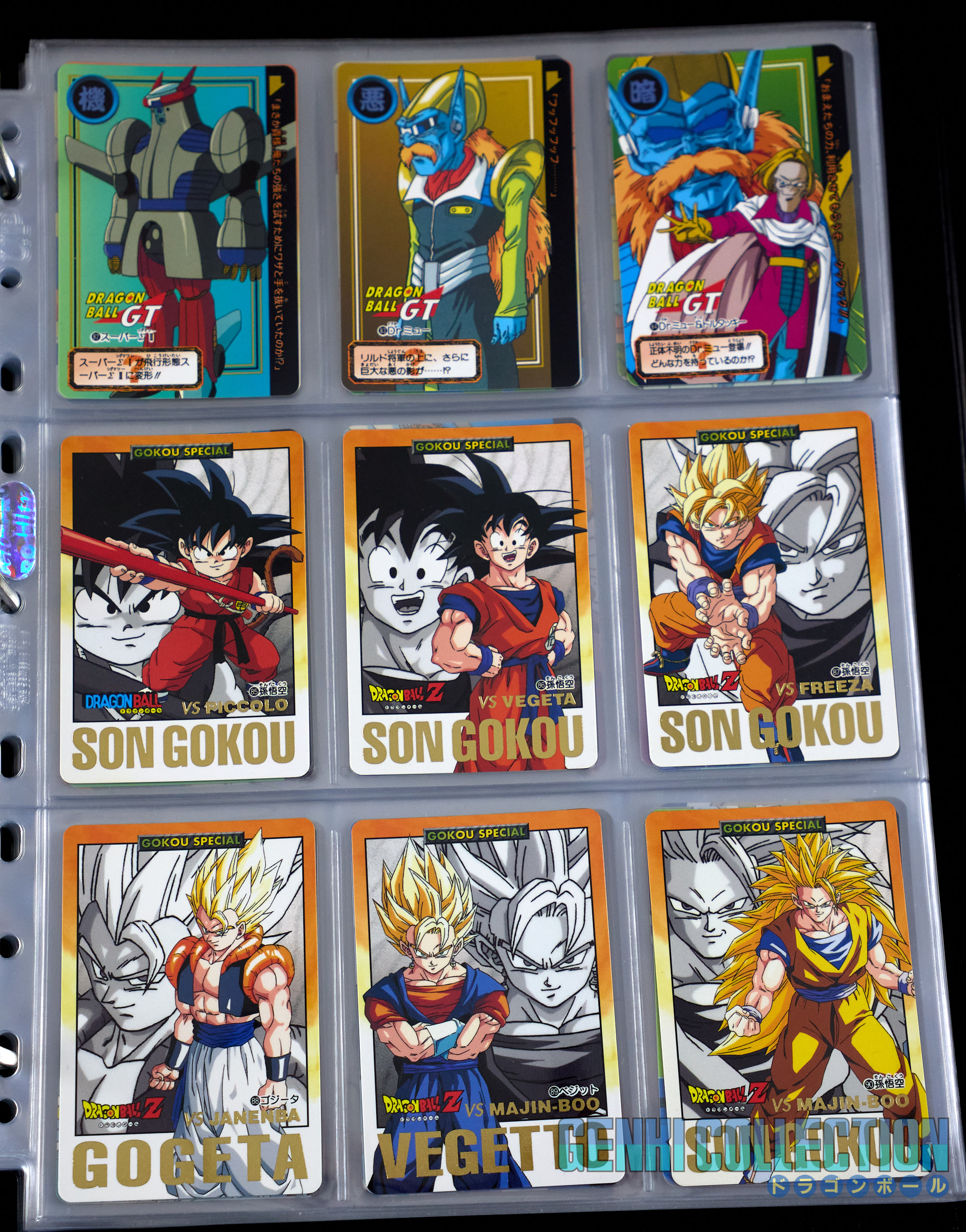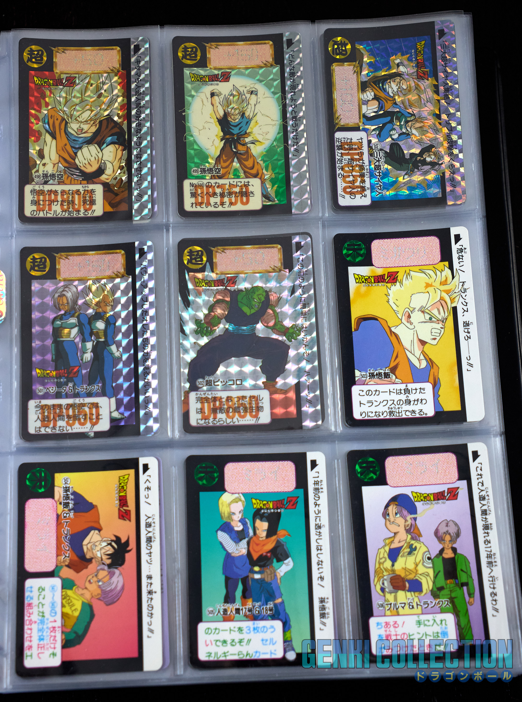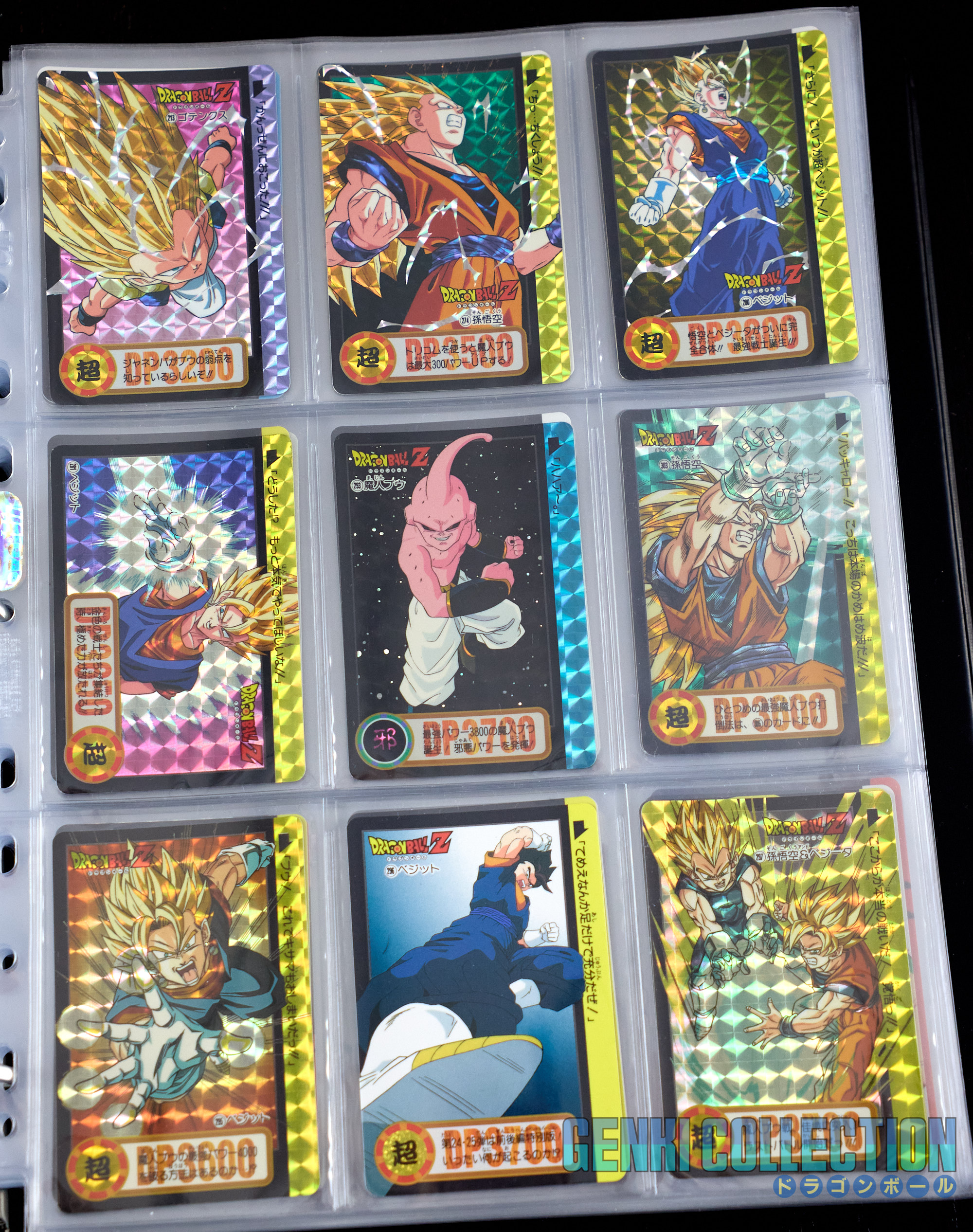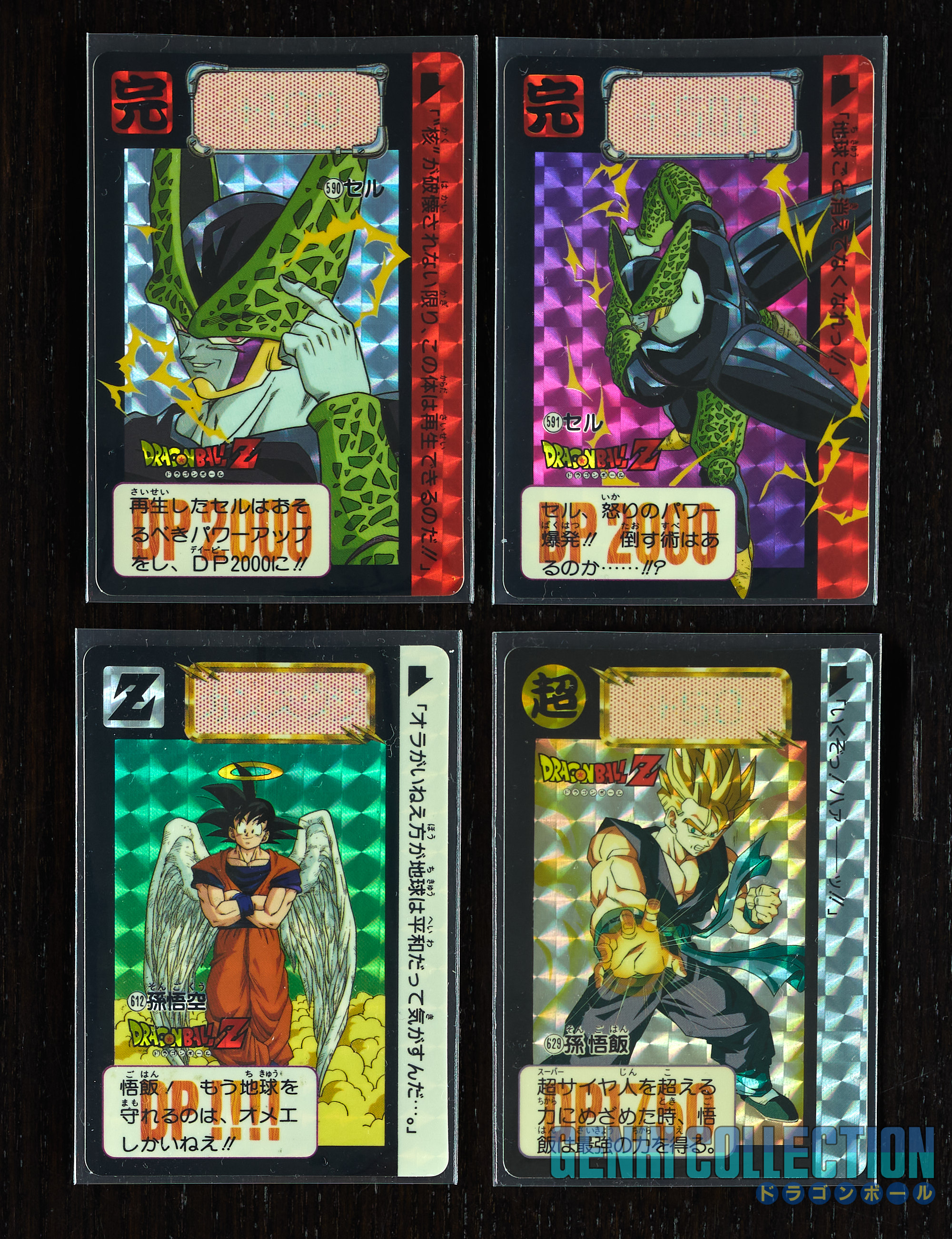 Set of Japanese Carddass cards, complete sets of common cards (regulars) parts 9 to 14, part 18, and parts 24 to 29 + numerous prisms including unpeeled hiddens. All cards are Japanese editions from the 90s and range from good condition to near mint. Full details: