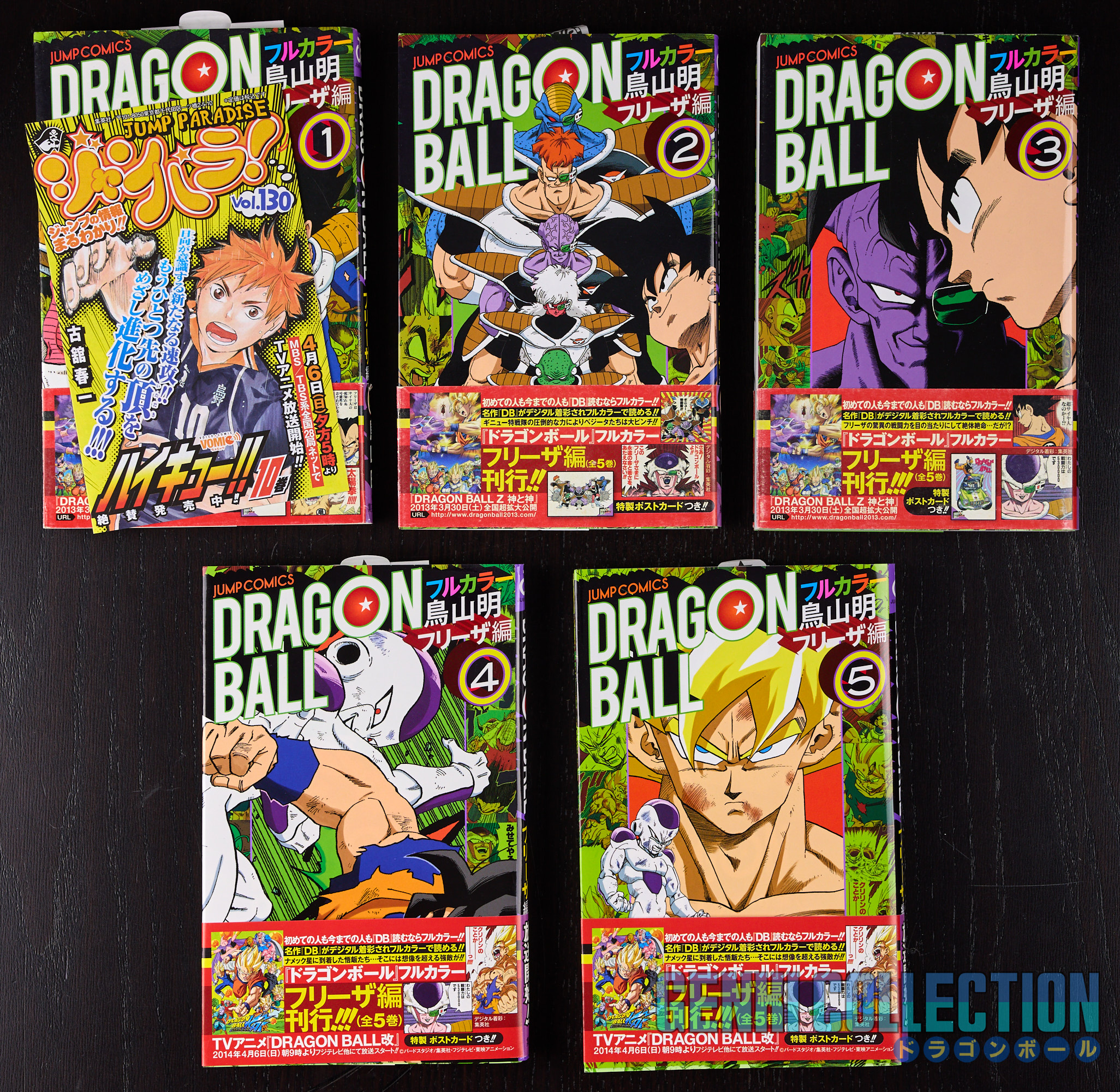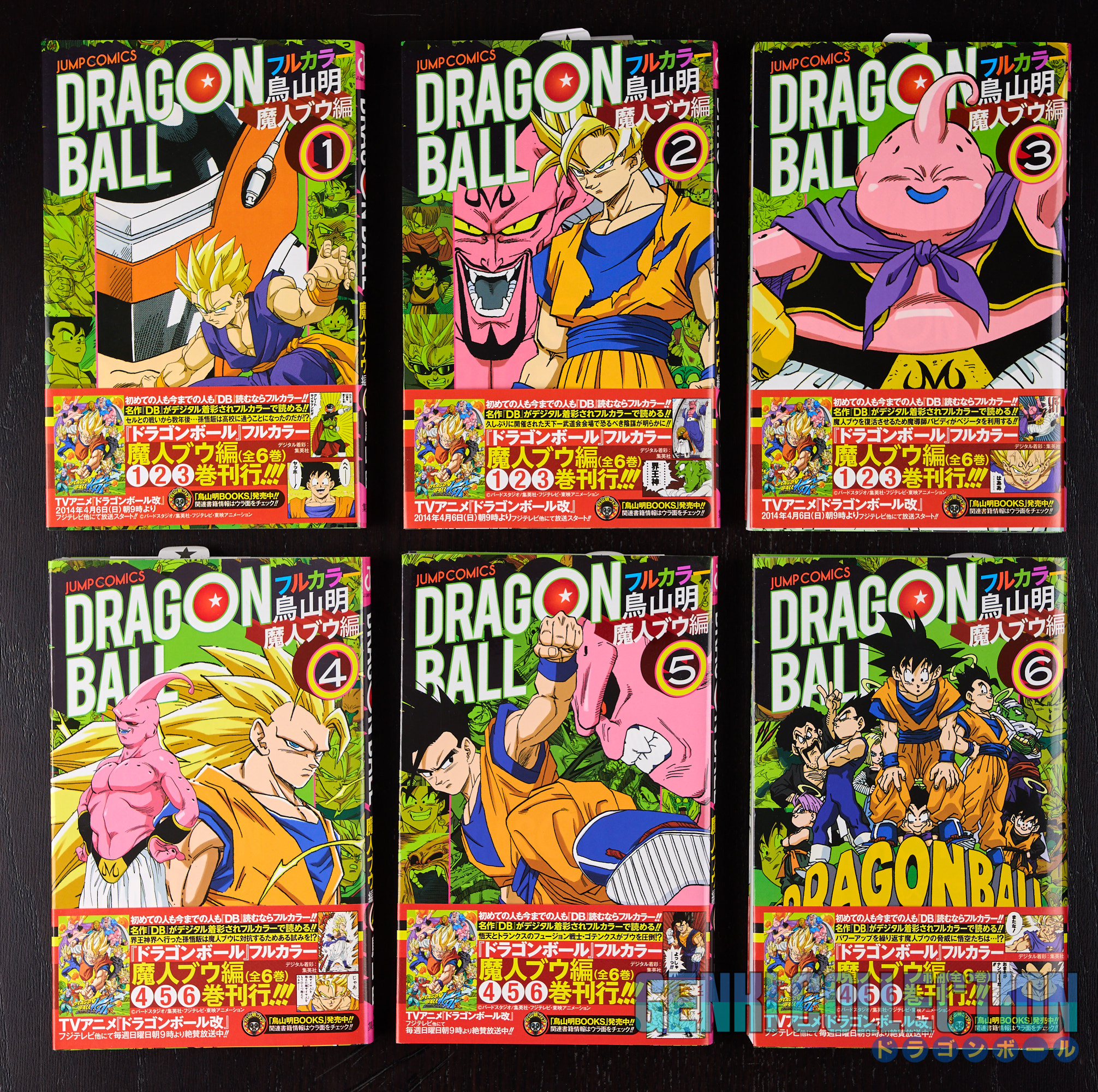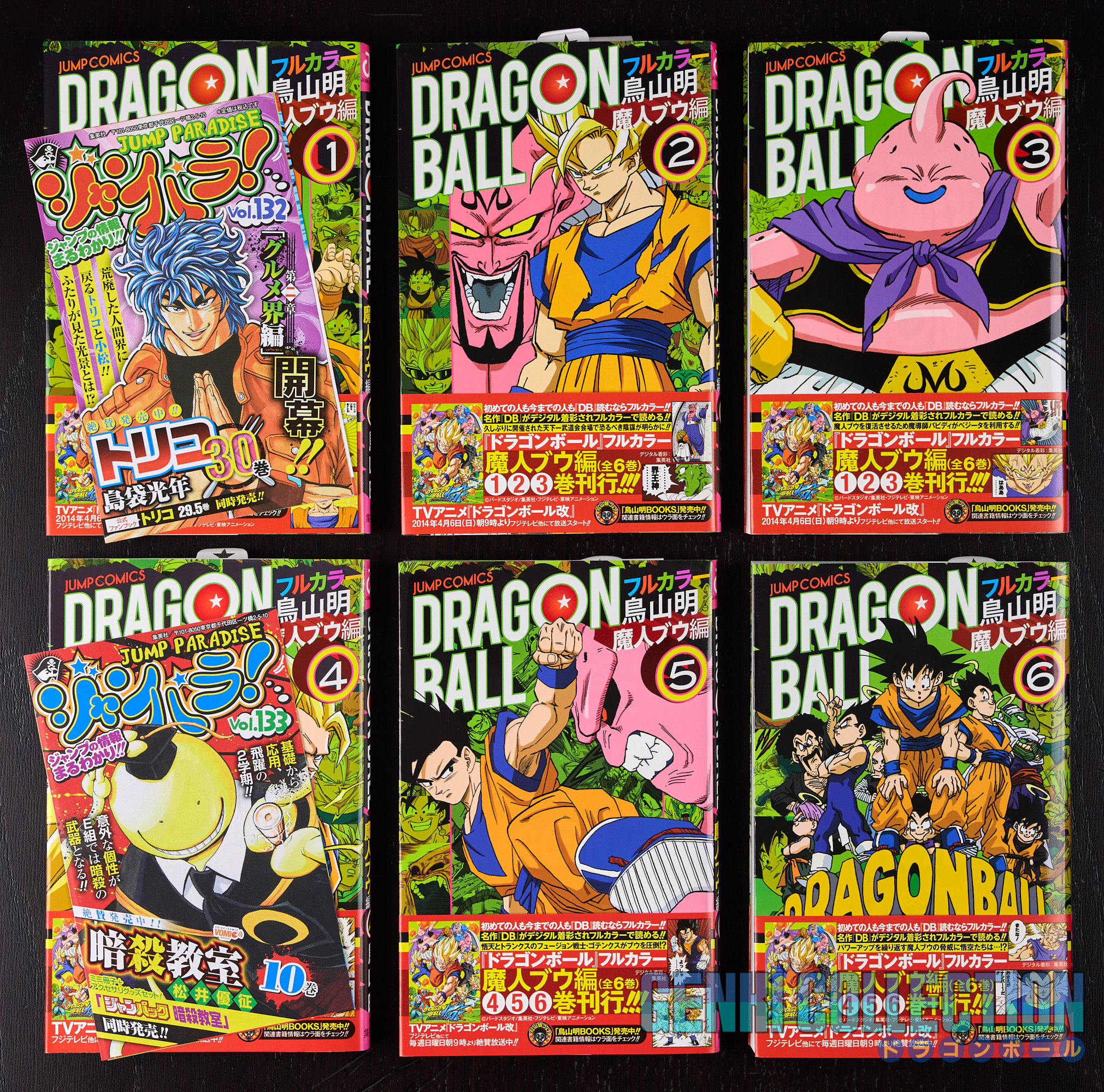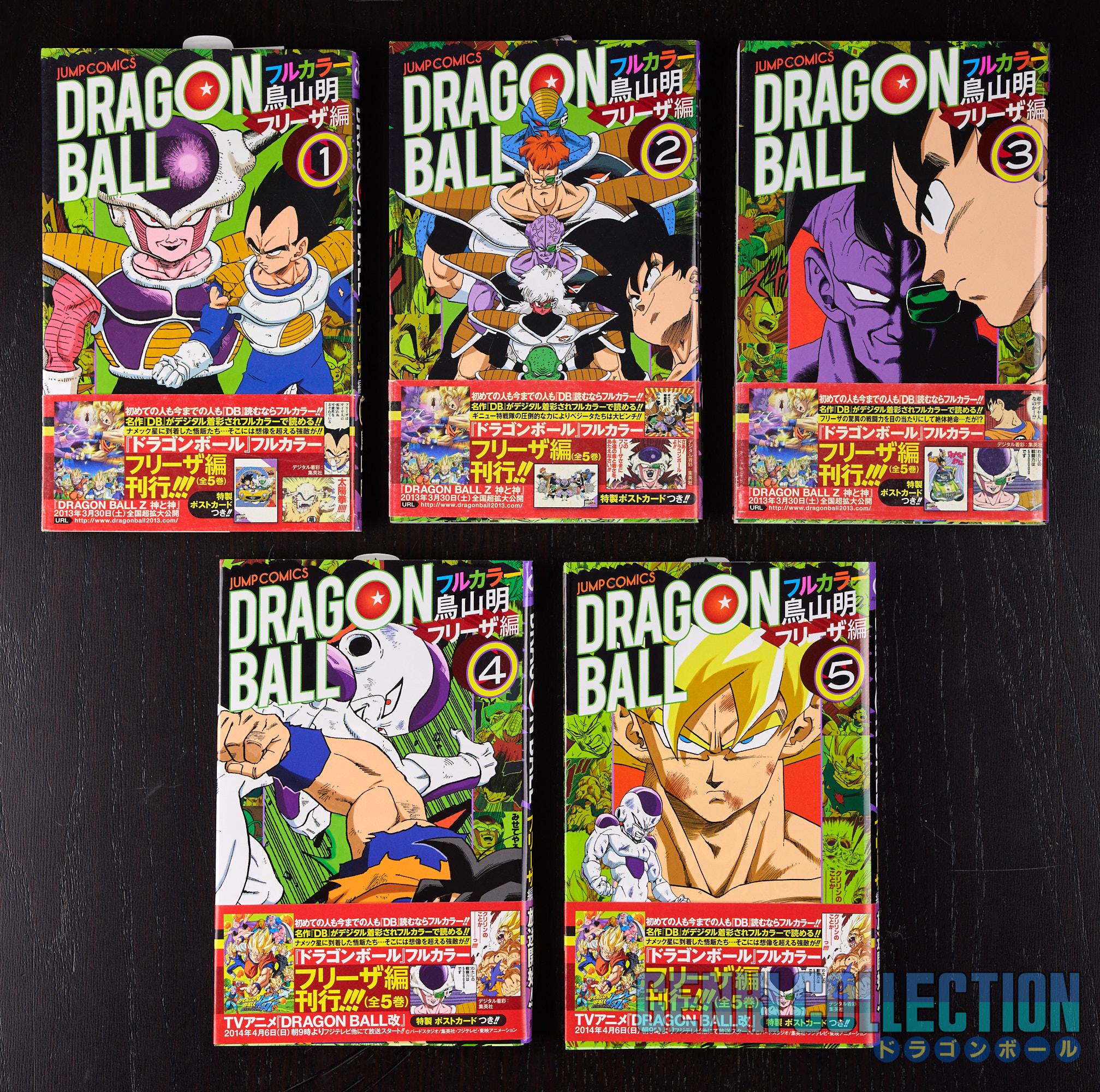 Intégrale des 32 tomes japonais Dragon Ball en version Full Color 1ère édition excepté les volumes 4 et 5 de la saga Freeza en seconde édition). Tous les tomes possèdent leur obi et pour certains un flyer publicitaire est également présent. Série en très bon état général. L'édition Full Color reprend l'édition originale, mais entièrement colorisée. Une belle manière de redécouvrir la série. La numérotation n'est pas continue, elle est proposée par Arcs (Enfance de Gokû 8 tomes, Piccolo Daimaô 4 tomes, Saiyans 3 tomes, Freeza 5 tomes, Cyborgs 6 tomes, Majin Boo 6 tomes.)