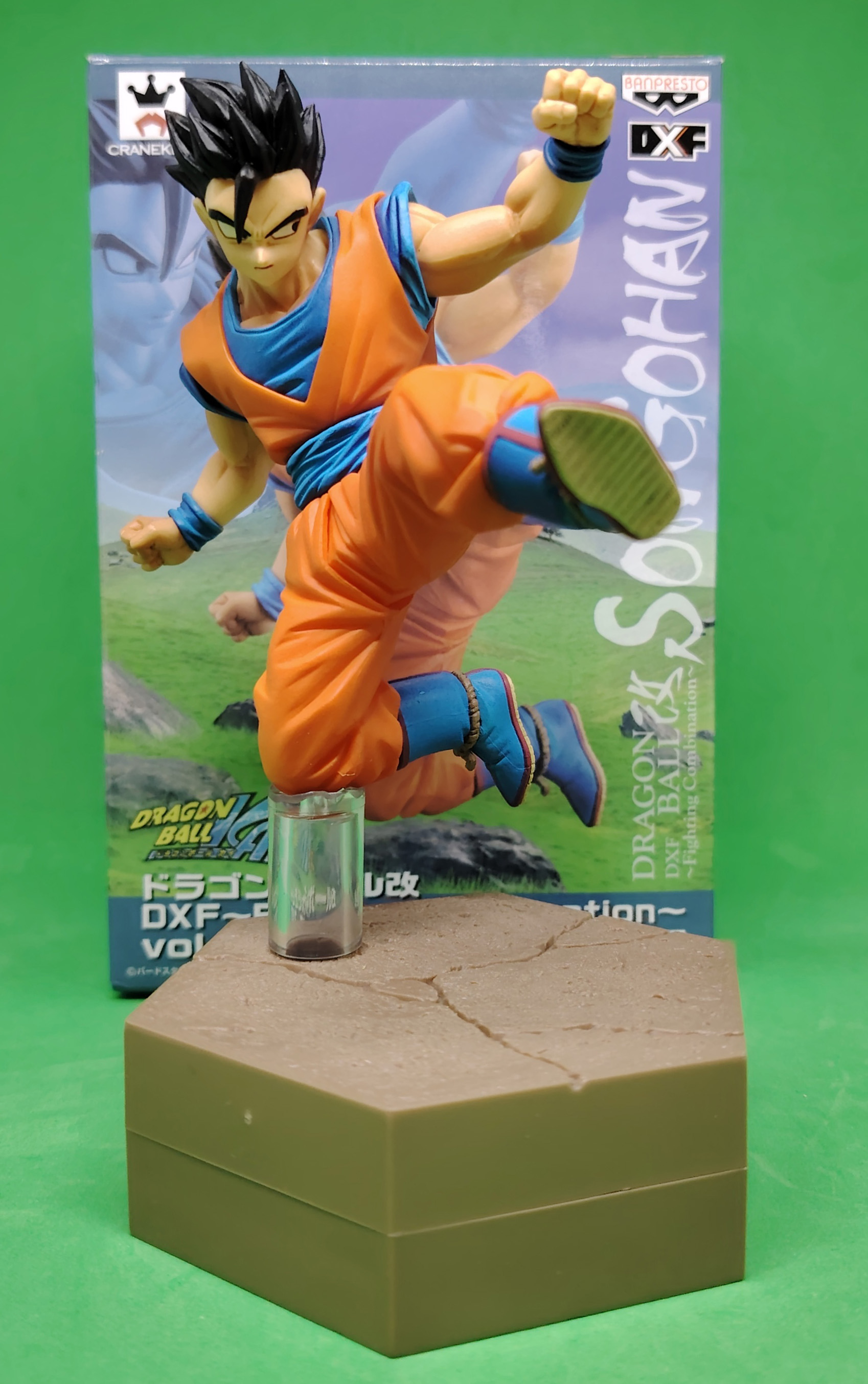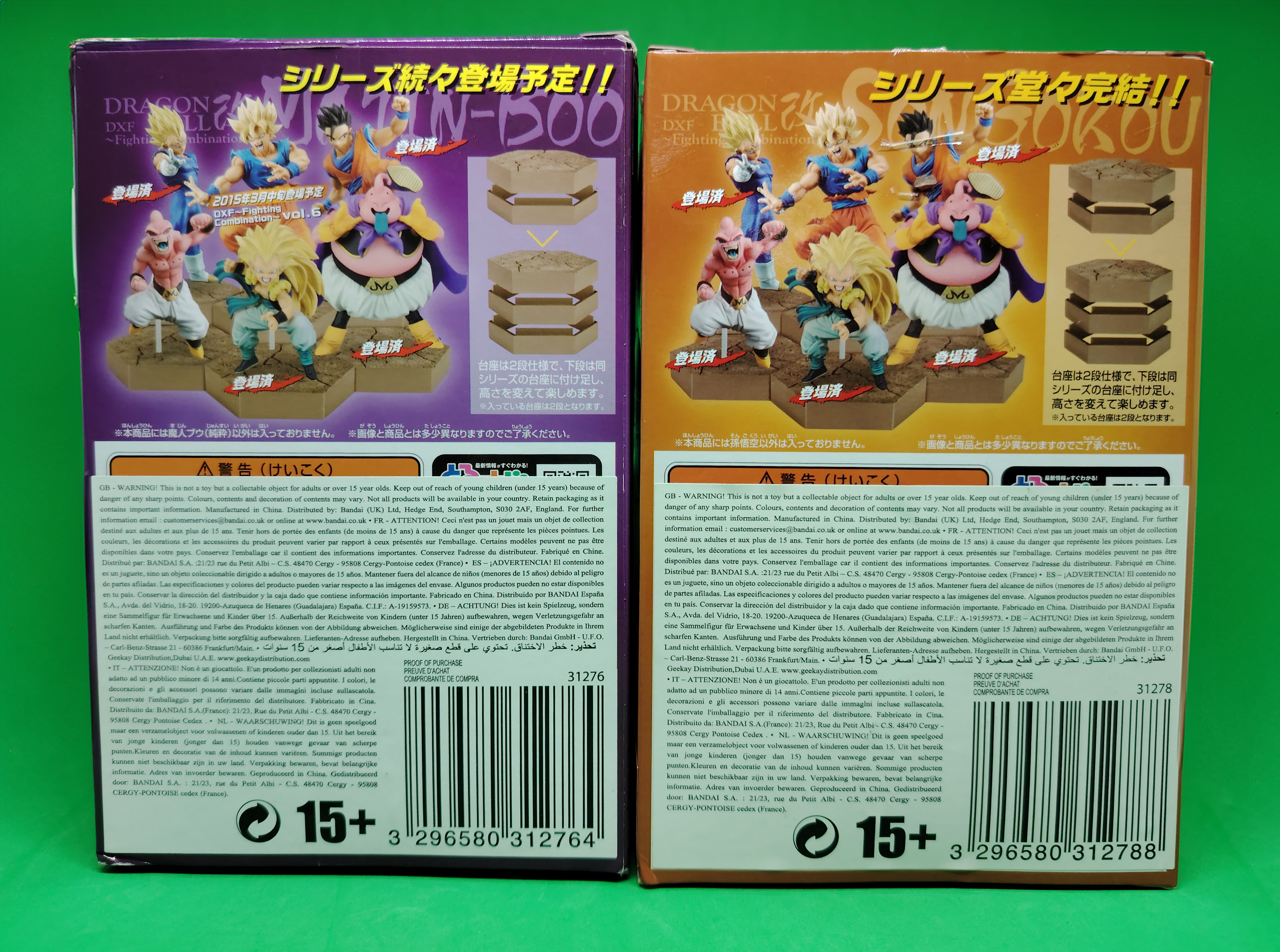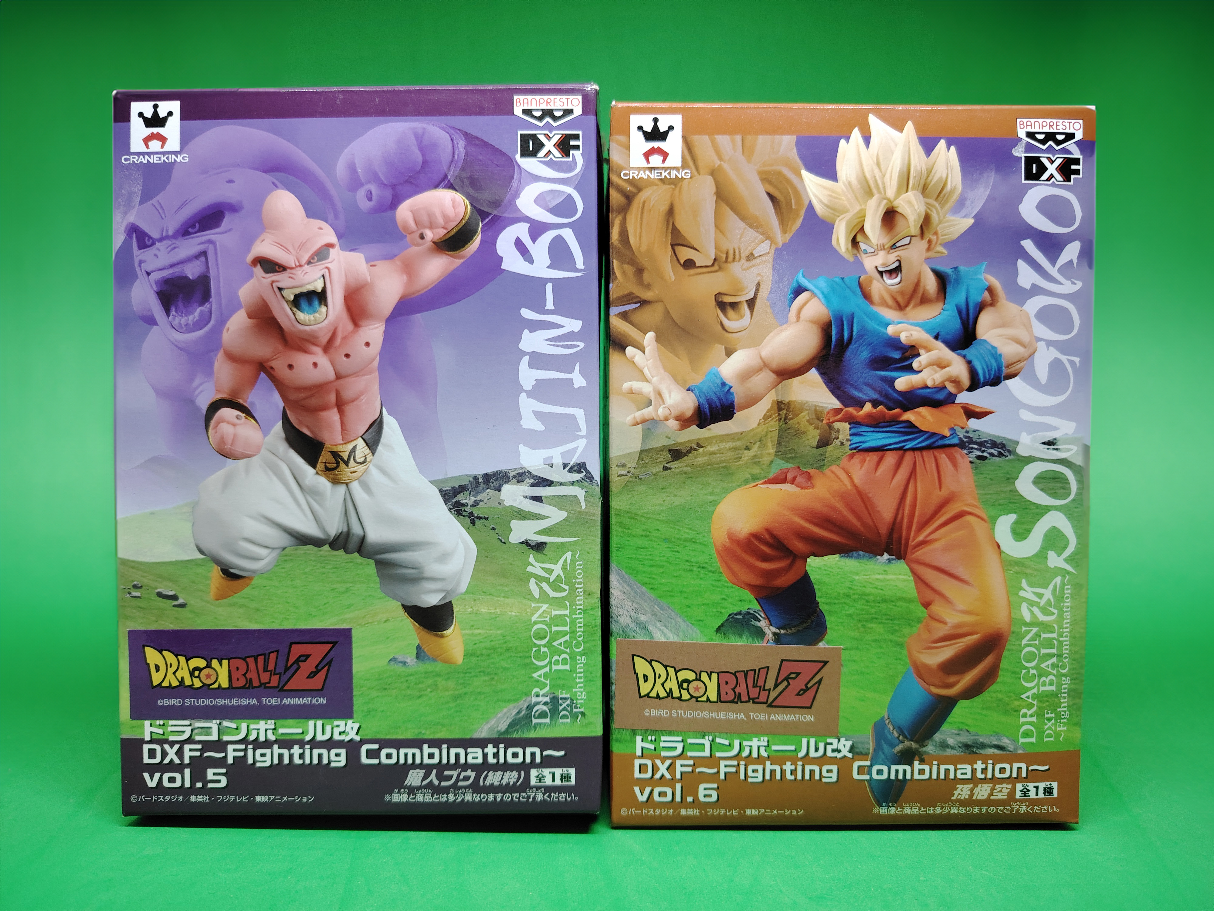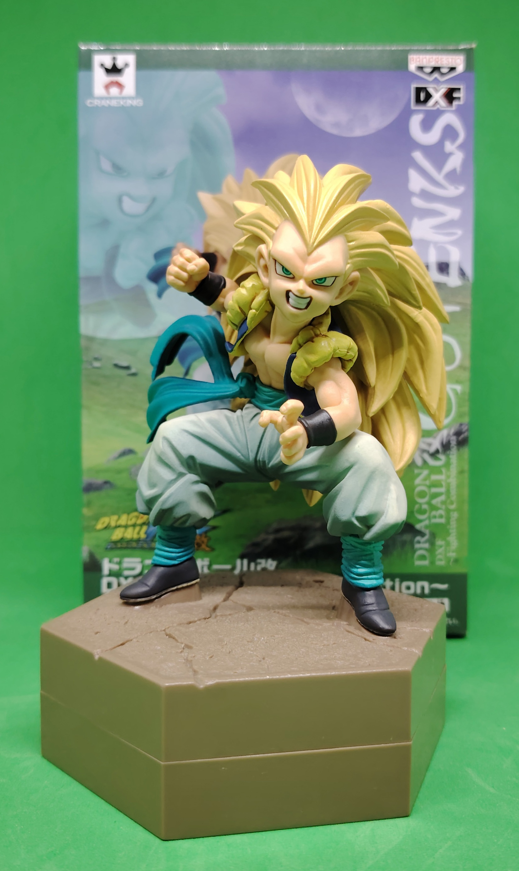 lot de 4 figurines avec boites DRAGON BALL Z DXF FIGHTING COBINATION volumes 3, 4, 5 et 6, sorties en 2014 représentant les personnages de GOKU SUPER SAIYAN, KID BUU, GOTENKS SUPER SAIYAN 3 et GOHAN ULTIME. À noter qu'il manque la tige transparente pour la figurine Gotenks Super Saiyan 3 mais ne présente pas de souci pour étre exposé. Il manque egalement le sur-carton interieur et embalage interieur.