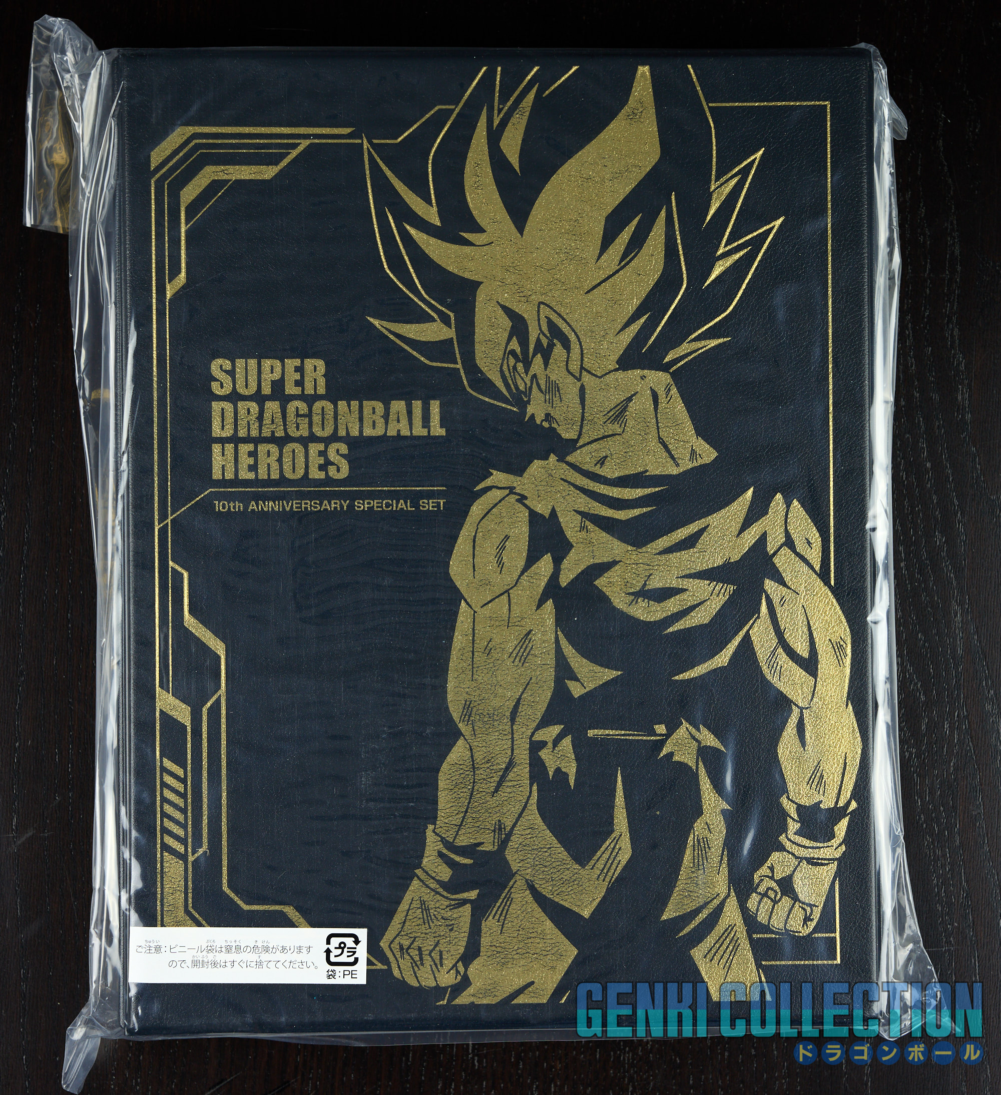 Dragon Ball Super Heroes 10th anniversary box set, released in 2021. The contents are new, but the cardboard box has been unsealed. Contains a binder and various exclusive cards.