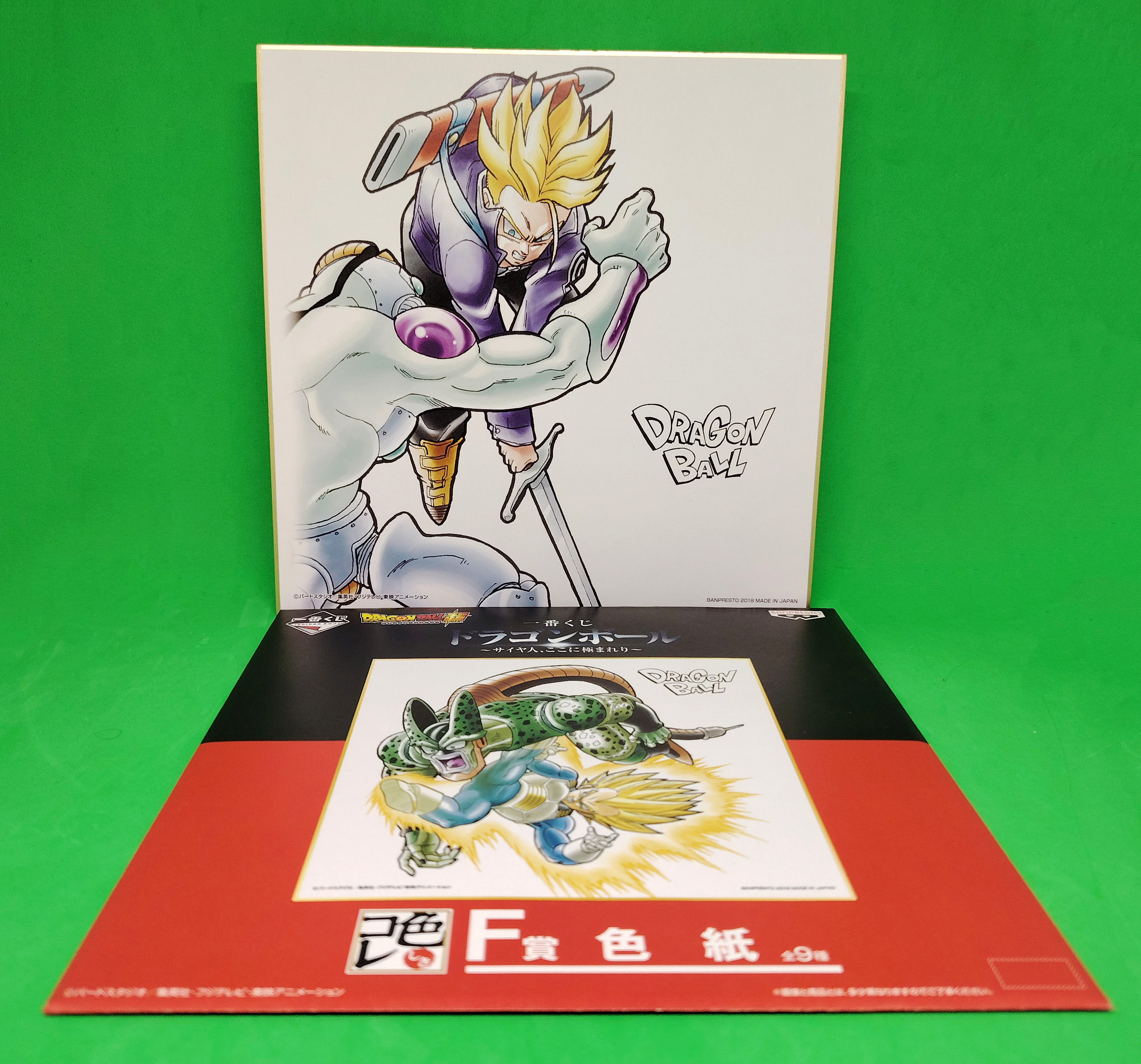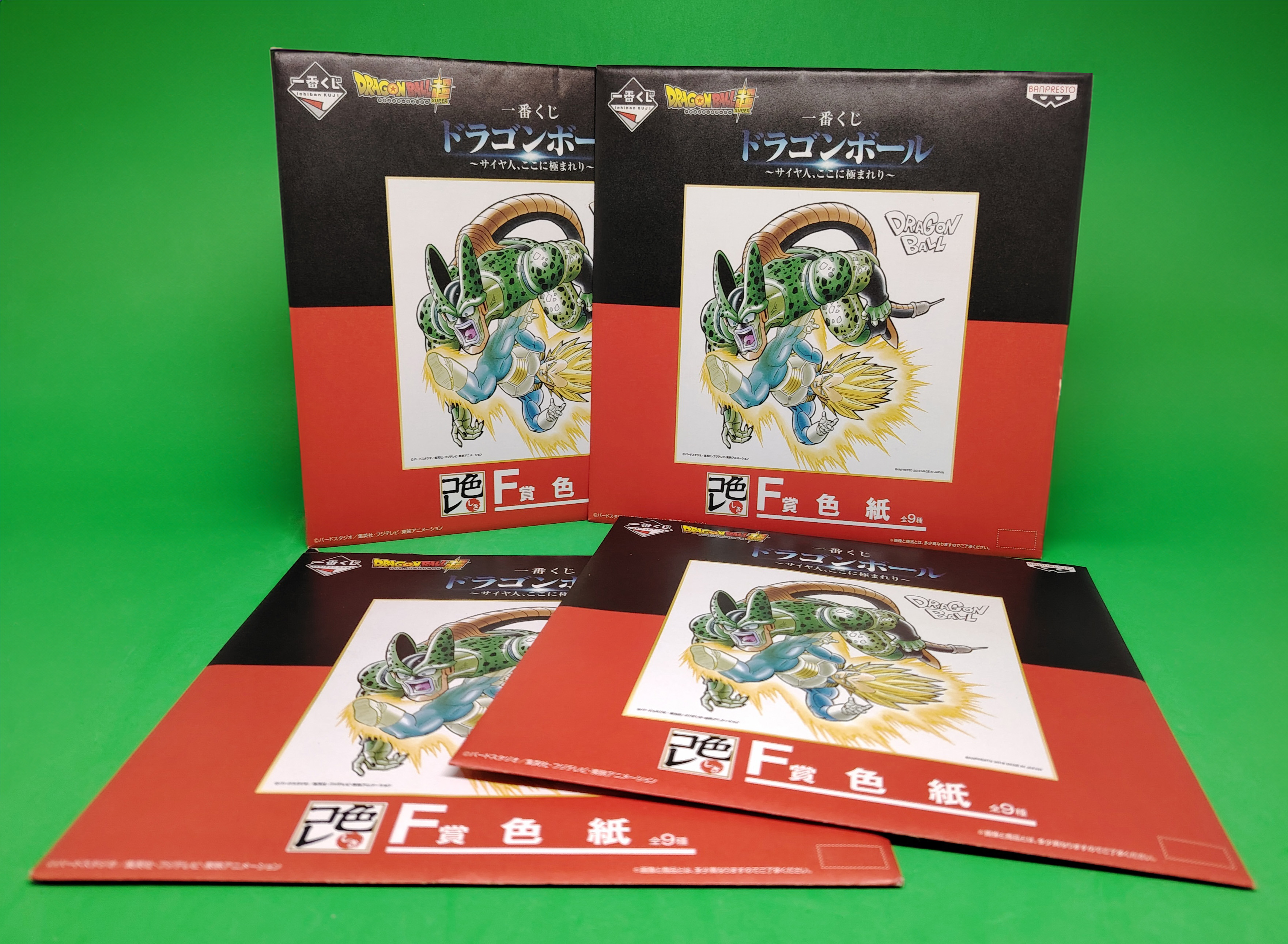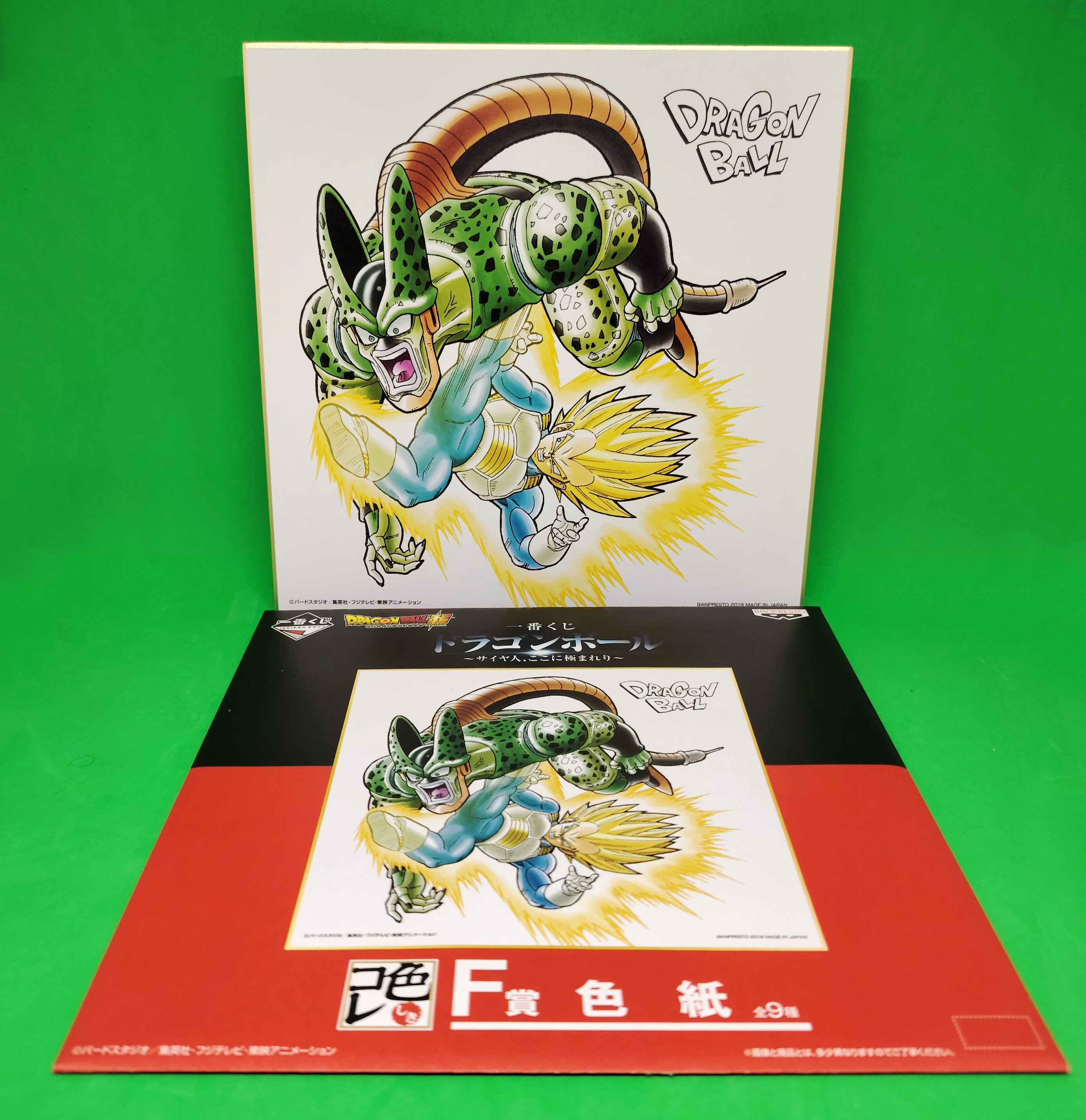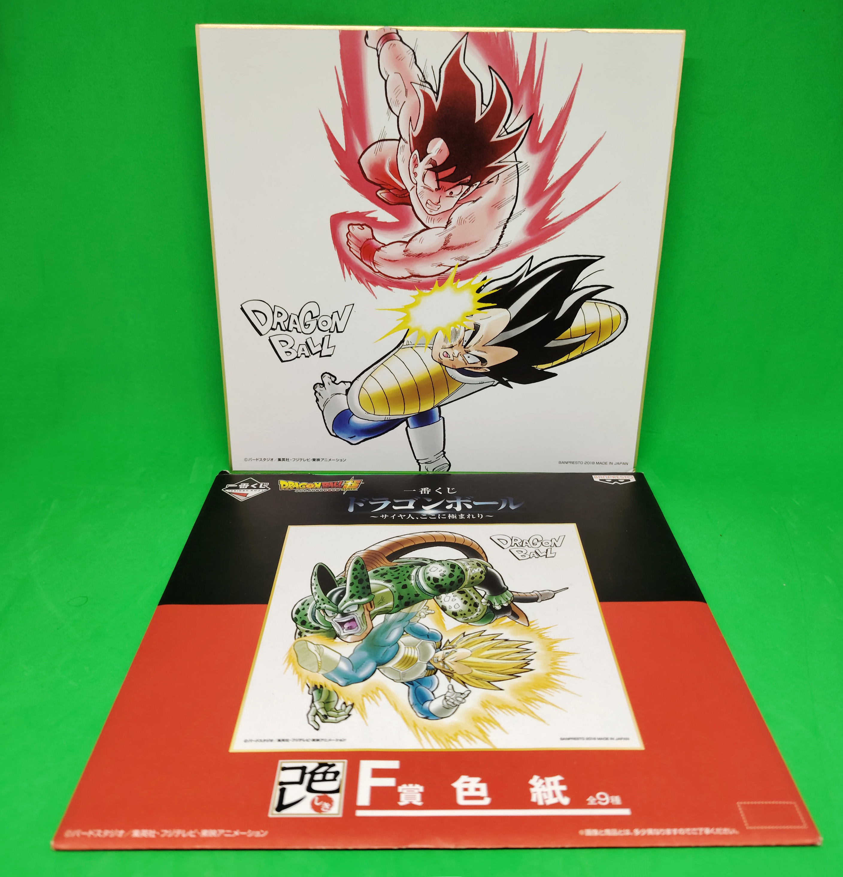 Gros lot ICHIBAN KUJI "La Limite des Saiyans" de 2018 comprenant 1 figurine en boite de Goku Super Saiyan (Lot B), 4 shikishis (Goku Oozaru, Trunks vs Freezer, Vegeta vs Cell, Goku vs Vegeta) (Lot F), 1 clear file de Gotenks Super Saiyan 3 (Lot H), 1 grand shikishi (bonus dernier ticket de la loterie), 1 affiche de la loterie et 1 présentoir de la loterie.