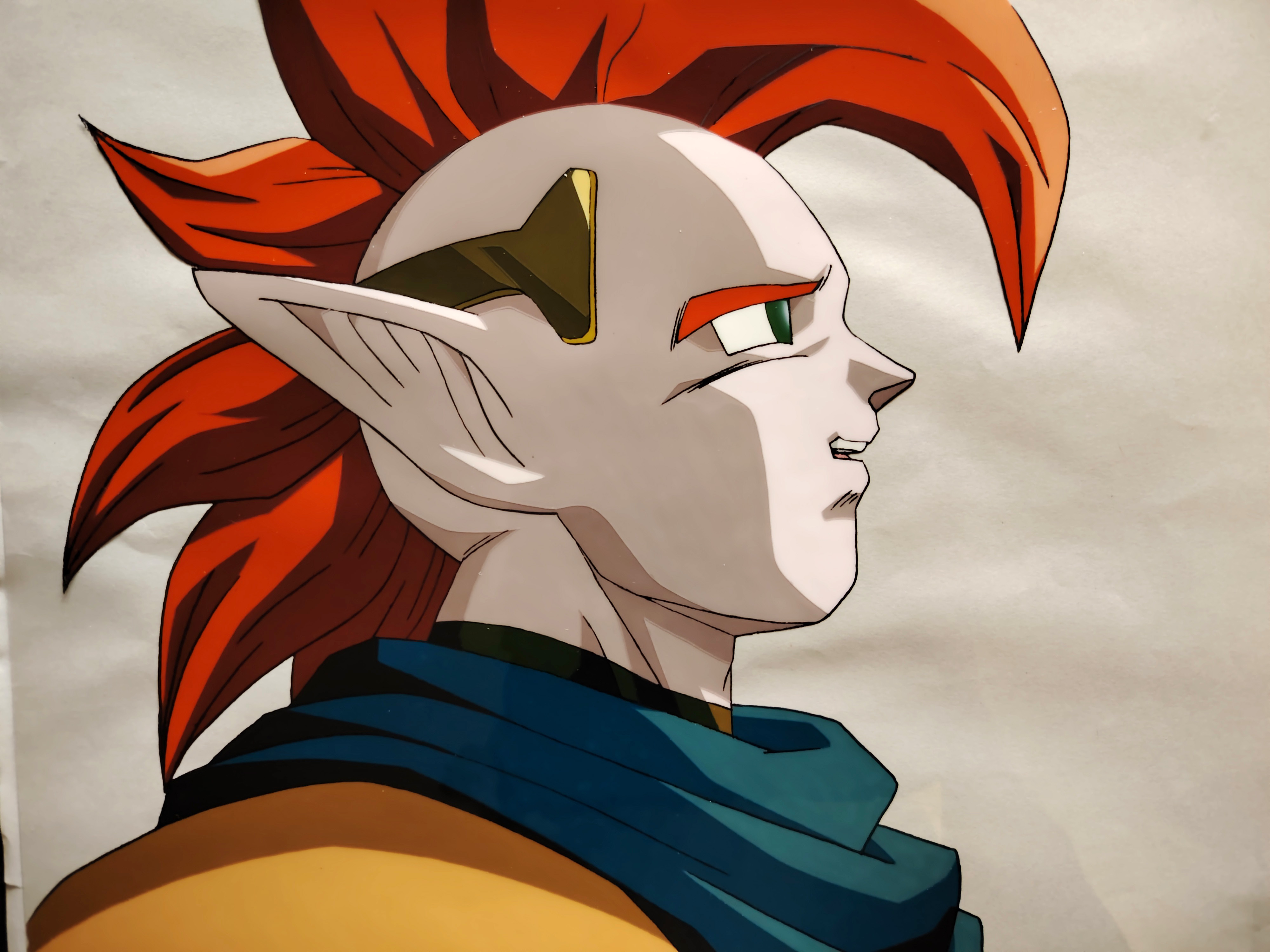 Cellulo Original DRAGON BALL Z à l'encre et à la gouache collé a son douga représentant le personnage de Tapion tiré du film 13 "L'attaque du dragon", "L’Explosion du poing du dragon !! Si Goku n’y arrive pas, qui le pourra ?", "龍拳爆発!!悟空がやらねば誰がやる", produit en 1995 par la toei animation.