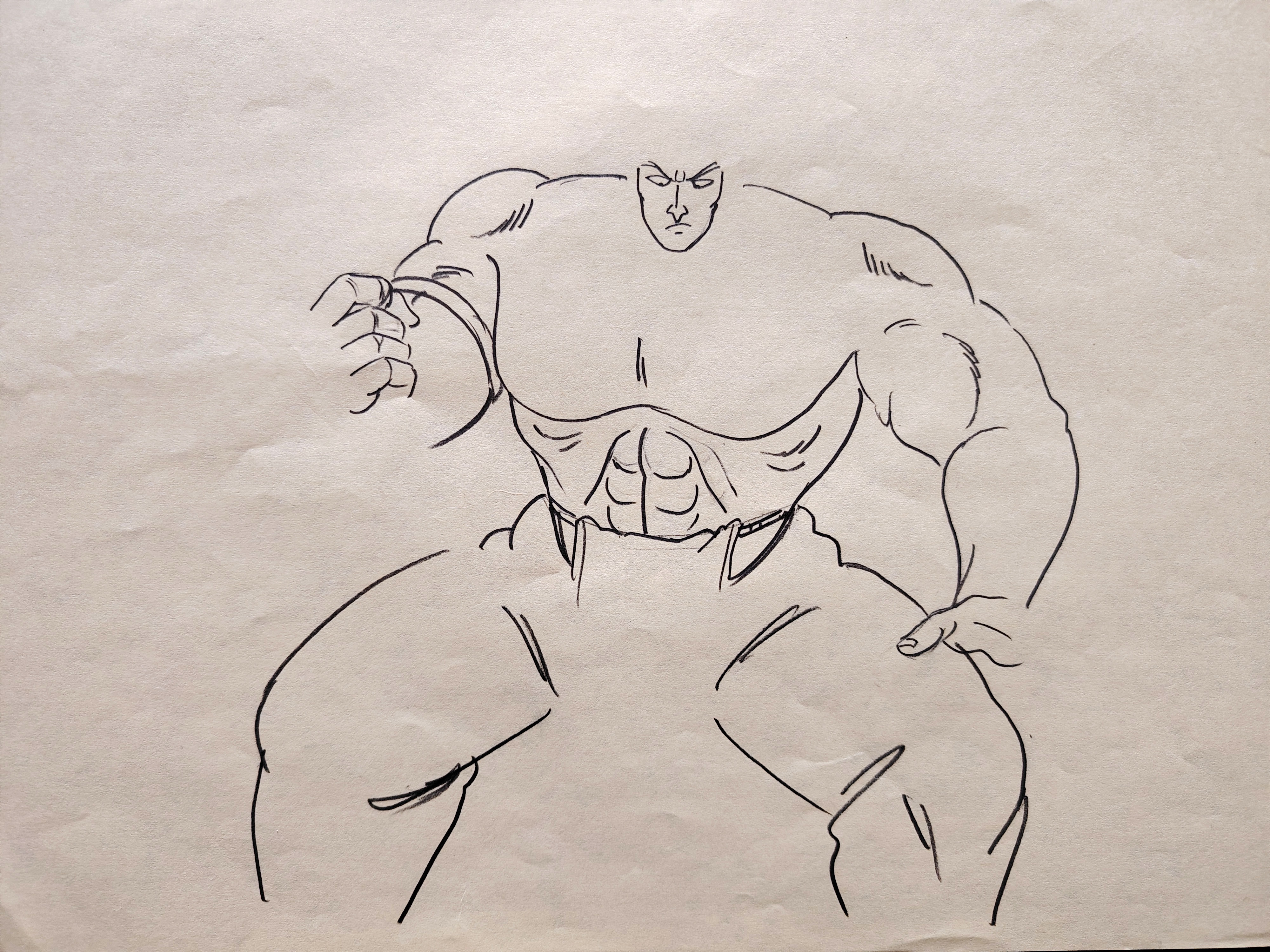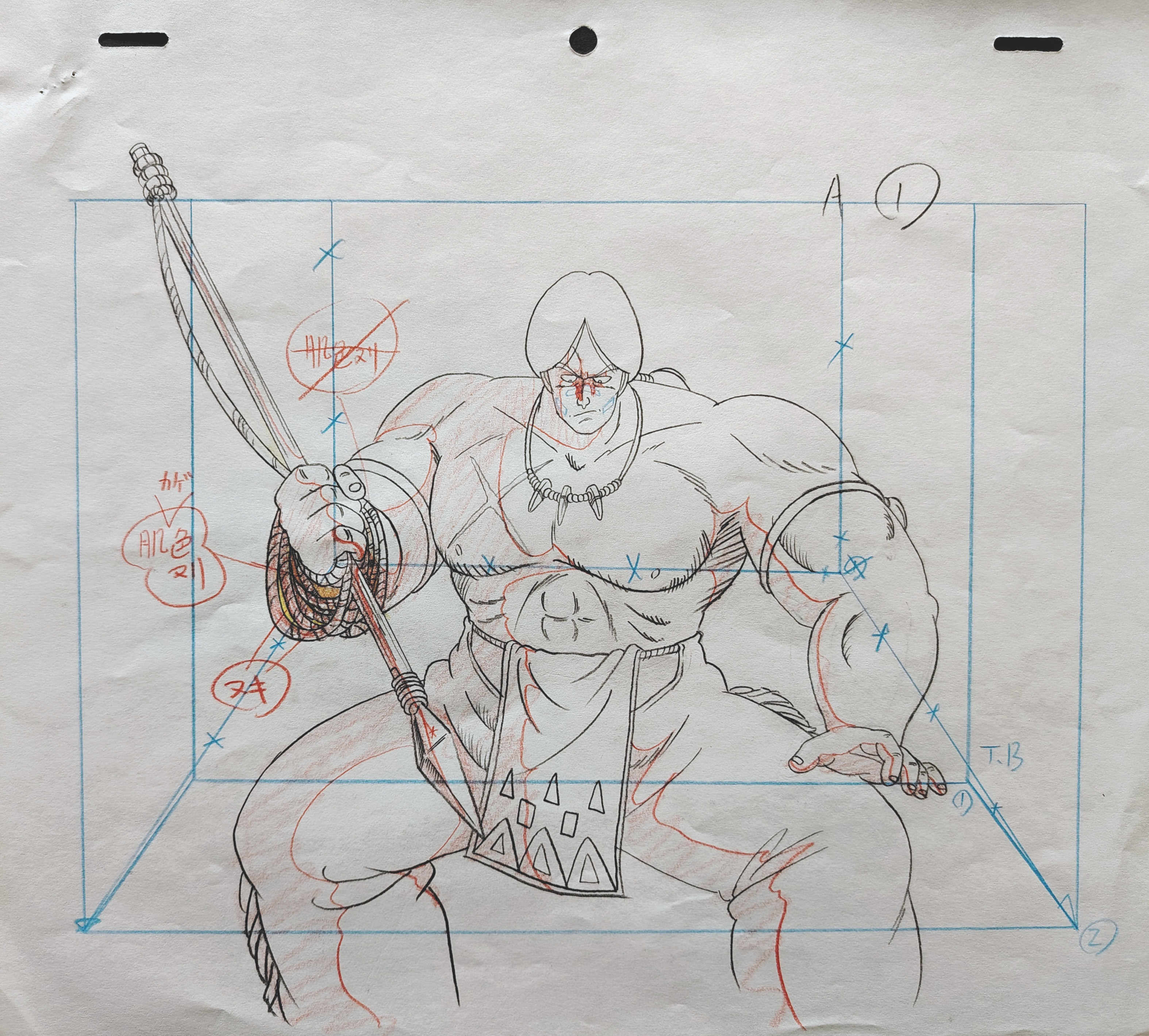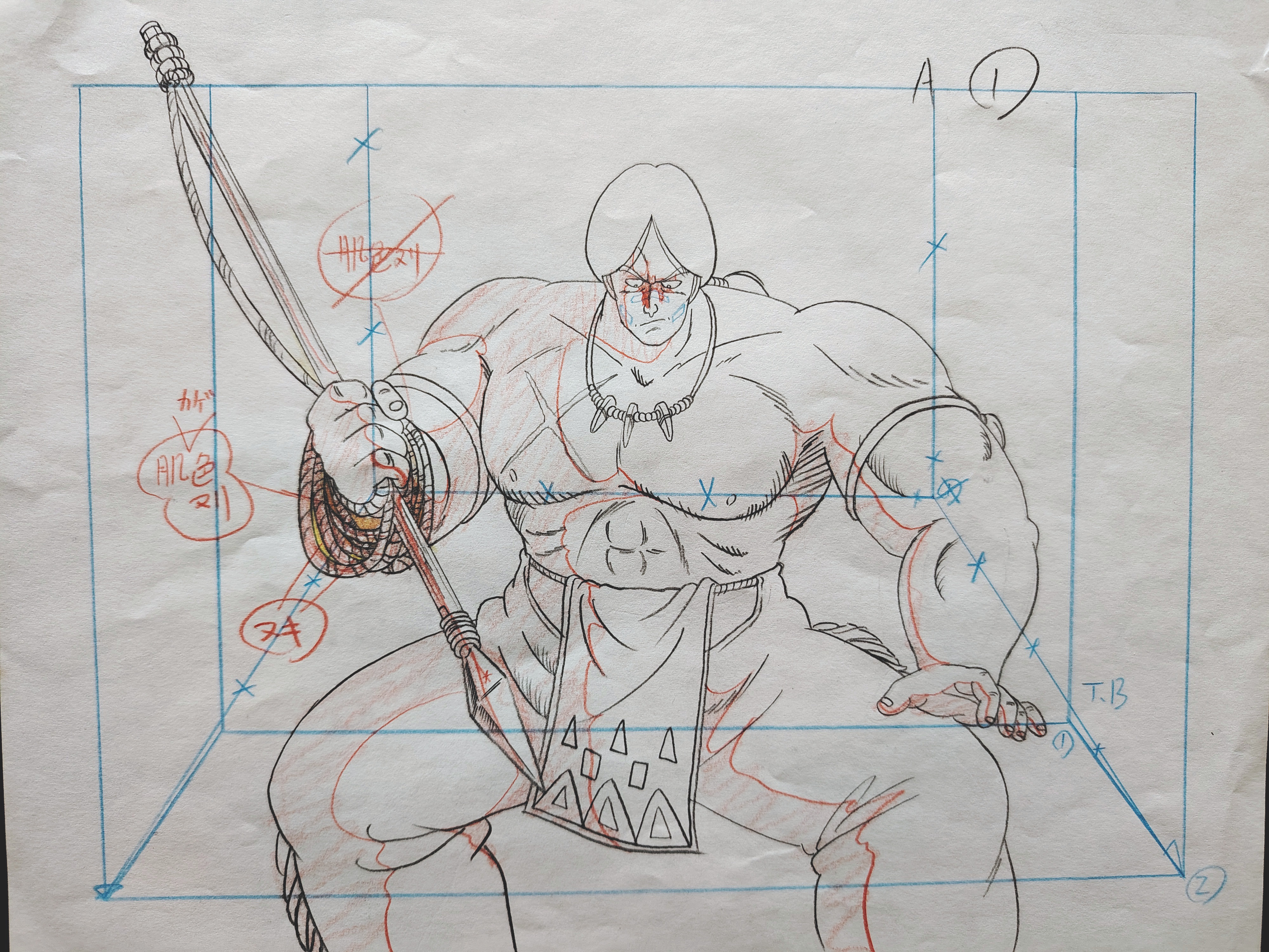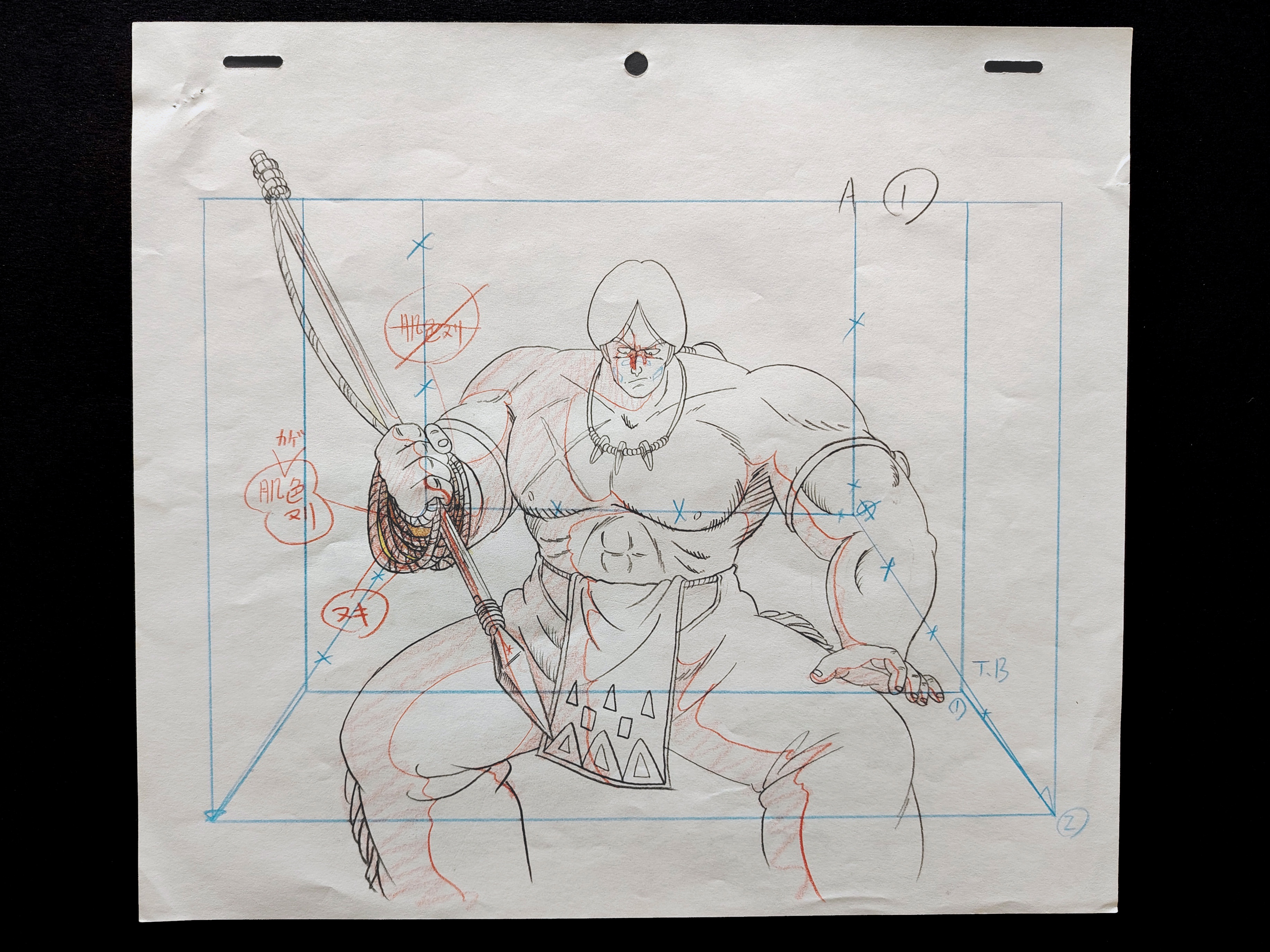 Genga Original DRAGON BALL avec feuille de correction, dessinés a la mine de plomb et au crayon de couleur représentant le personnage de Bora tiré de l'épisode 58 "Karin, la terre sacrée", "魔境の聖地カリン" et produits en 1987 par la Toei Animation.
