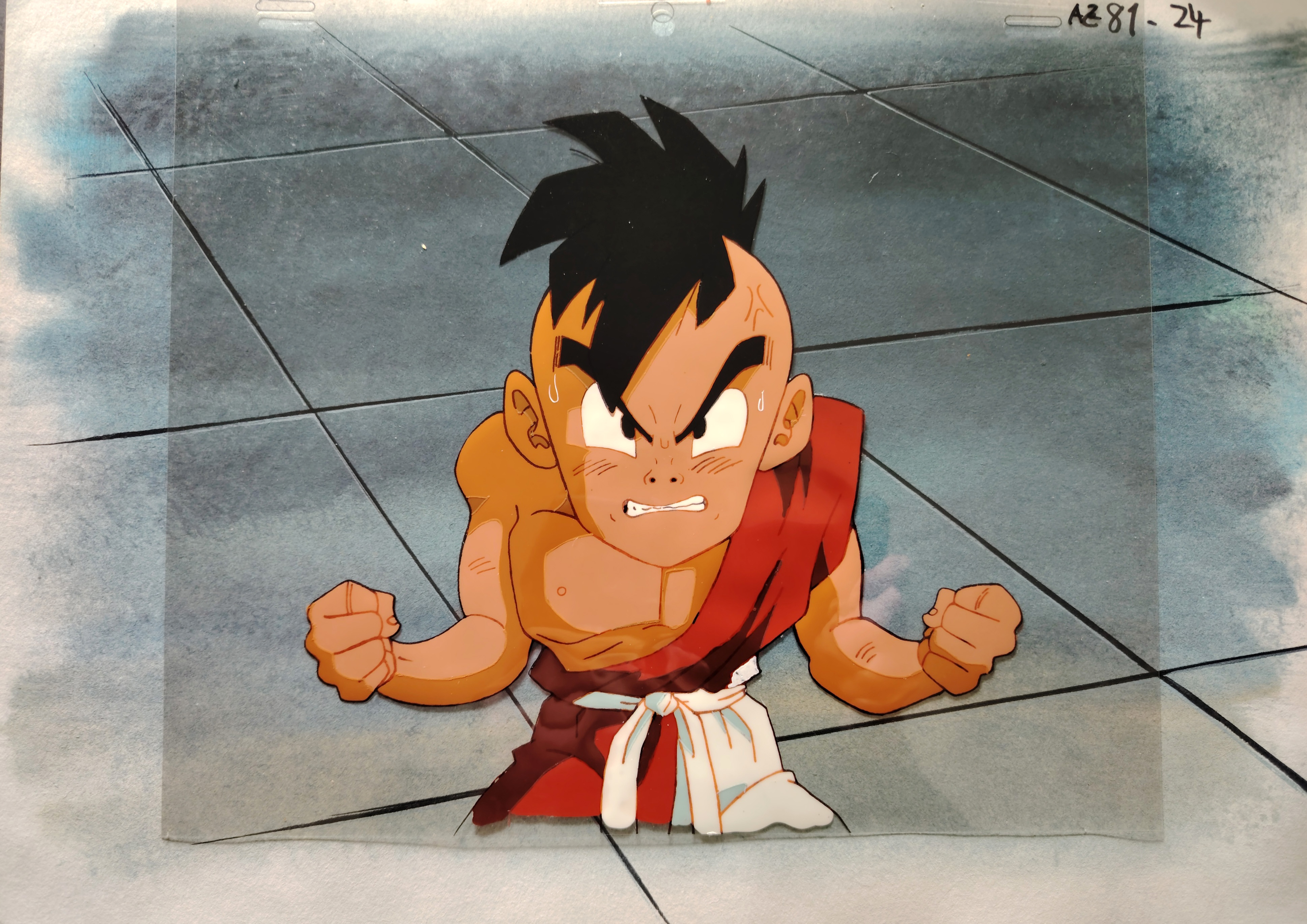 Cellulo original DRAGON BALL Z à l'encre et à la gouache avec décor original peint à la main, non collé et "non Matching", représentant Uub, tiré de l'episode 290 "Je suis Ūbu ! Le Majin d'il y a dix ans !", "オイラはウーブ!今10歳で元魔人!?", produits en 1996 par la Toei Animation.