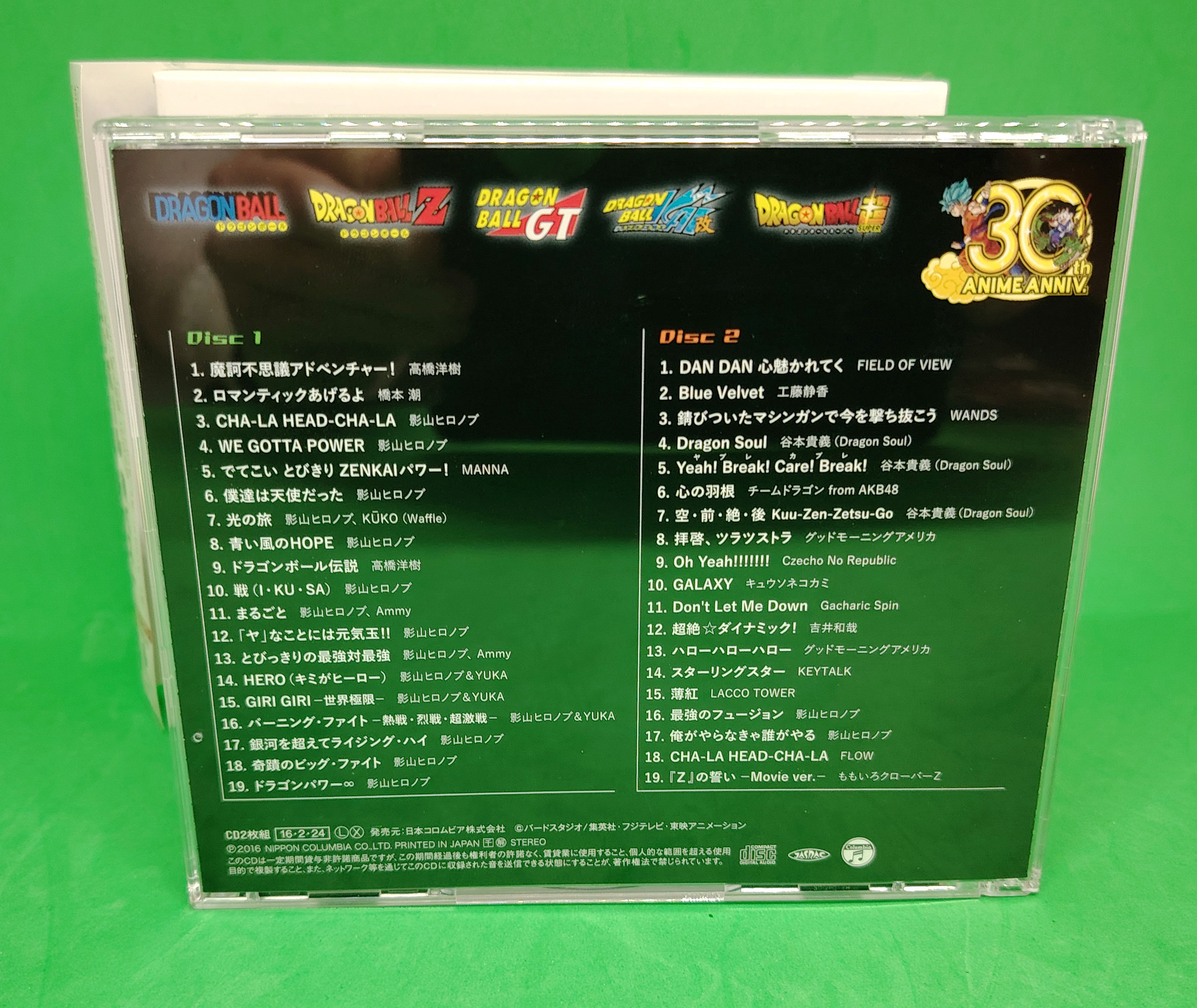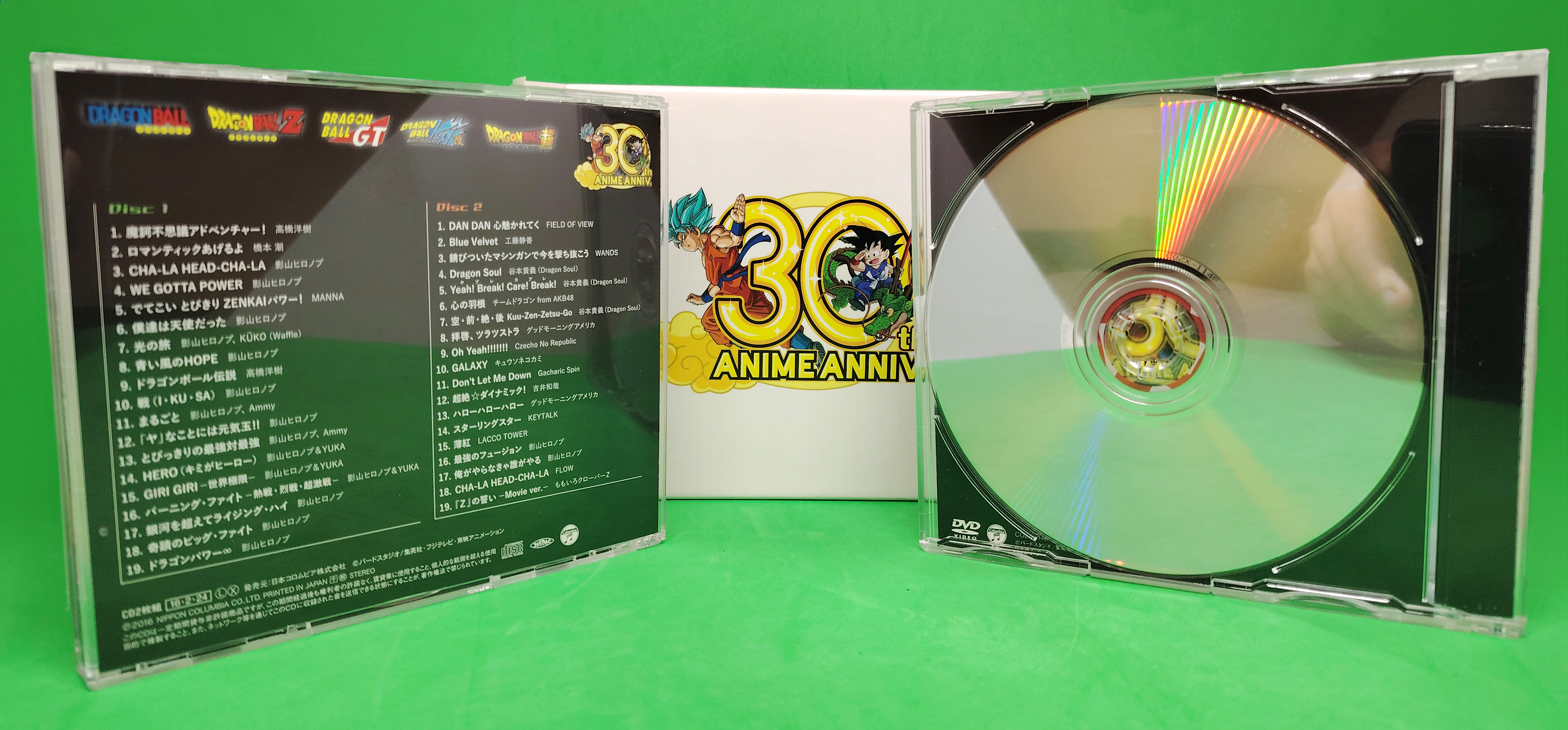 Coffret DRAGON BALL Anime 30th Anniversary Kami BEST contenant 2 CD audio & 1 DVD Label Nippon Columbia sorti en 2016.