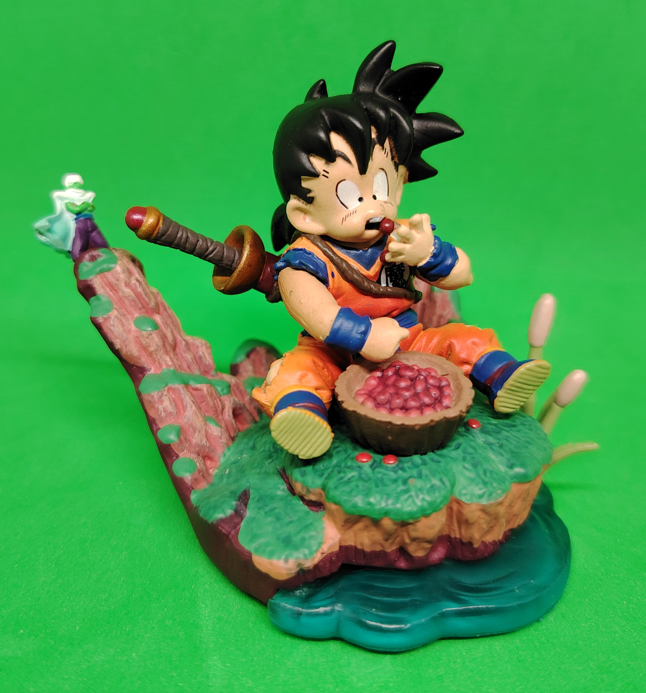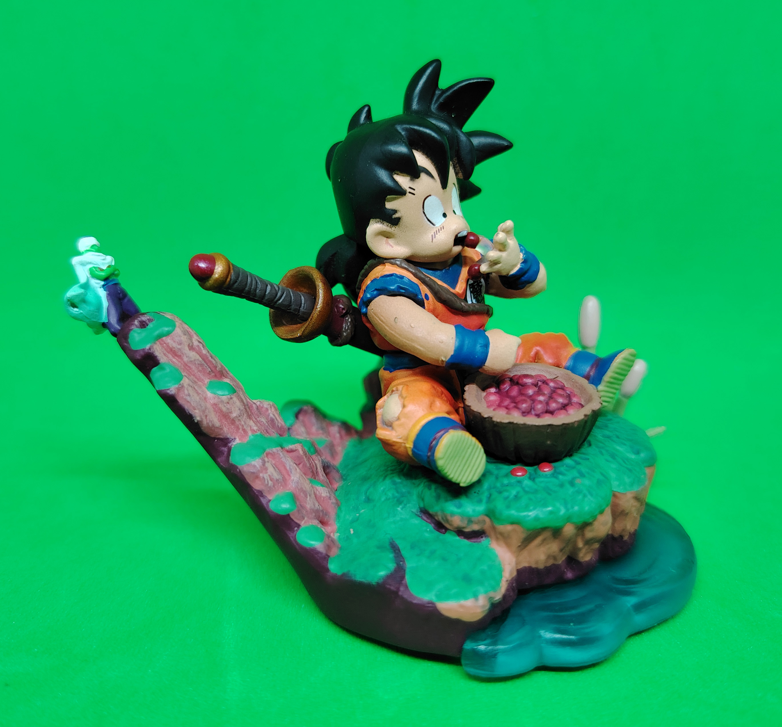 Figurine Capsule MegaHouse Dragon Ball Z sortie en 2013 représentant un Diorama avec Gohan et Piccolo en tout petit, plus 1 Dragon Ball en plastique en guise de boite et dépliant de la gamme. À noter un petit défaut d'usine au coin du nez de Gohan.