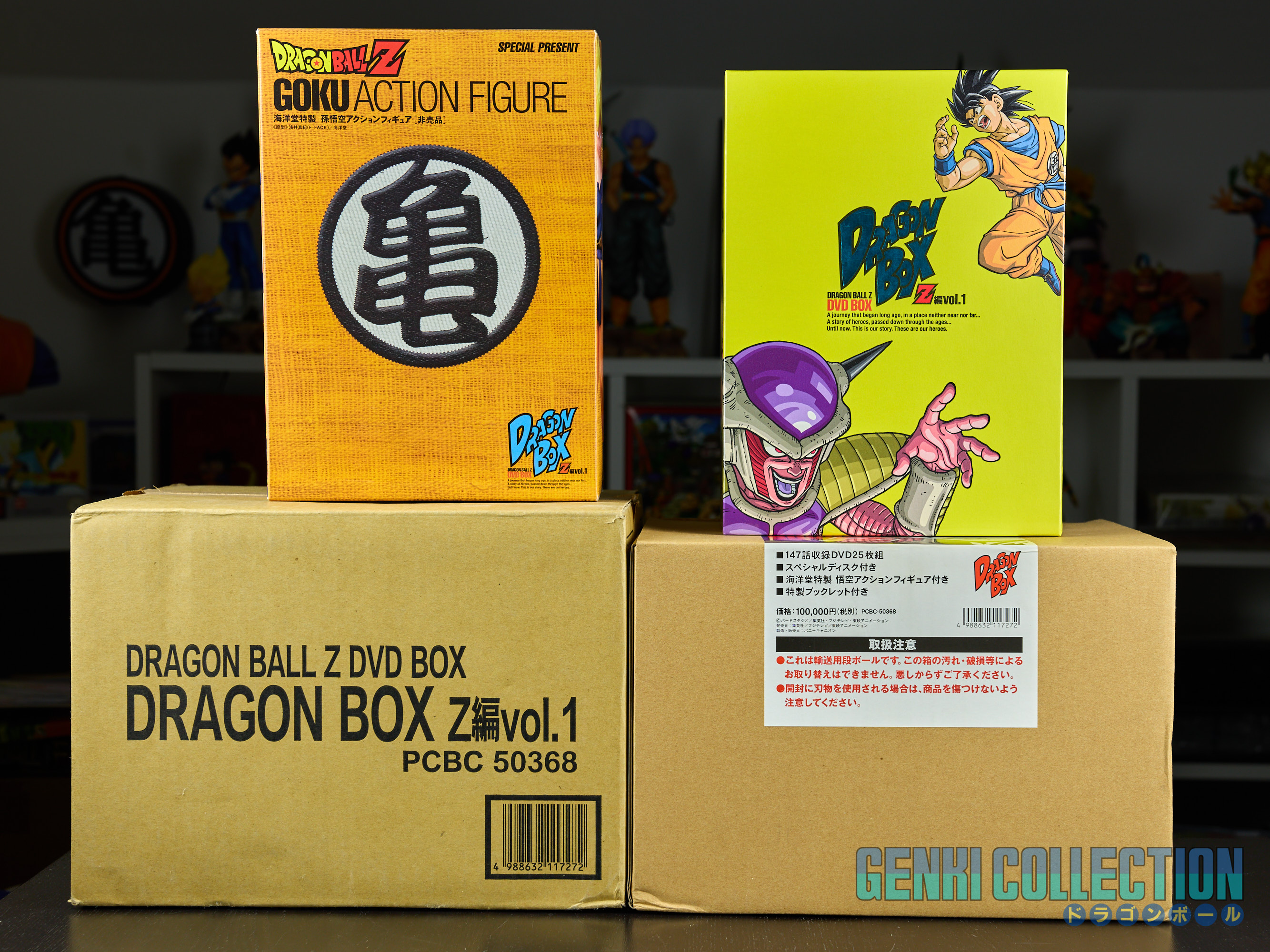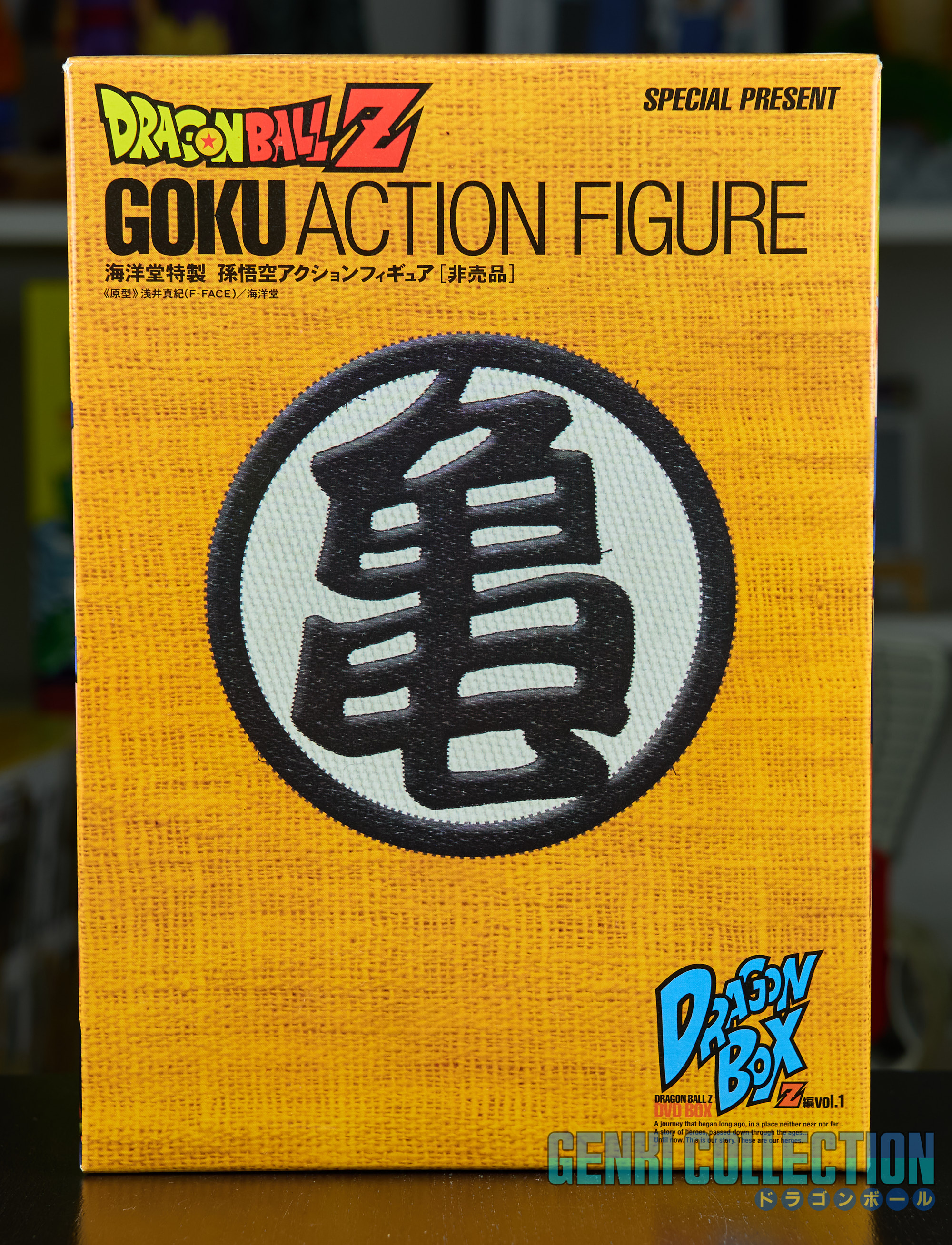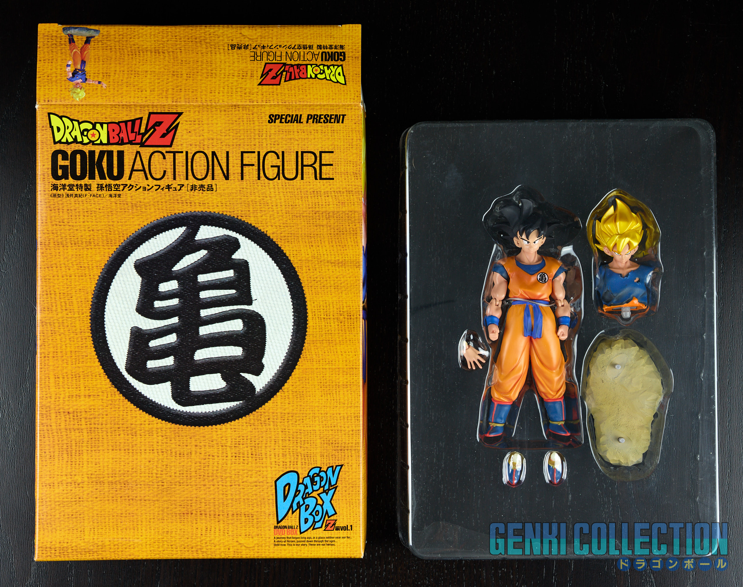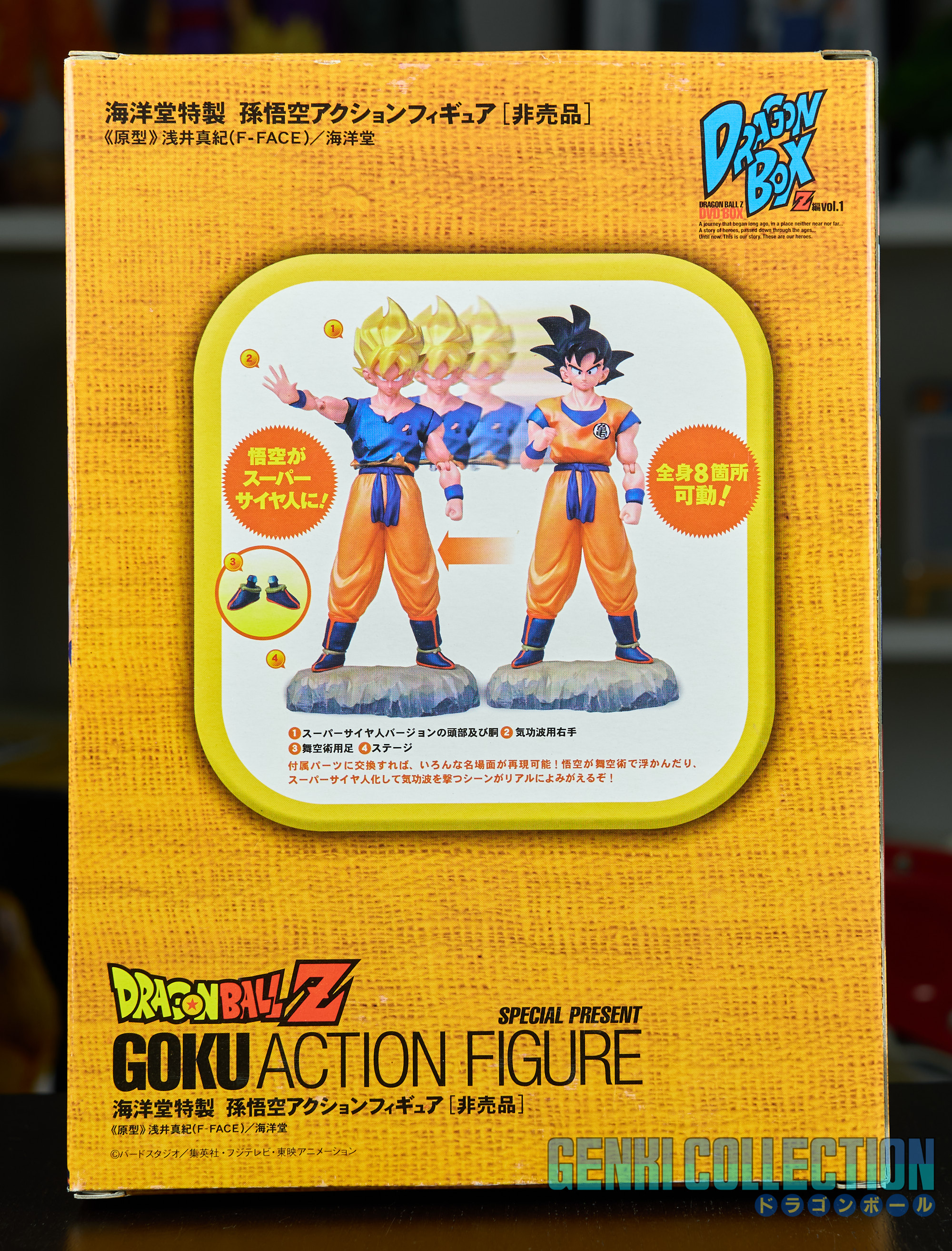 Le coffret est accompagné d'une figurine exclusive de Son Gokû, designée par Kaiyodo et non disponible à la vente en circuit classique. Celle-ci possède 2 corps et 2 têtes interchangeables, ainsi qu'une main supplémentaire.