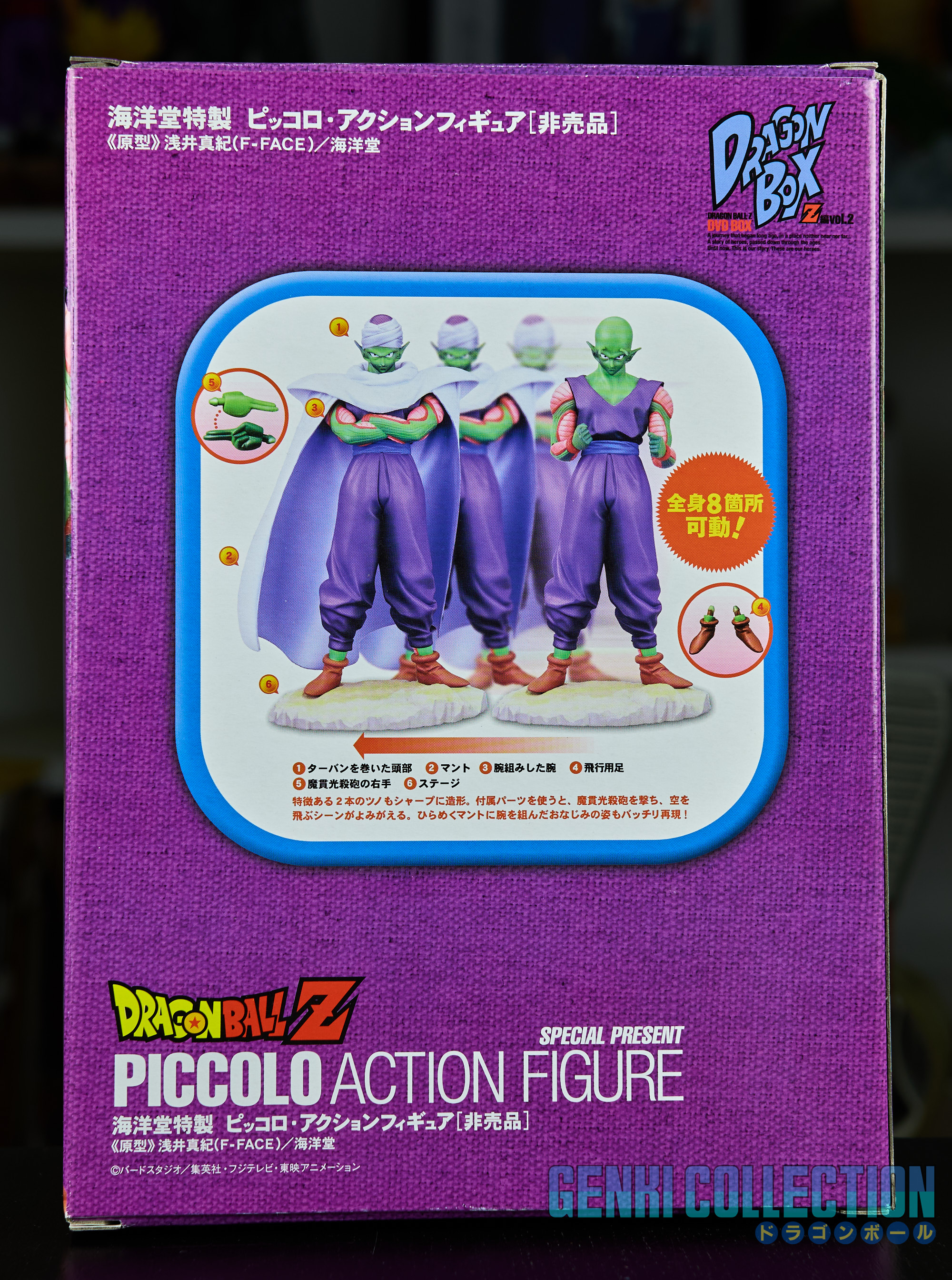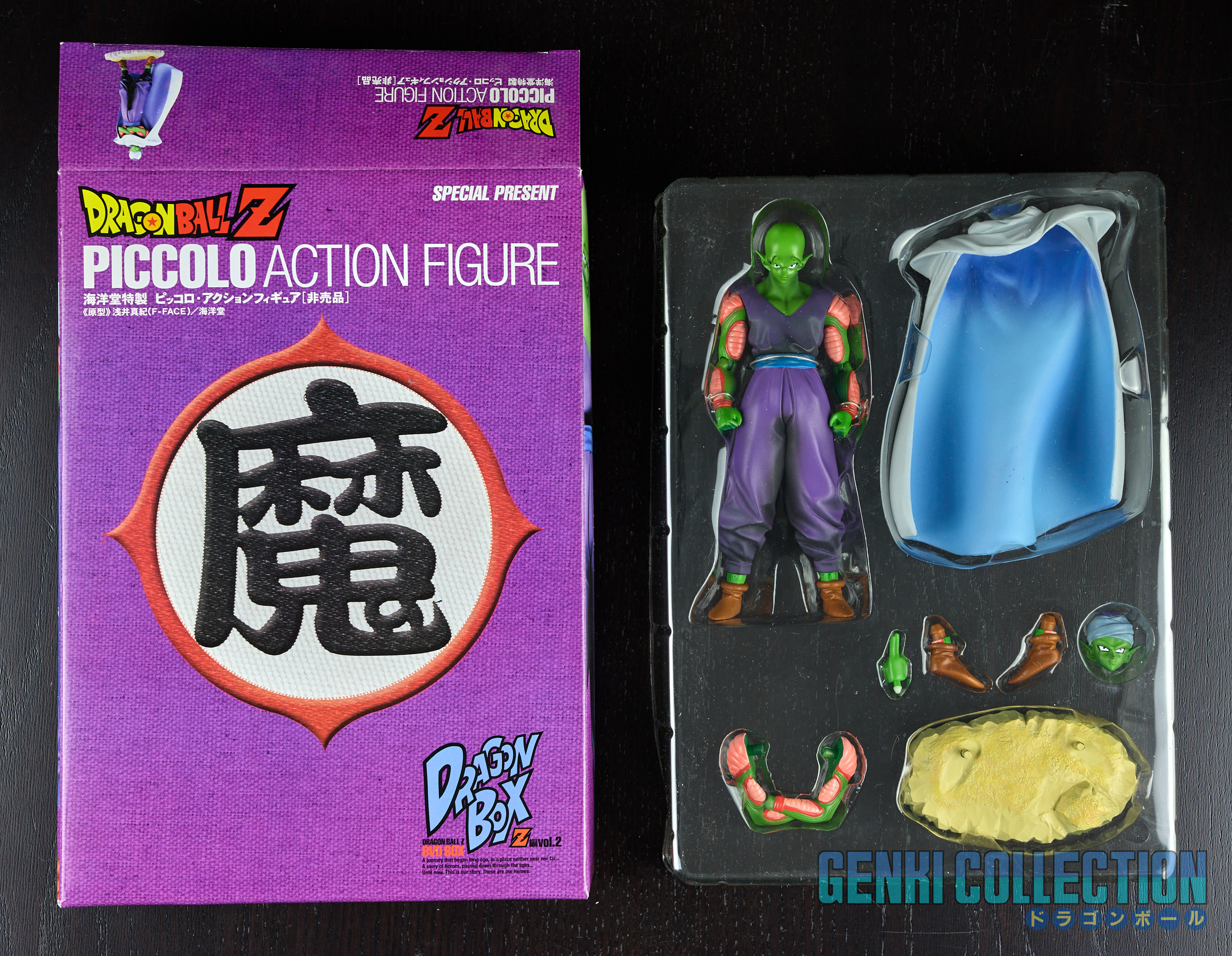 Le coffret est accompagné d'une figurine exclusive de Piccolo, designée par Kaiyodo et non disponible à la vente en circuit classique. Celle-ci possède 2 têtes interchangeables, une cape amovible, ainsi que des bras et une main supplémentaire.
