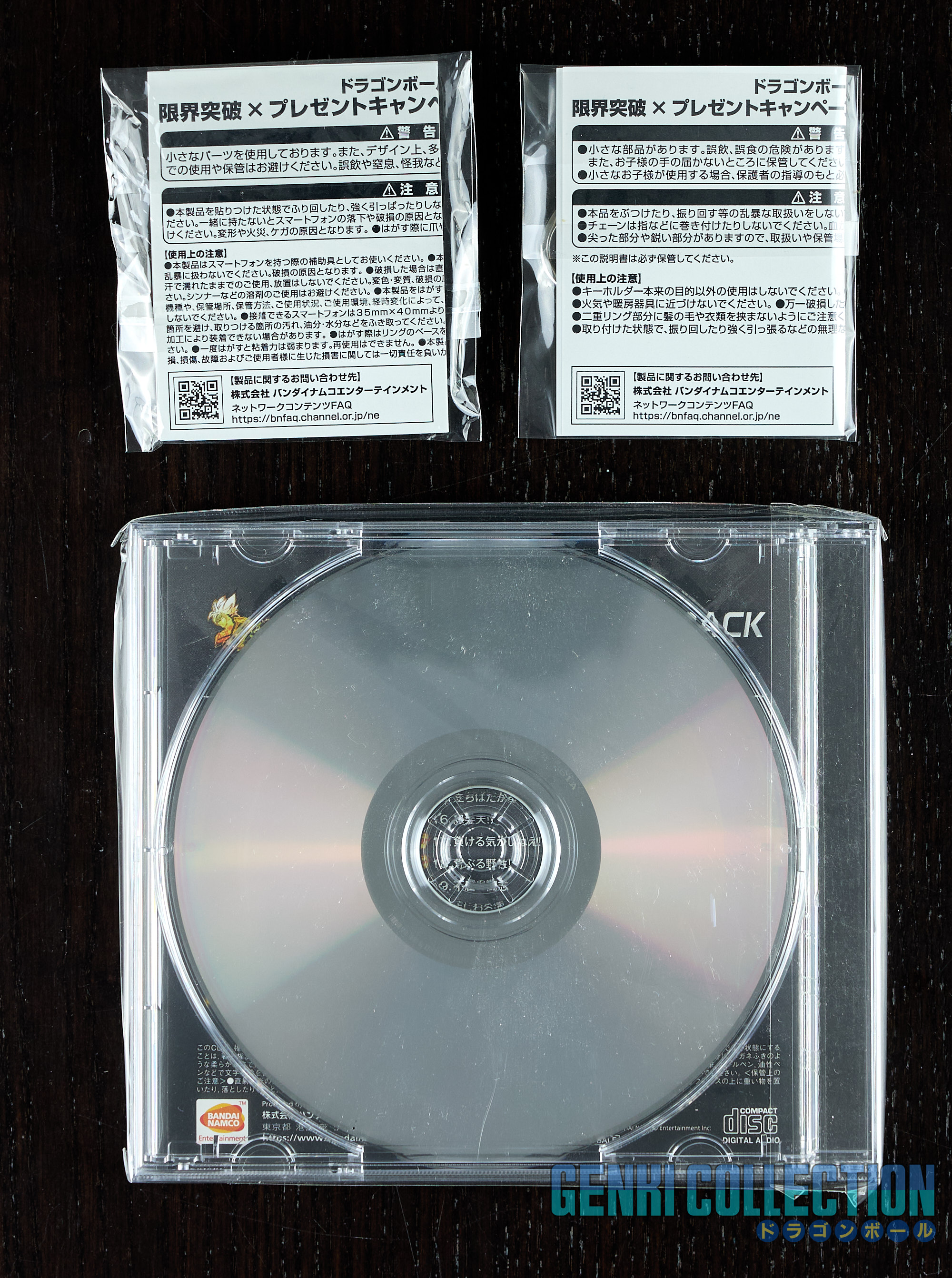 Bande originale du jeu Dragon Ball Legends, édition exclusive "not for sale" destinée à une campagne Twitter. Le disque est en excellent état, protégé sous sleeve, avec la lettre de confirmation de la sélection pour remporter le set + 2 ports clés exclusifs.