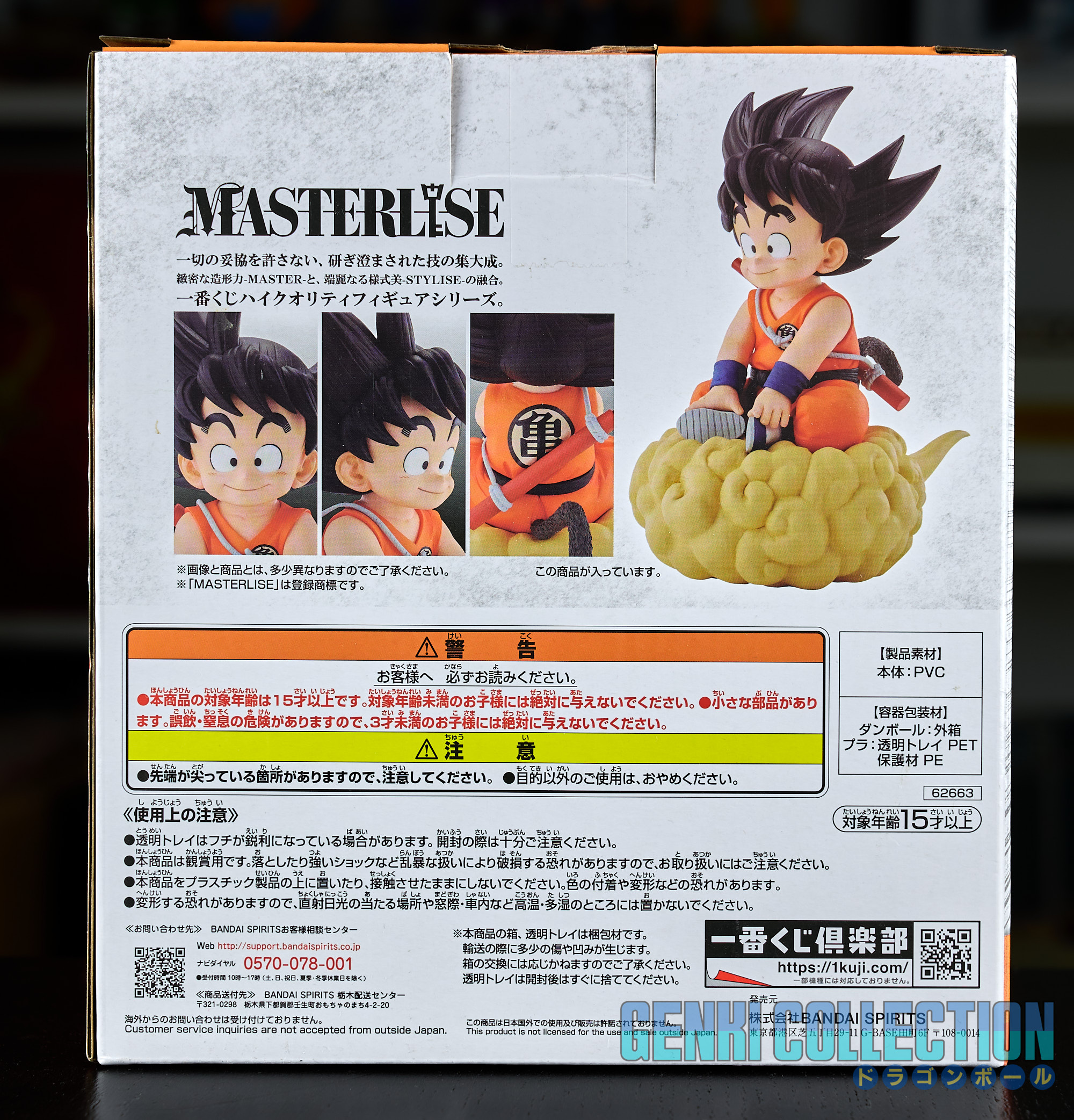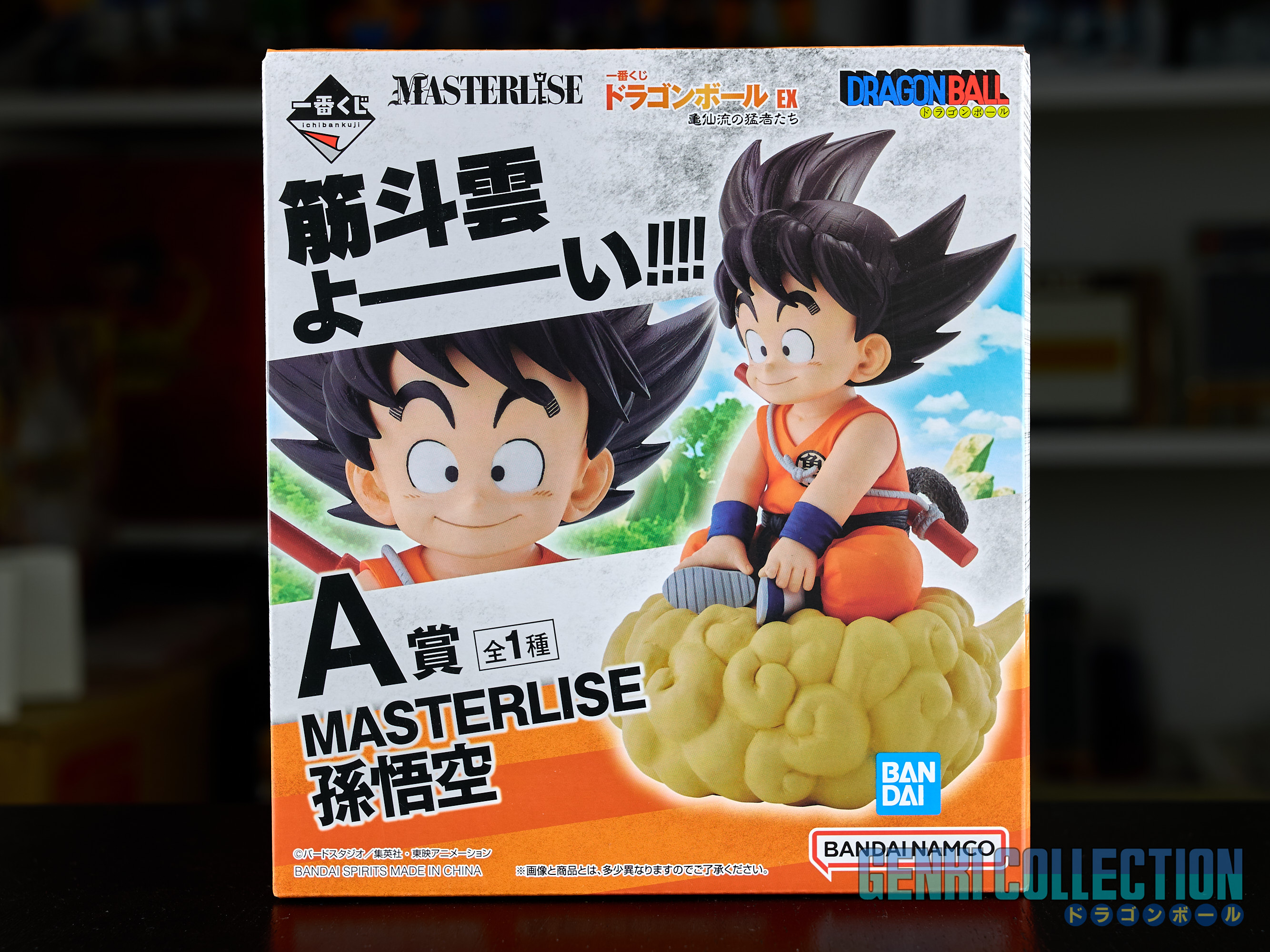 Figurine en boîte de la série Ichiban Kuji Dragon Ball EX "Masters of Kame Sennin ryū" de Son Gokû enfant sur Kinto-un, lot A sorti en 2023 et en très bon état.