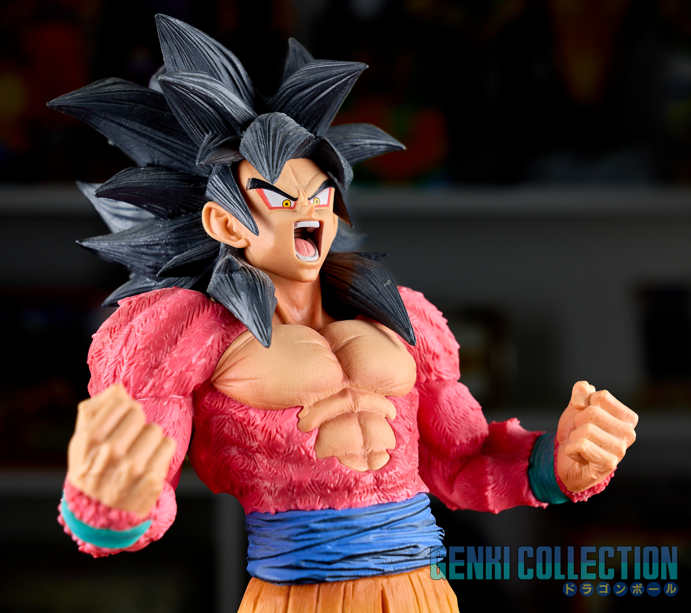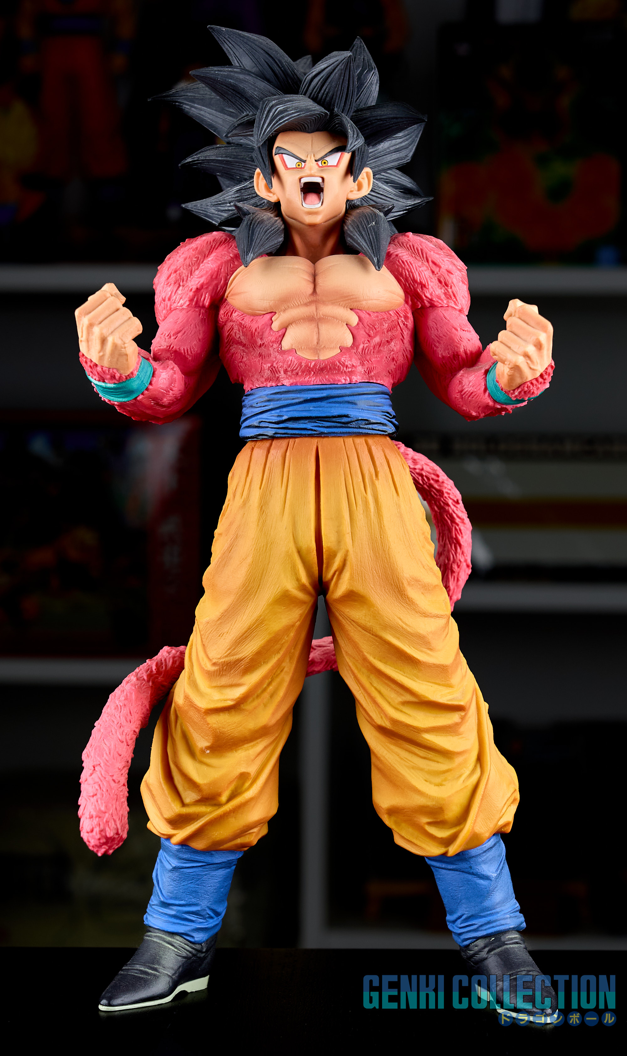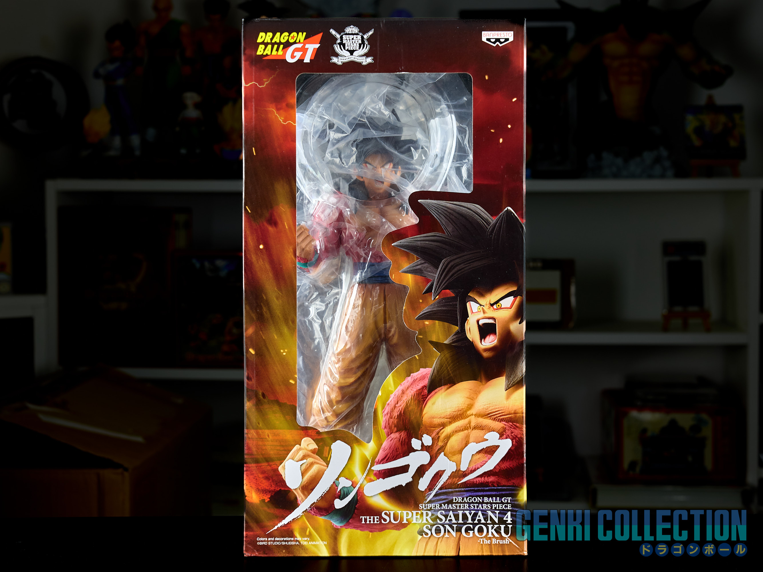 Magnifique et imposante figurine en boîte Super Master Stars Piece de Son Goku en Super Saiyan 4 (The Brush) sortie en 2020. Boîte très légèrement abîmée et figurine en très bon état.
