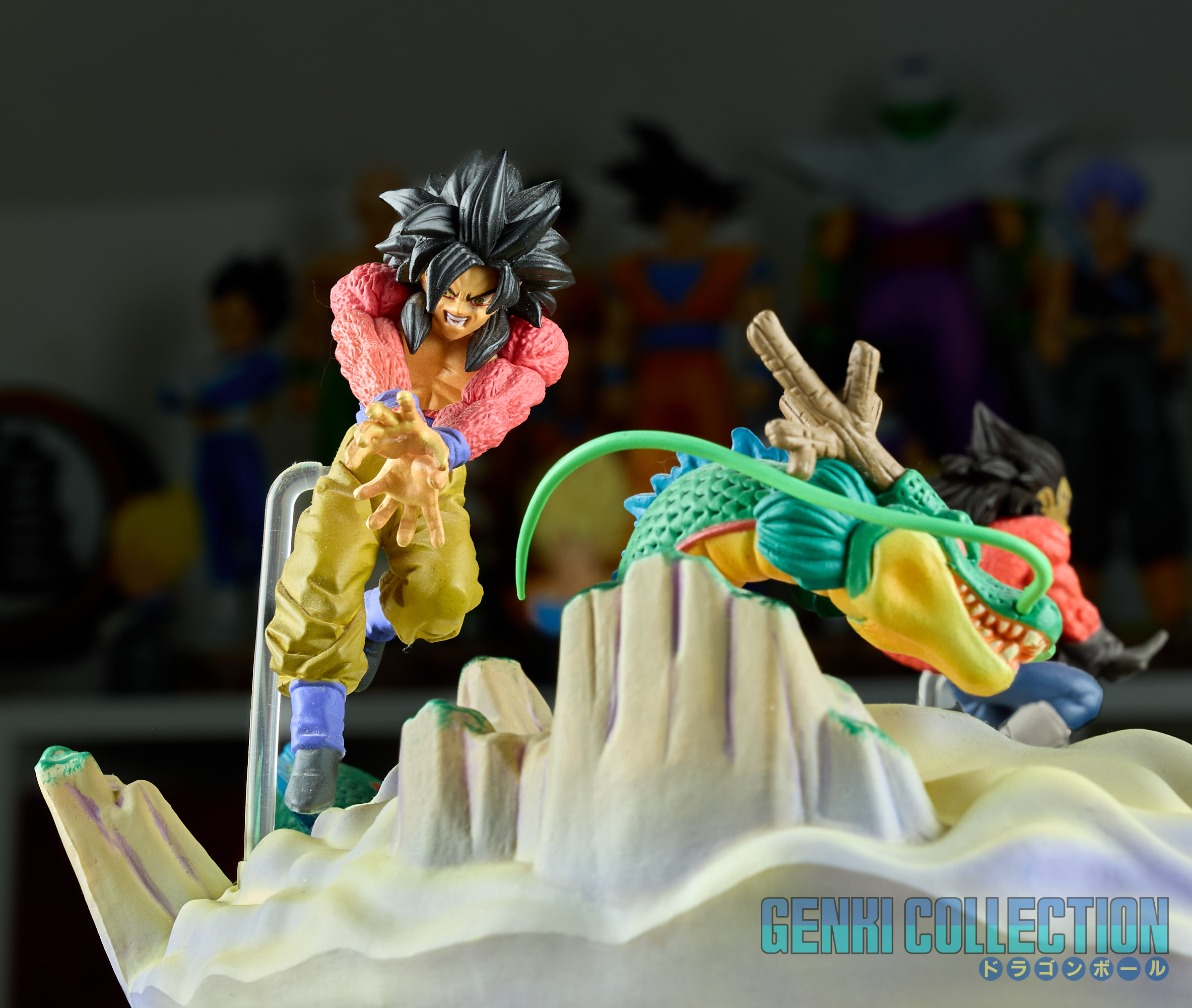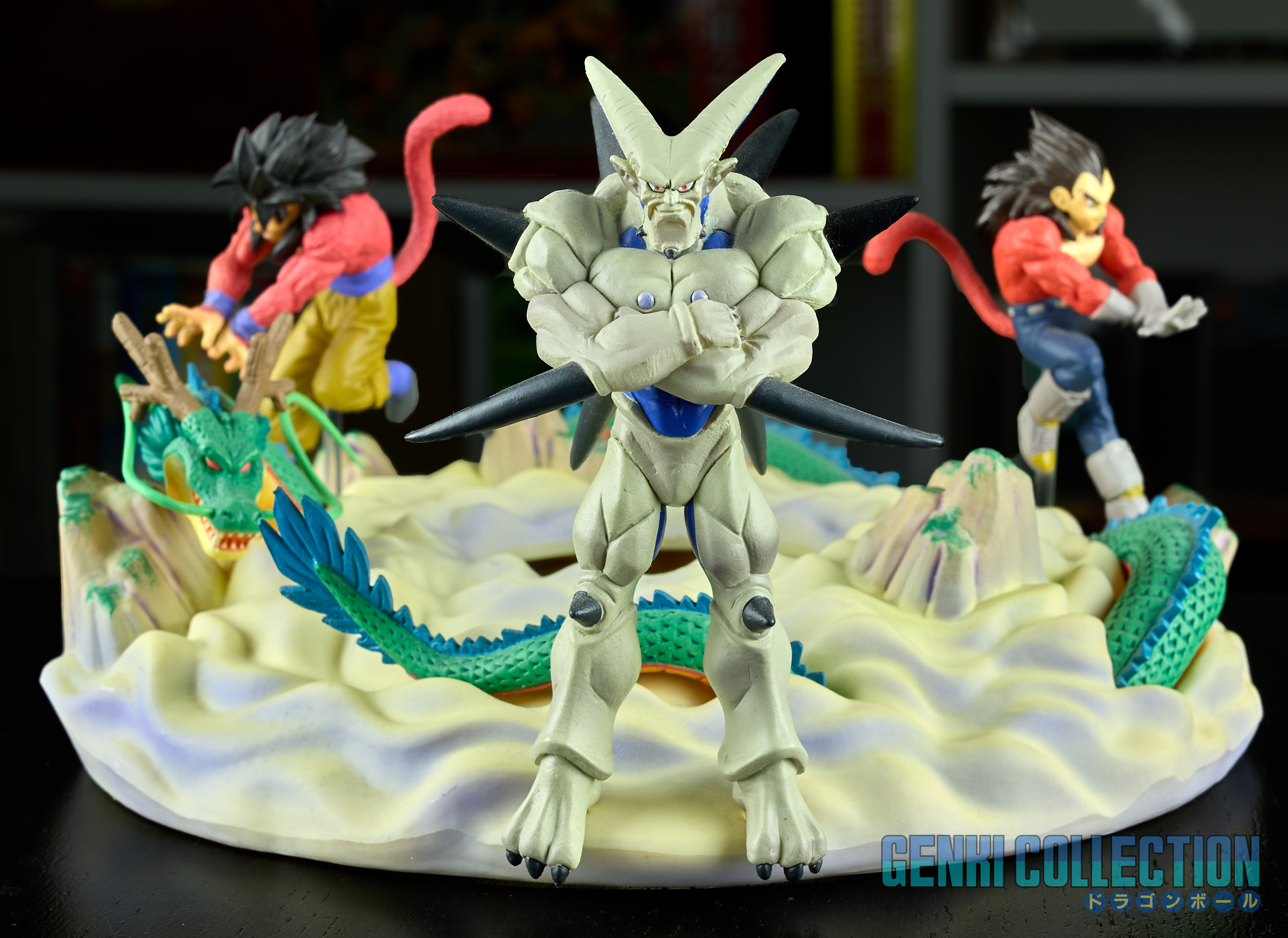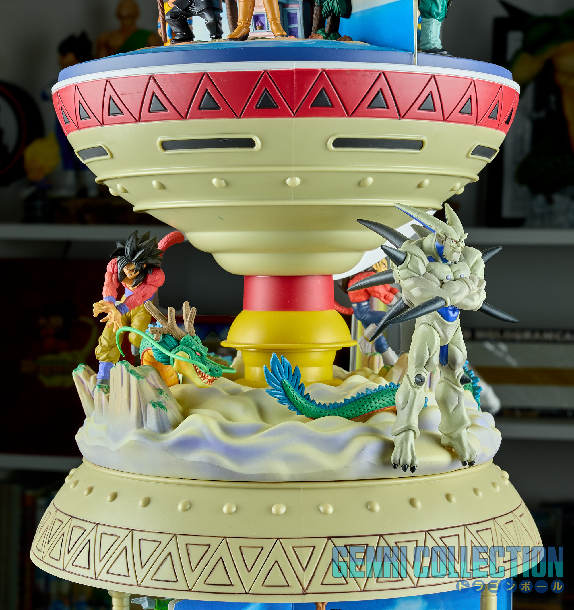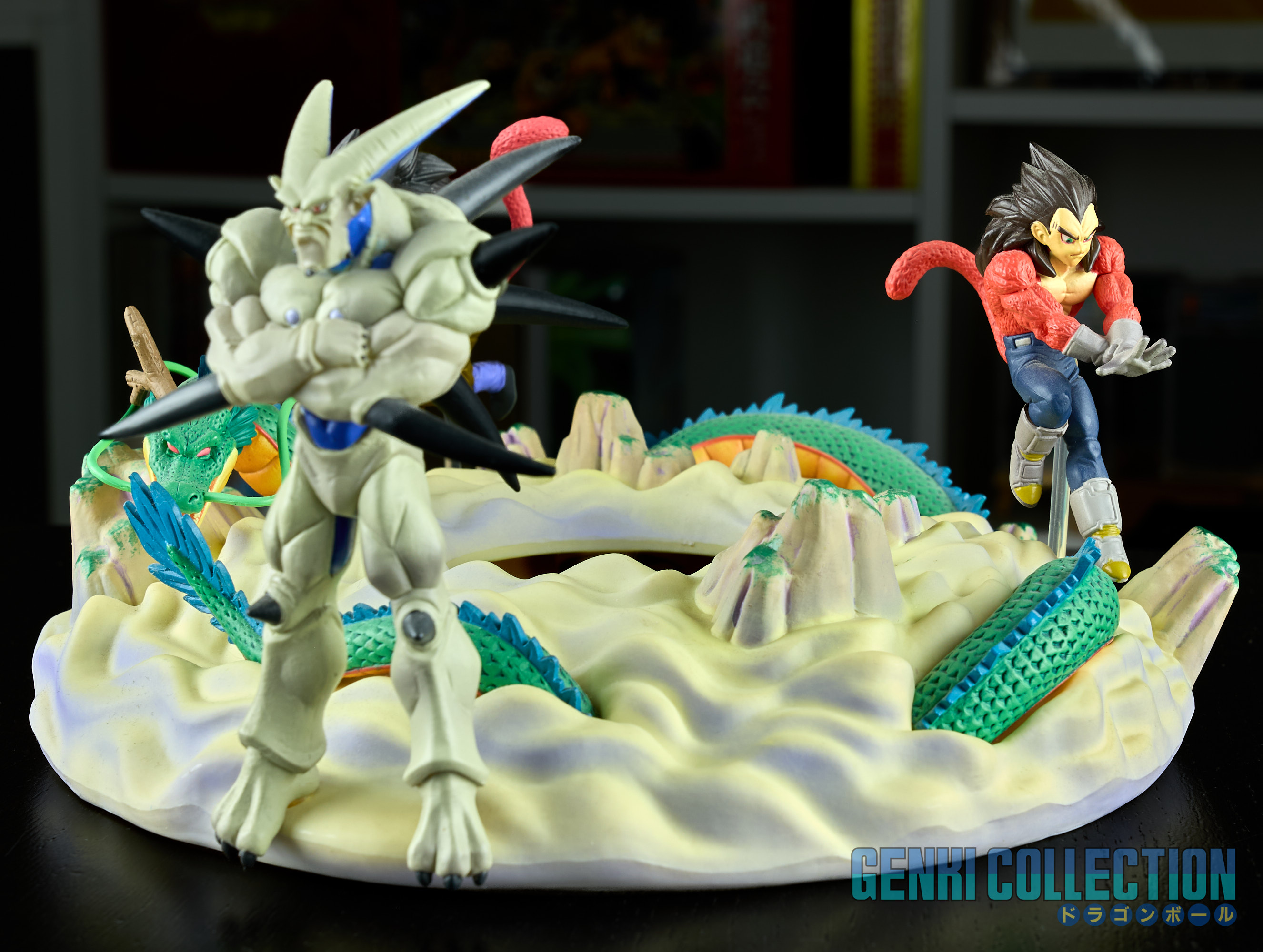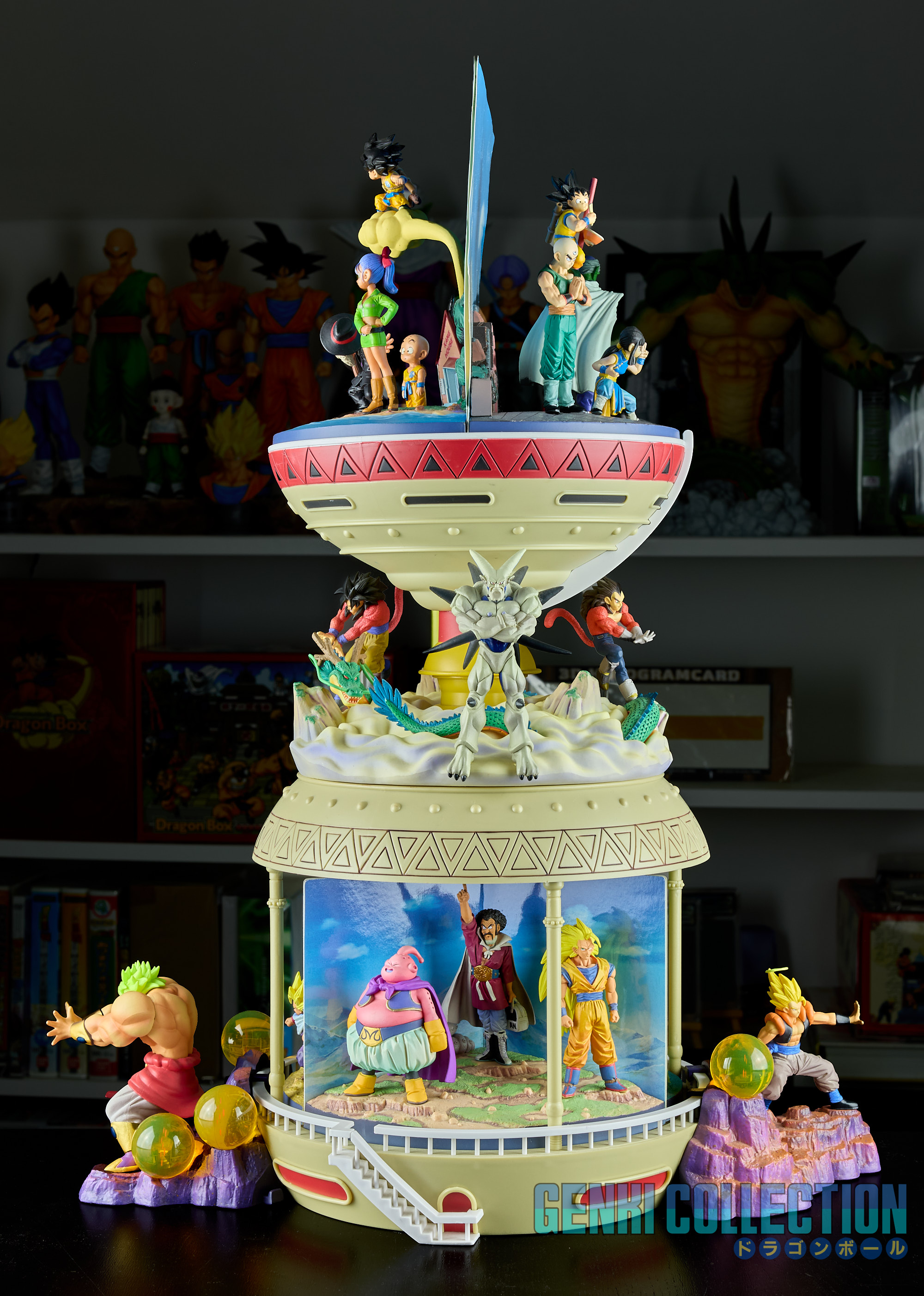 - Diorama Dragon Ball GT (Gokû Super Saiyan 4, Vegeta Super Saiyan 4 et Î Shinron ou Omega Shenron), celui-ci peut s'insérer entre la Tour Karin et le palais de Kami-sama.