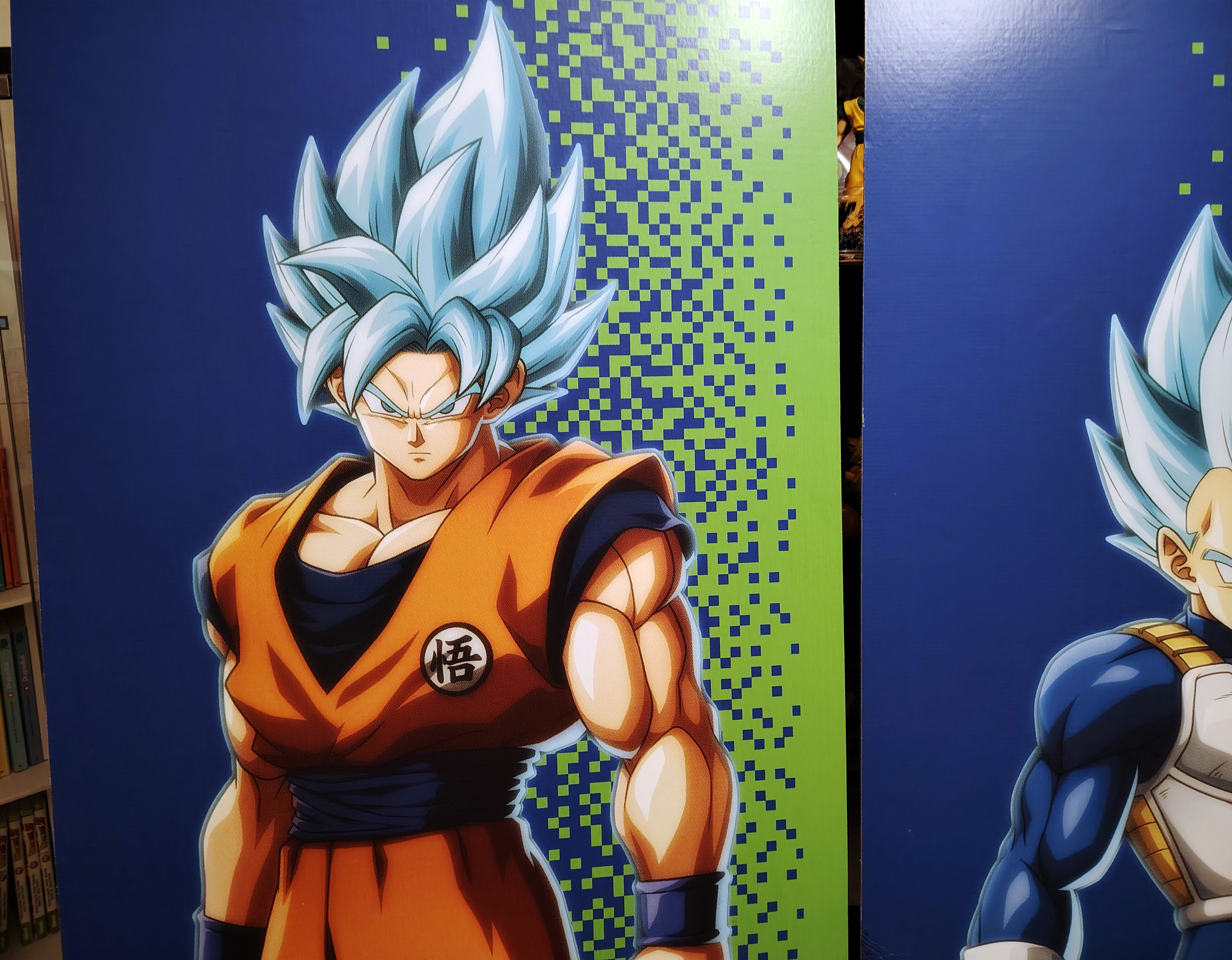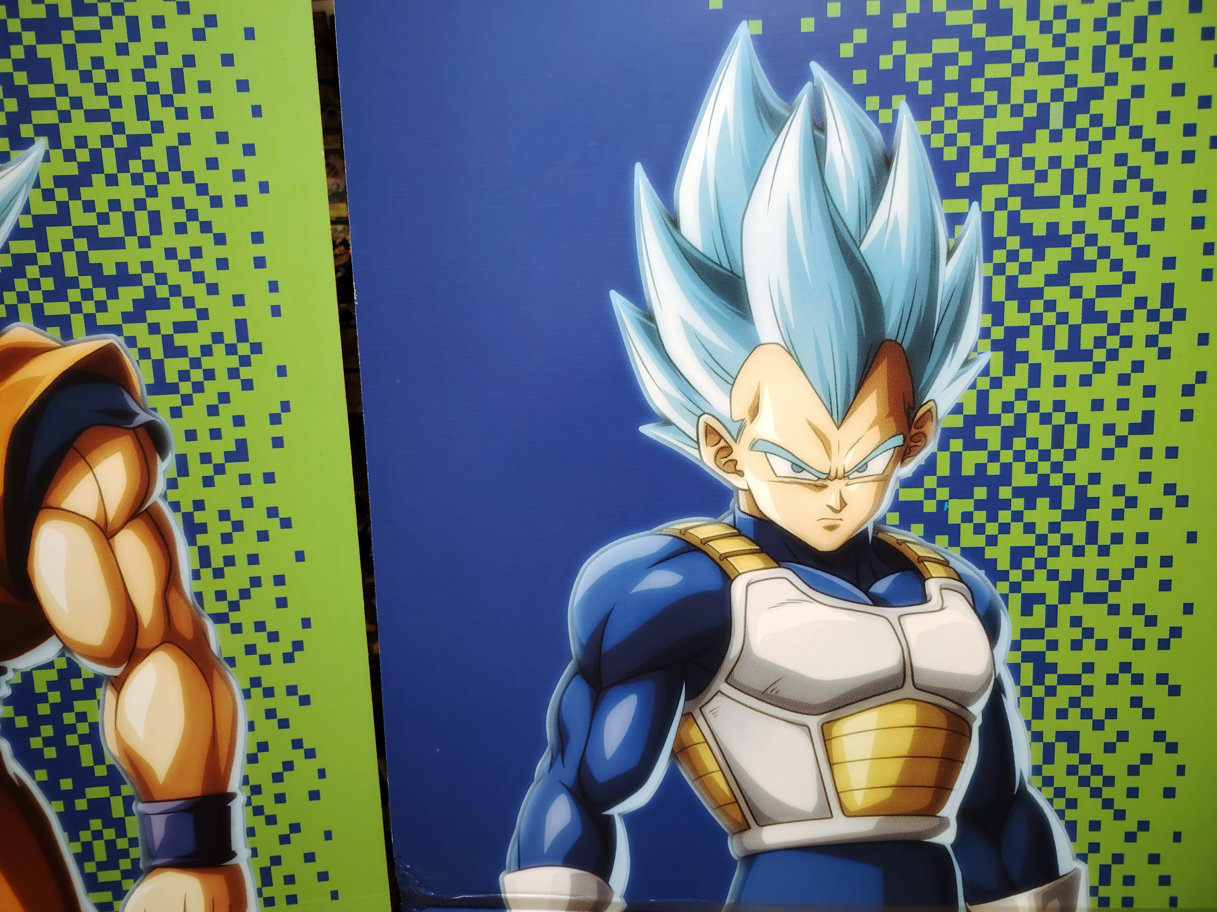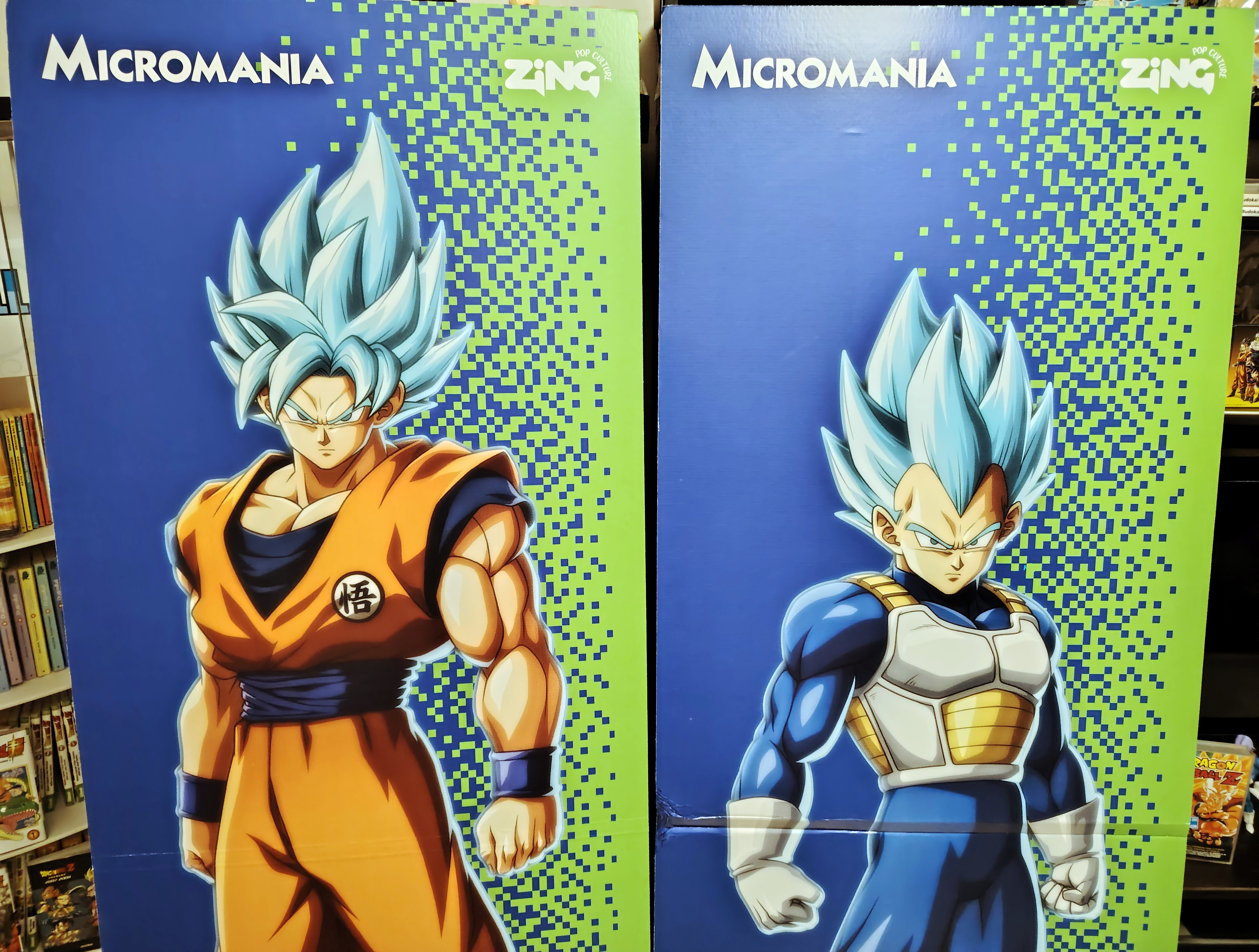 Lot de 2 standings (PLV) promotionnels Dragon Ball FighterZ utilisés en magasin Micromania à l'occasion de la sortie du jeu en 2018. Les PLV représentent Goku Super Saiyan Blue & Vegeta Super Saiyan et mesurent 170 cm de Haut sur 60 cm de large. Quelques défauts à signaler notamment sur la PLV de Vegeta. Voir photos.