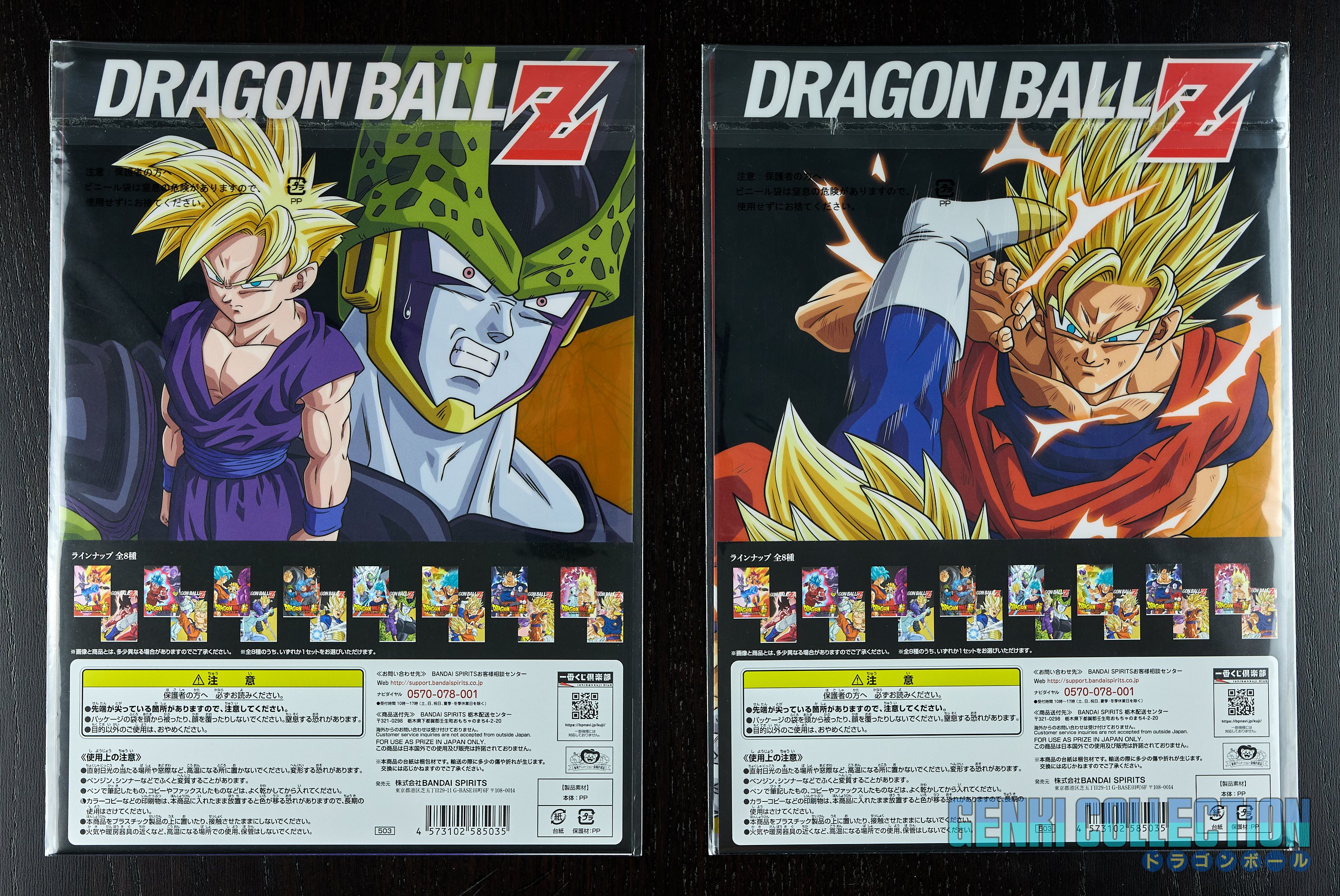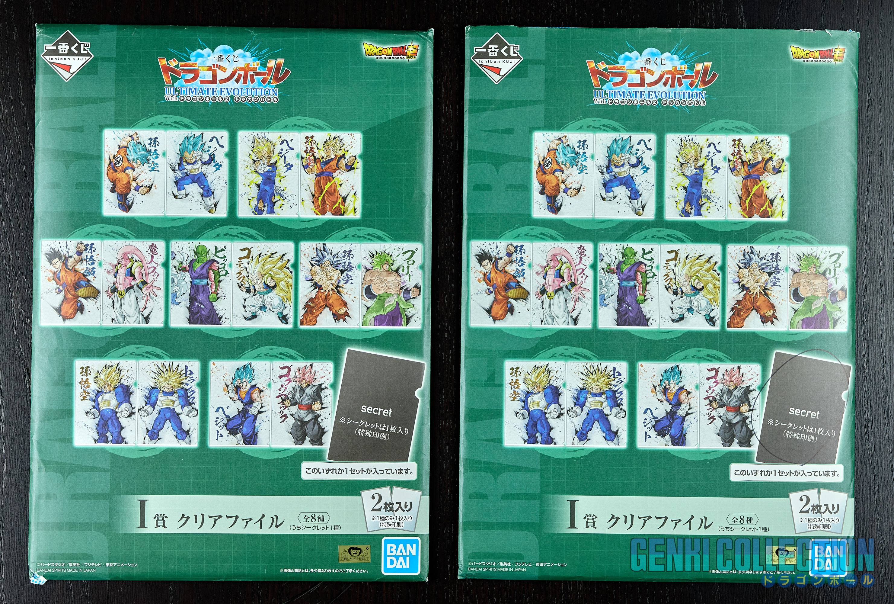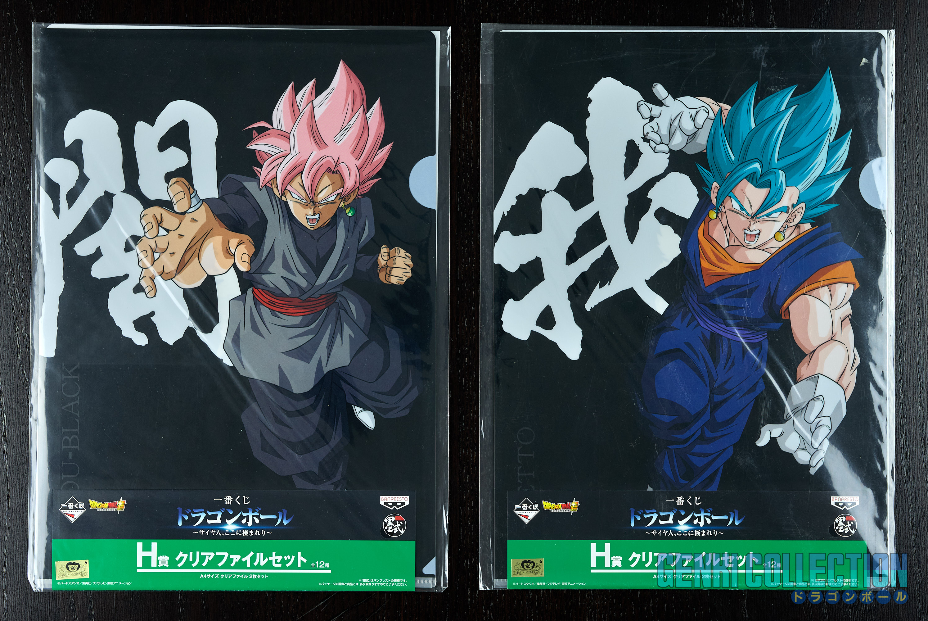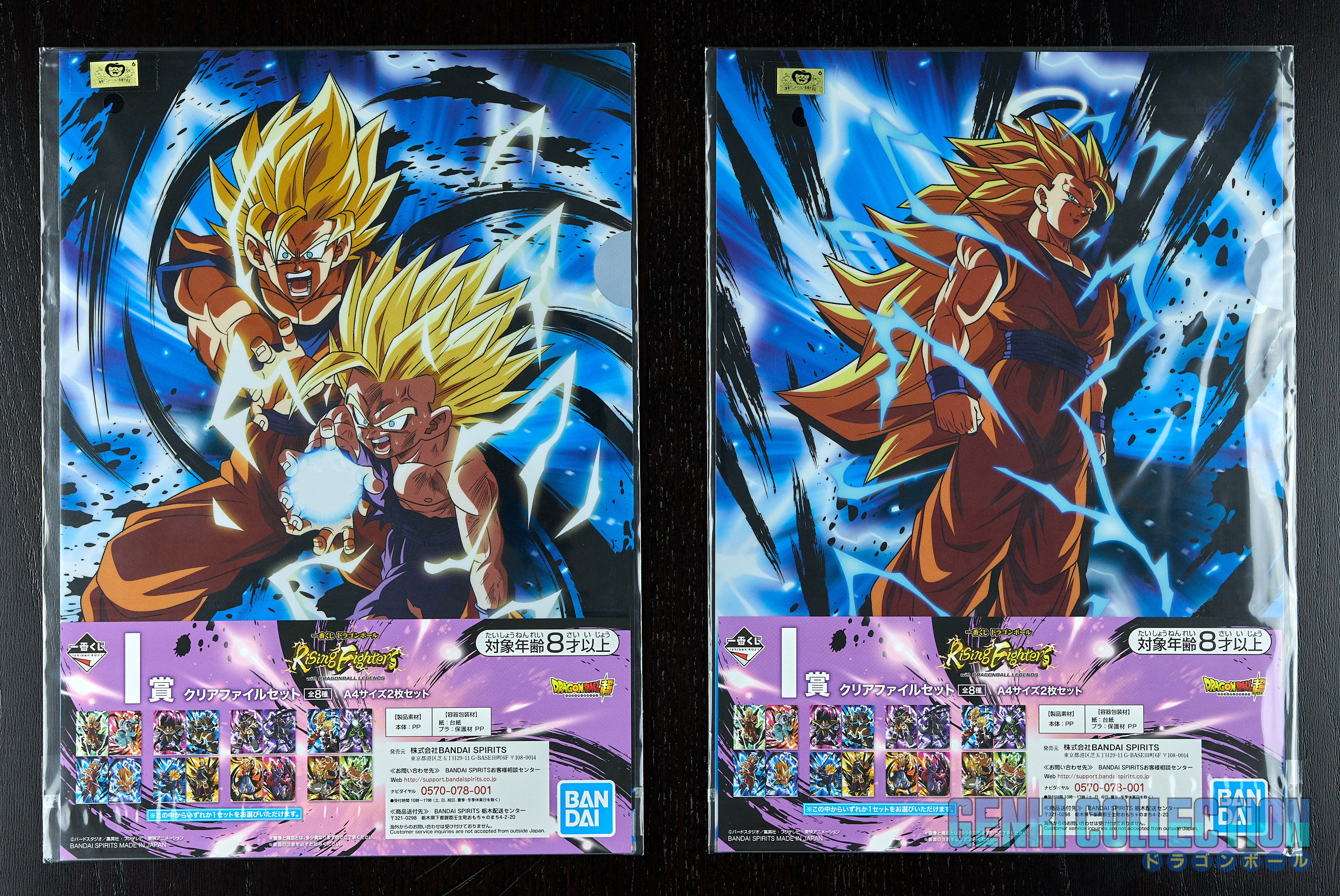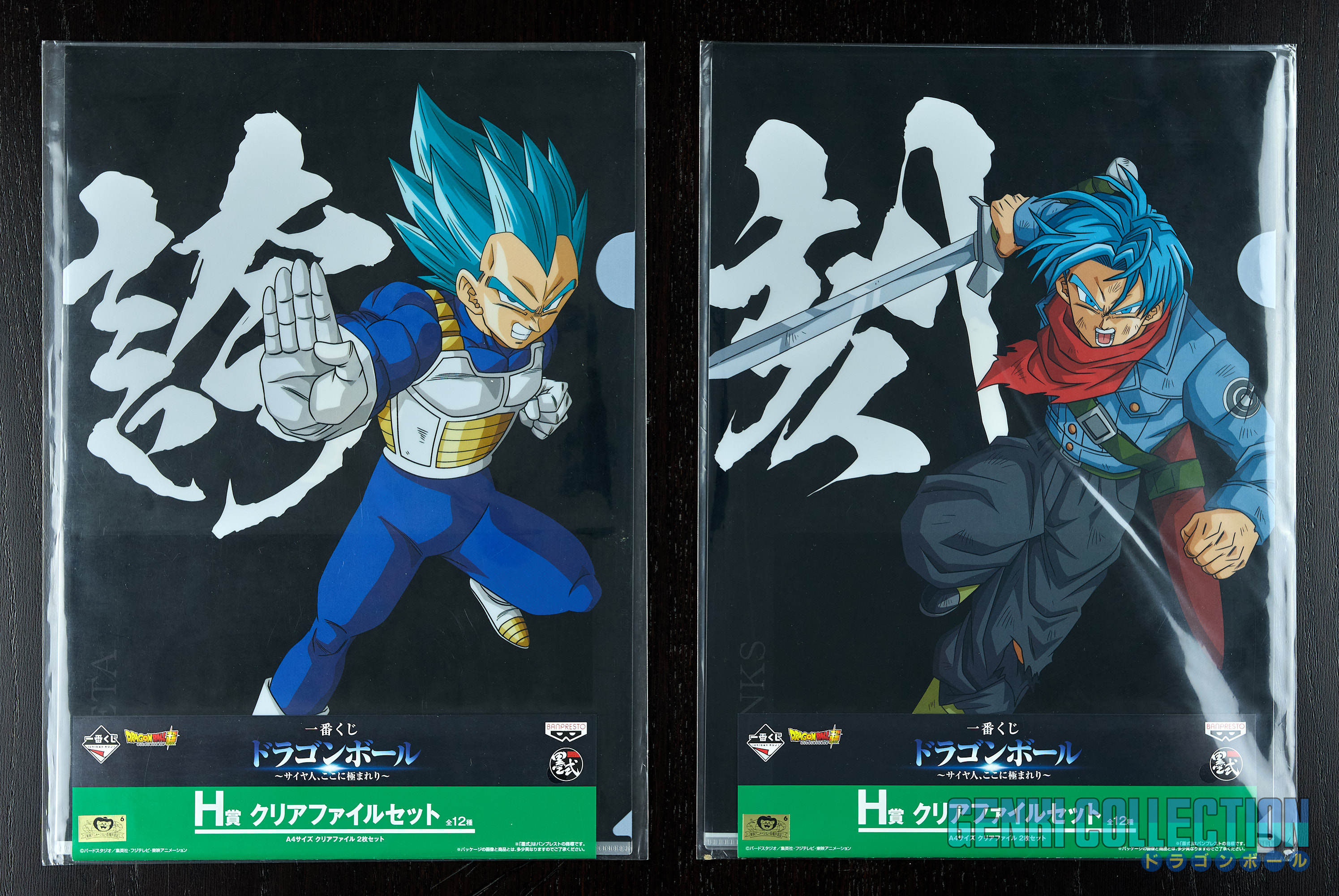 Ensemble de 346 clear files (chemises plastifiées au format A4 ou A5 pour certaines) Dragon Ball composés de 325 clears file répartis sur 20 full sets loteries Ichiban Kuji (2011 à 2024) et 21 clear files indépendants (à l'unité ou "Not for sale"), tous en excellent état dans leurs blisters d'origines (exceptés pour 2 ou 3 d'entre eux). Voici le détail des sets :