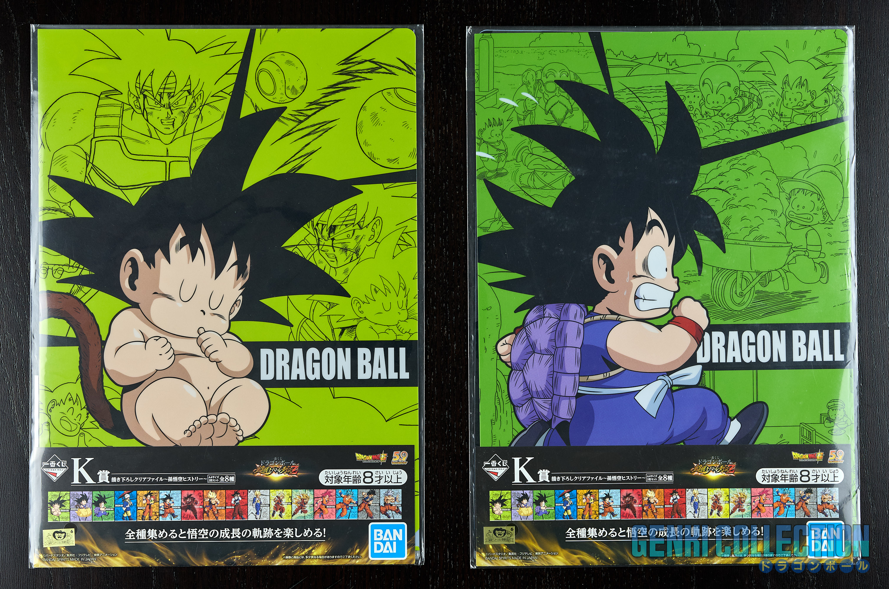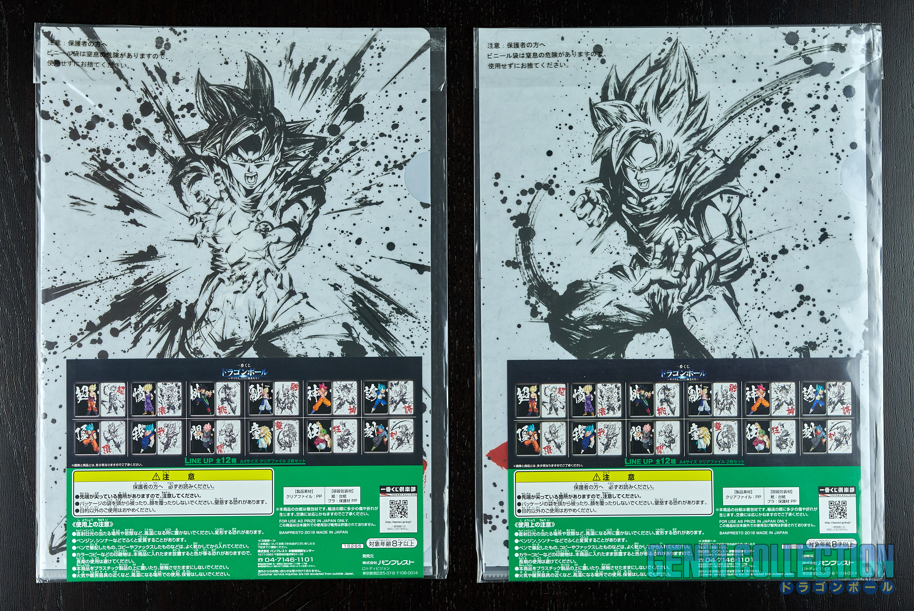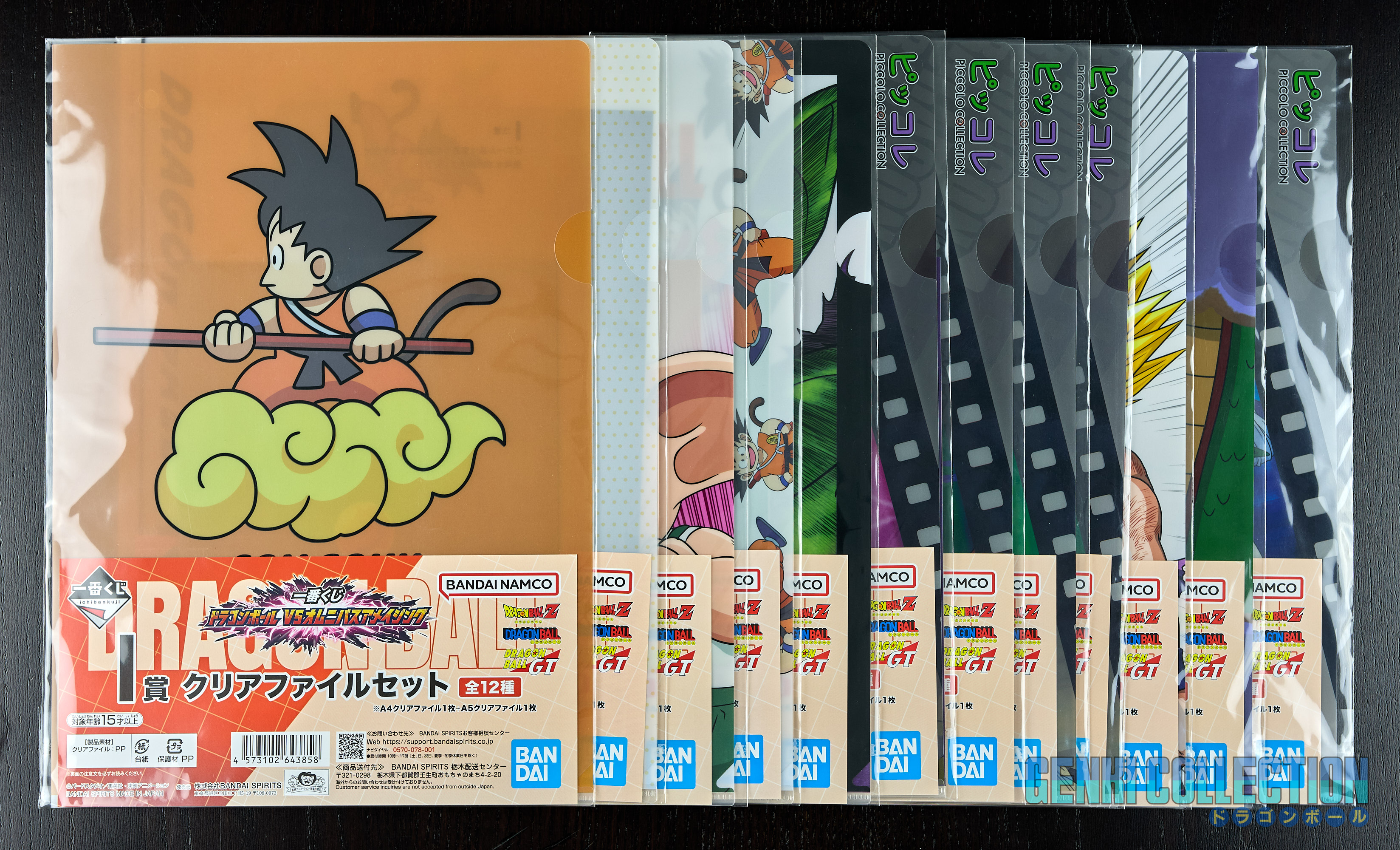 Set of 346 Dragon Ball clear files (plastic folders in A4 or A5 format for some), consisting of 325 clear files distributed across 20 Ichiban Kuji lottery full sets (2011 to 2024) and 21 independent clear files (individual or "Not for Sale"), all in excellent condition in their original blisters (except for 2 or 3 of them). Set details:
