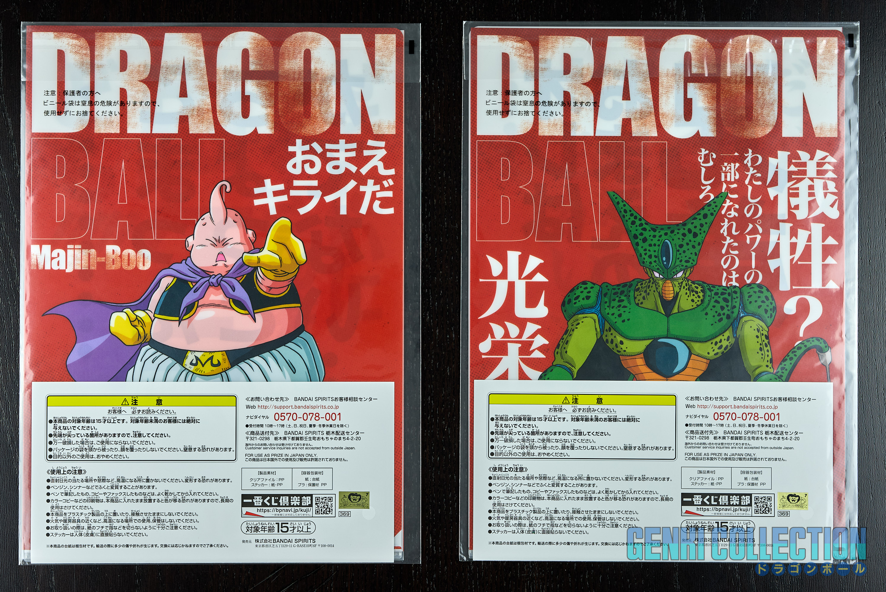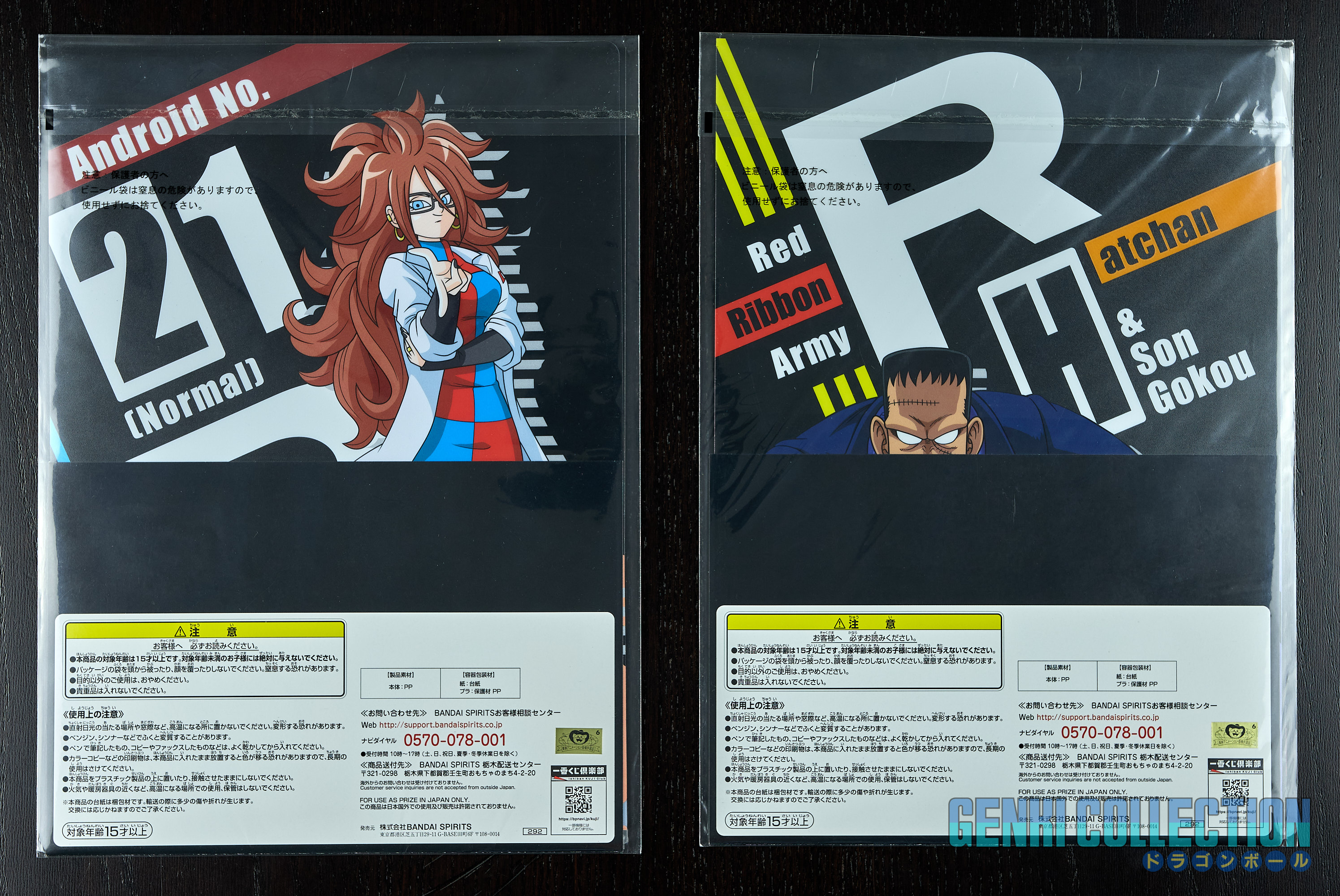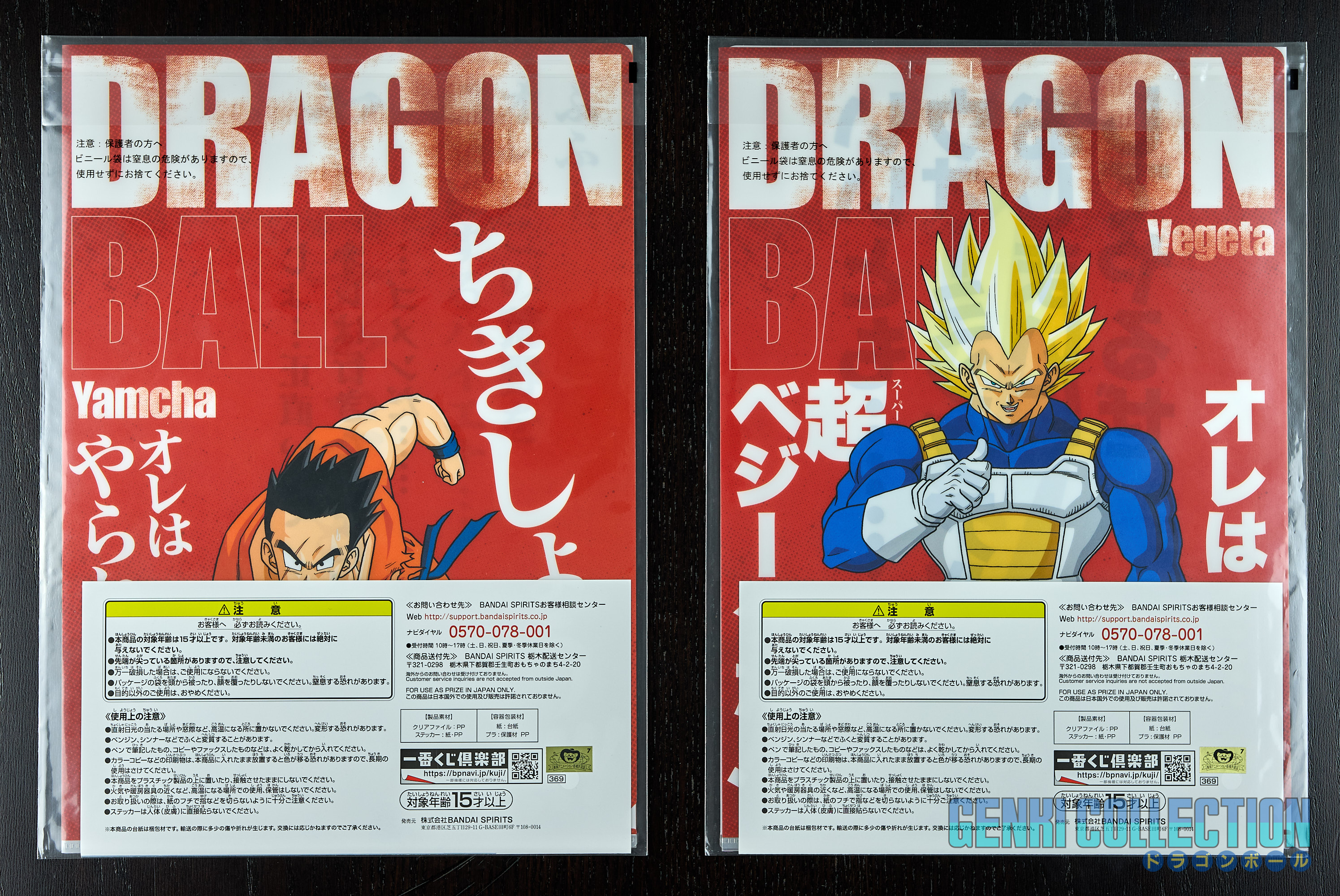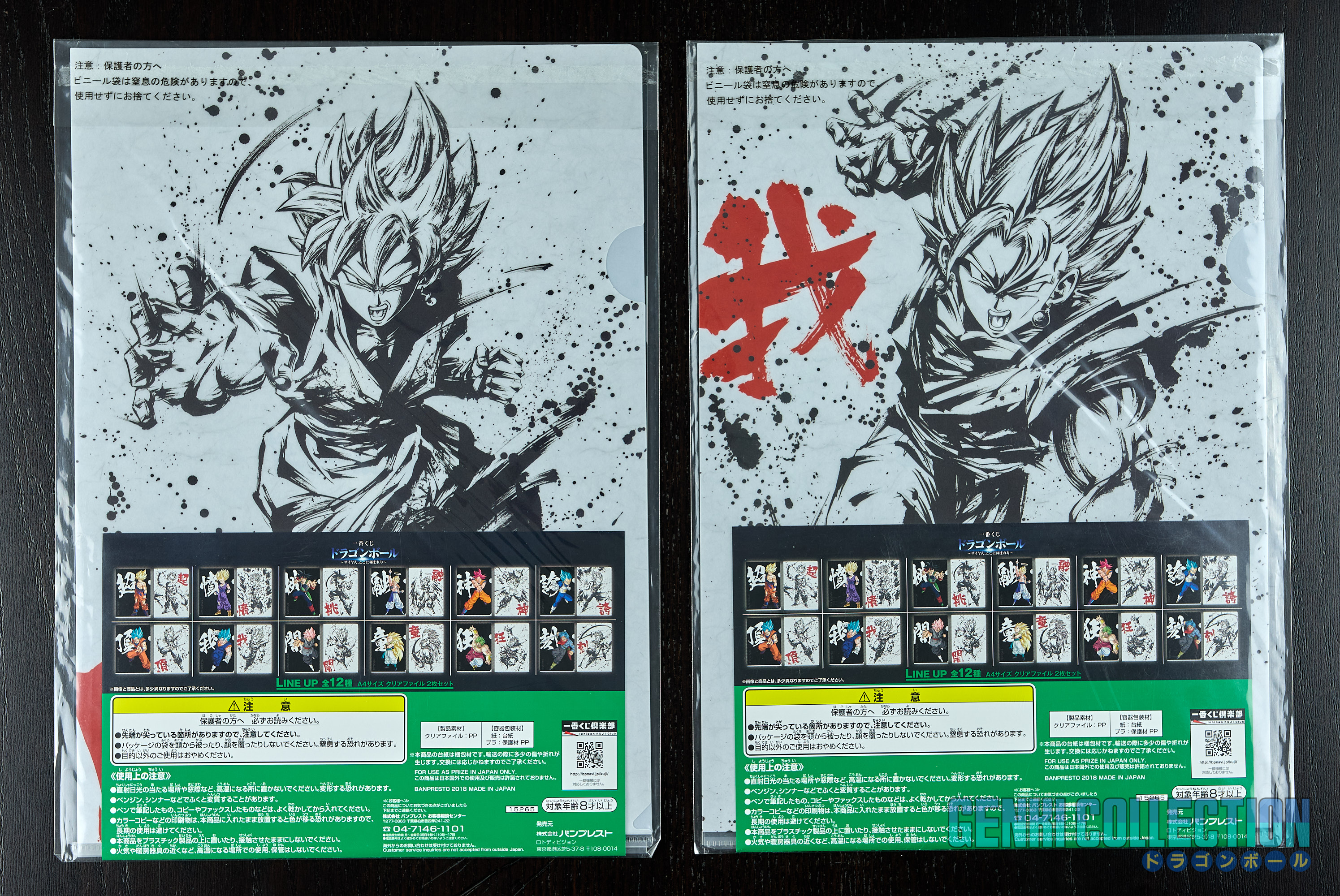 Set of 346 Dragon Ball clear files (plastic folders in A4 or A5 format for some), consisting of 325 clear files distributed across 20 Ichiban Kuji lottery full sets (2011 to 2024) and 21 independent clear files (individual or "Not for Sale"), all in excellent condition in their original blisters (except for 2 or 3 of them). Set details: