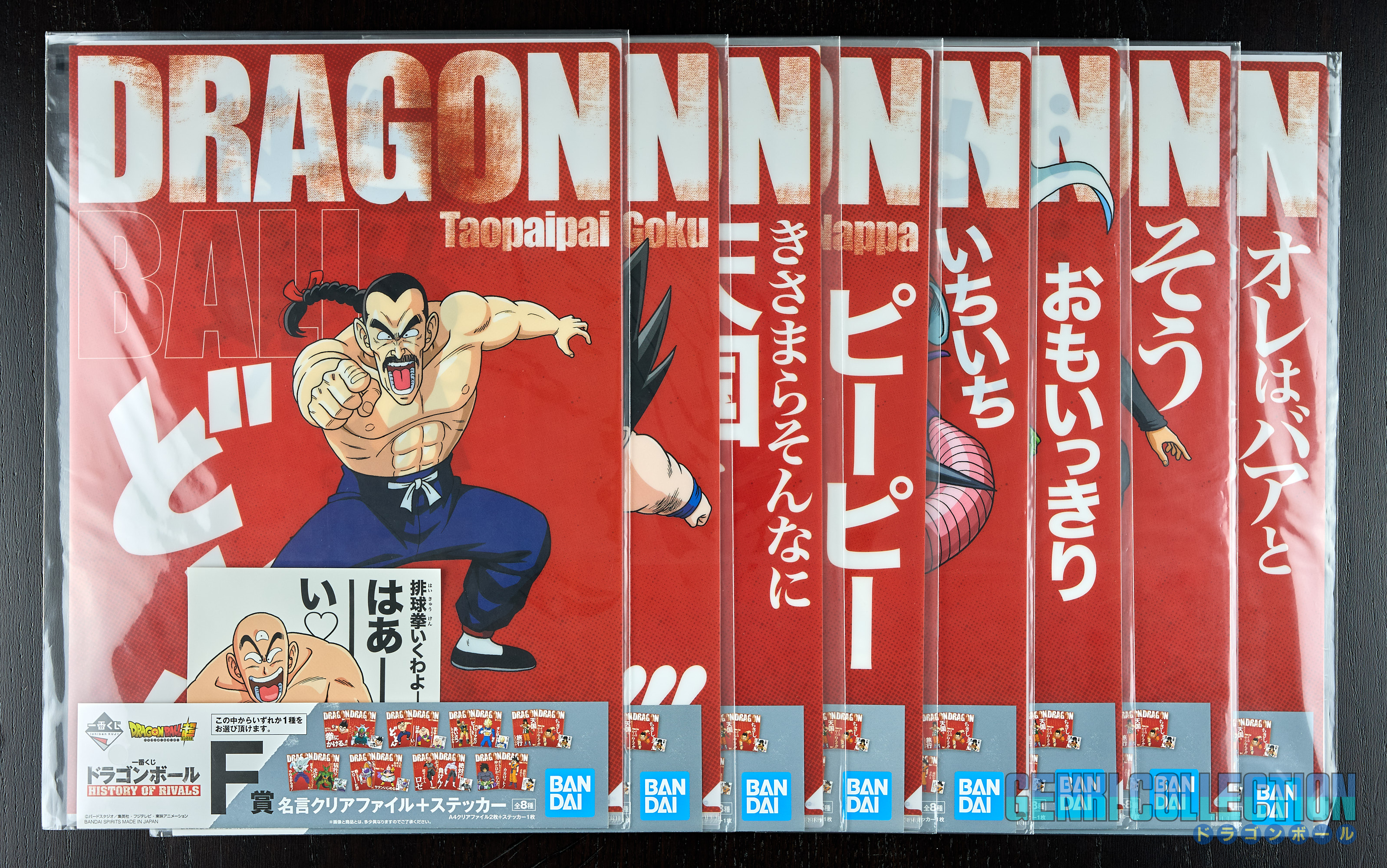 - Lot of 21 individual clear files from various origins: 50th Jump anniversary, Dragon Ball Legends, Xenoverse 2, Jump Force, FighterZ, Battle of Gods, Resurrection 'F', DBS Broly, Akira Toriyama The World of Dragon Ball, Double Pocket.