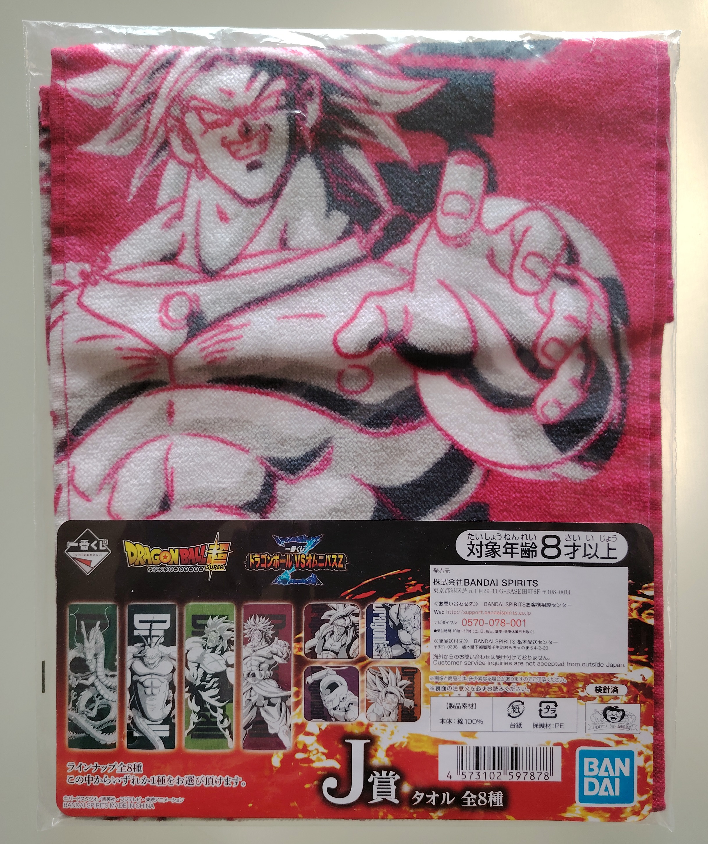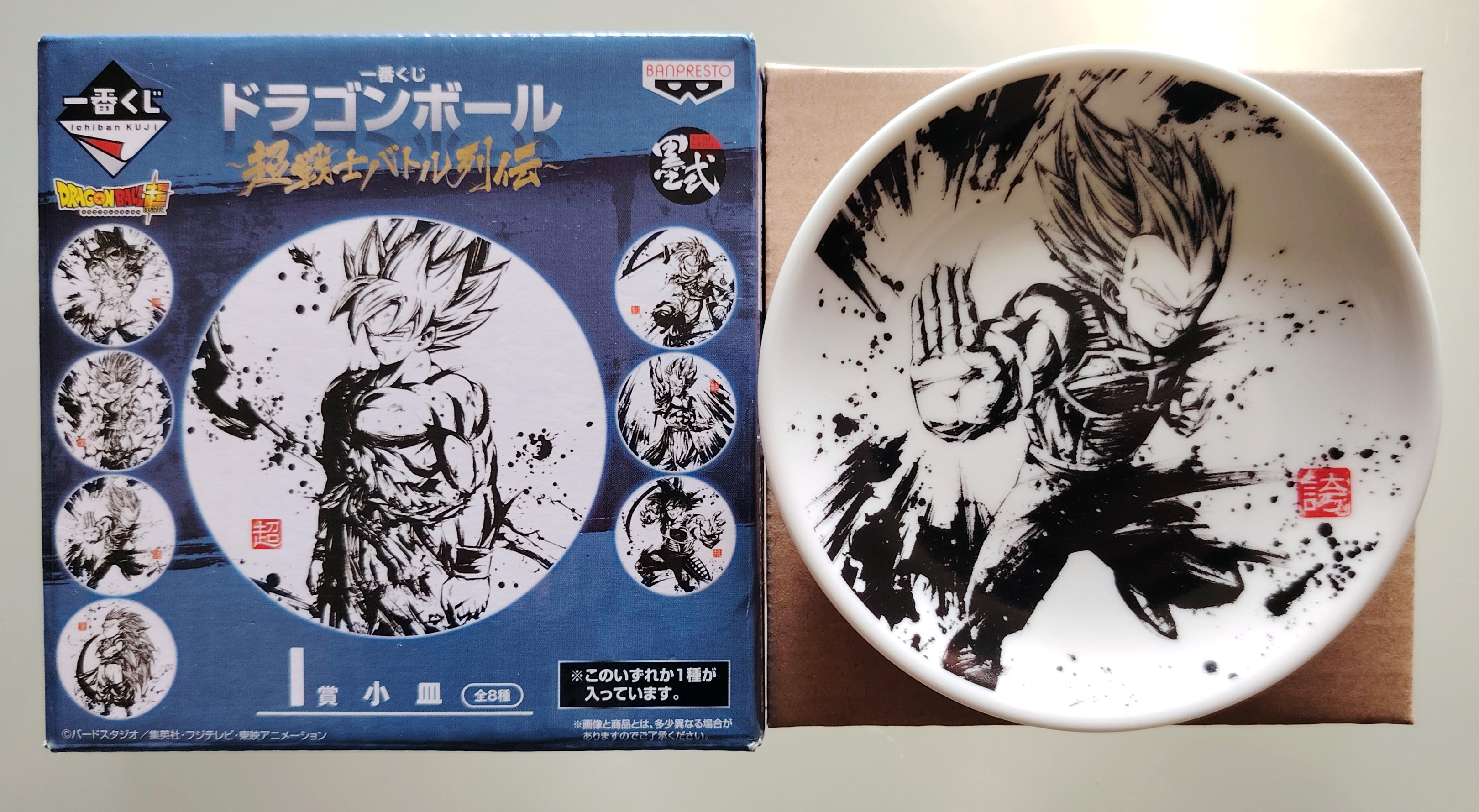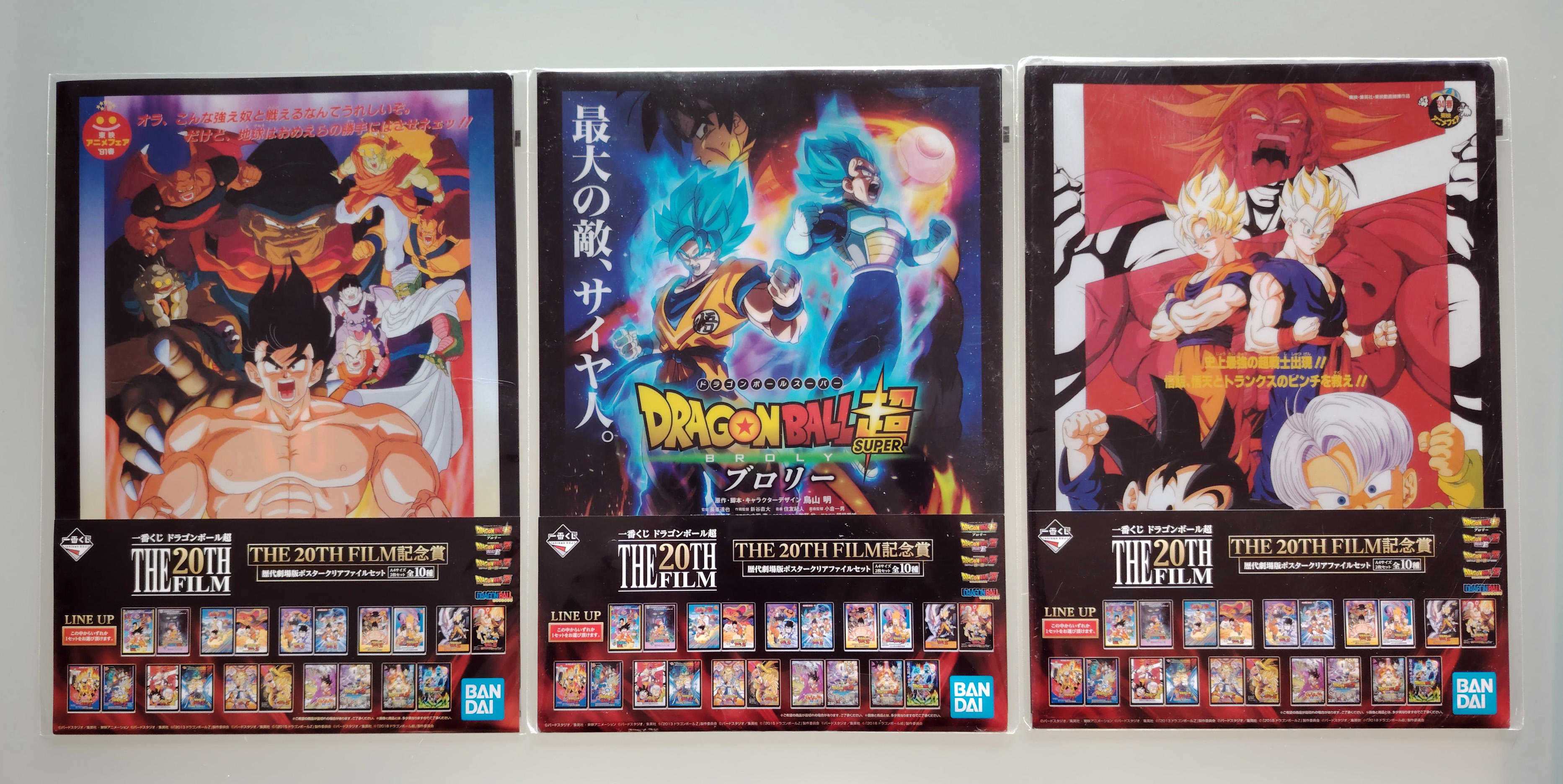 Lot de 8 produits de différentes Ichiban Kuji Dragon Ball Z contenant 4 clear files don 3 "the 20th Film" (scellés) et un clear file Chô-senshi battle retsuden (scellé), une serviette "Dragon Ball VS Omnibus Z", un étui à masque Dragon Ball VS Omnibus Z (scellé), une petite assiette "Chronique des combats des super guerriers" (boîte ouverte), une figurine Gohan Super Saiyan 2 "Chronique des combats des super guerriers" (sans boîte).