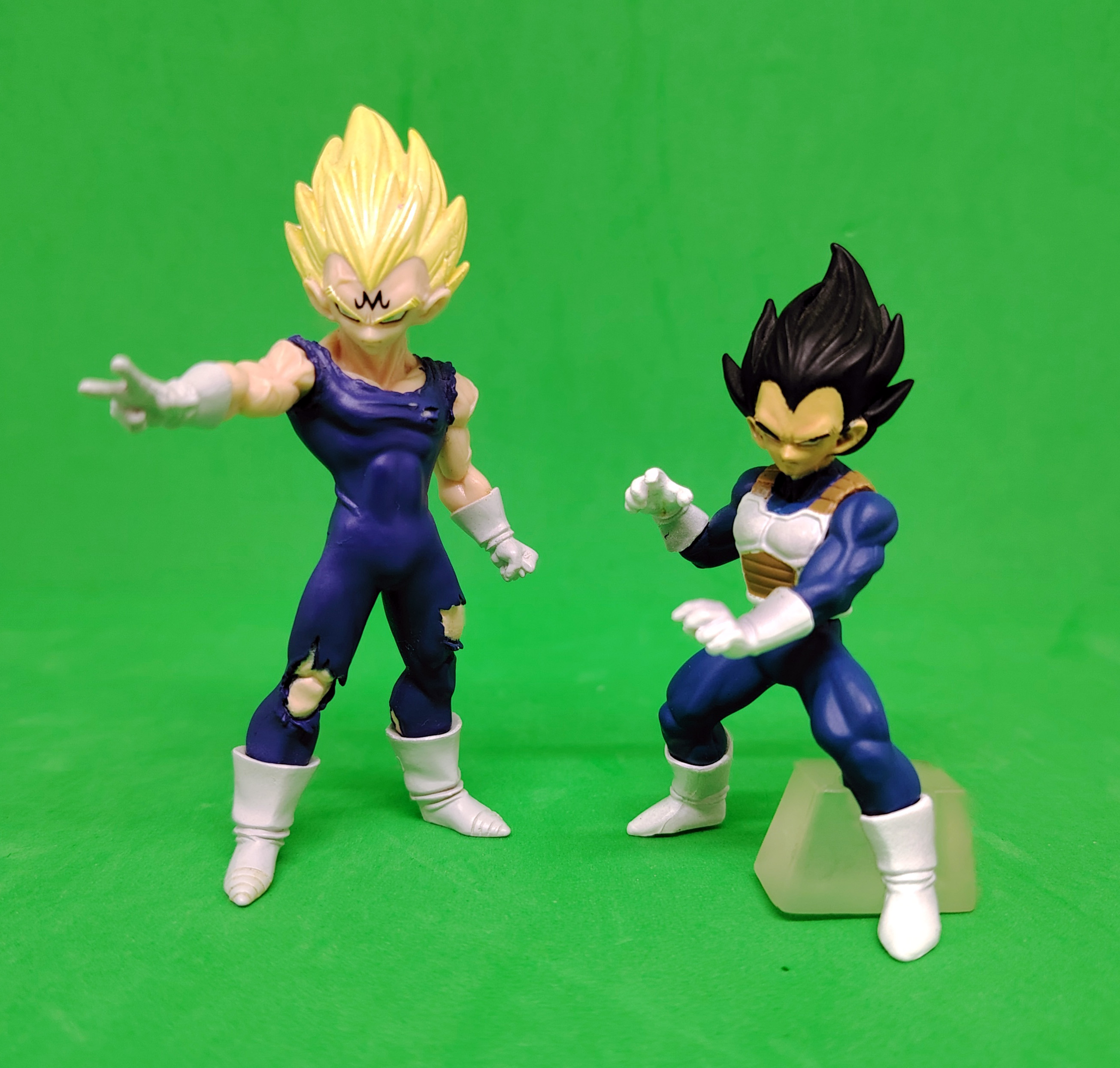 Lot de 11 gashapons Dragon Ball Z HG de séries diverses comprenant 2 Majin Vegeta, Goku Super Saiyan 2, Trunks Super Saiyan du film 9, Goku, Mr. Popo, C-16, C-17, C-18, Trunks et Vegeta. Édités par Bandai.