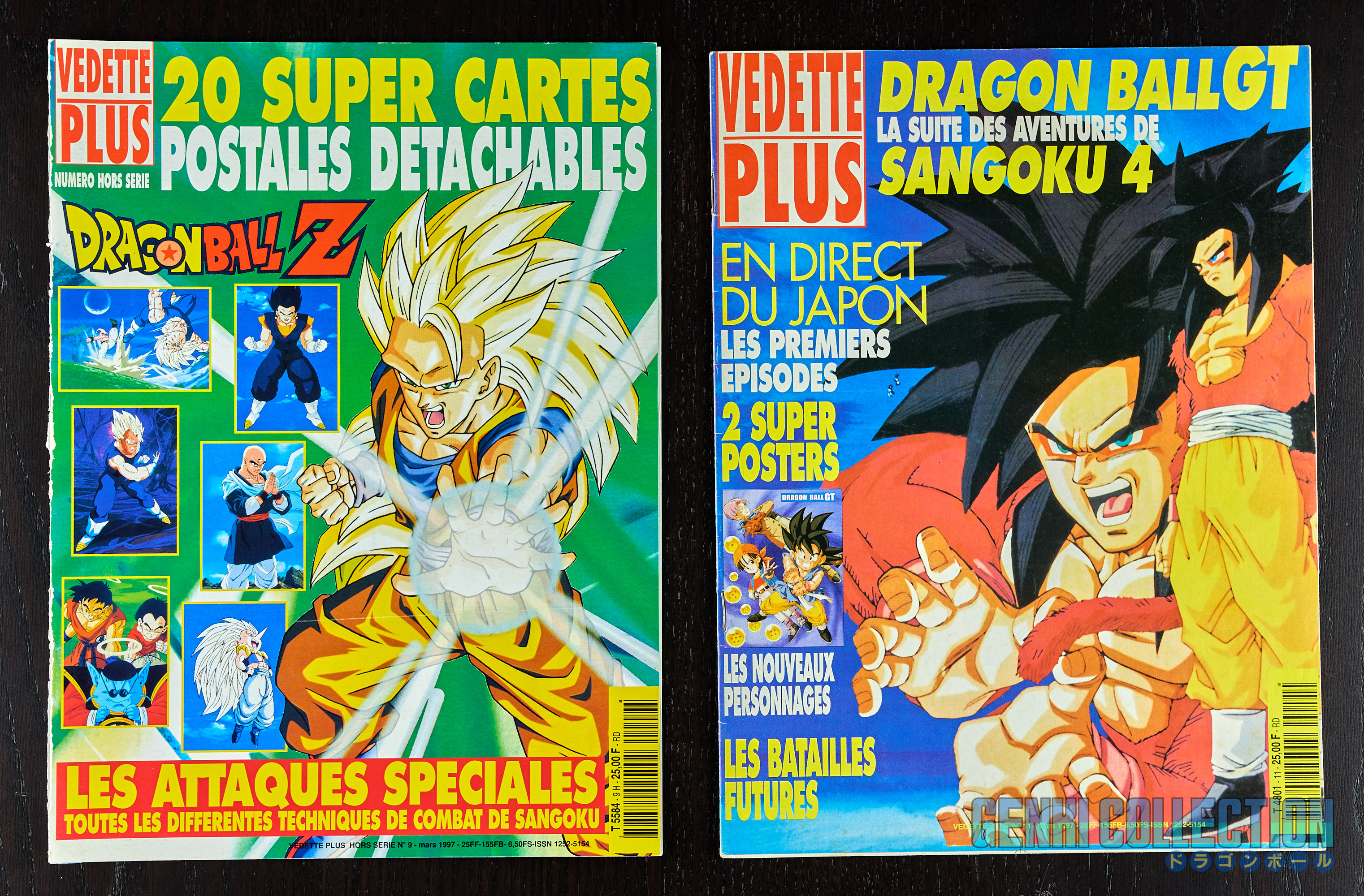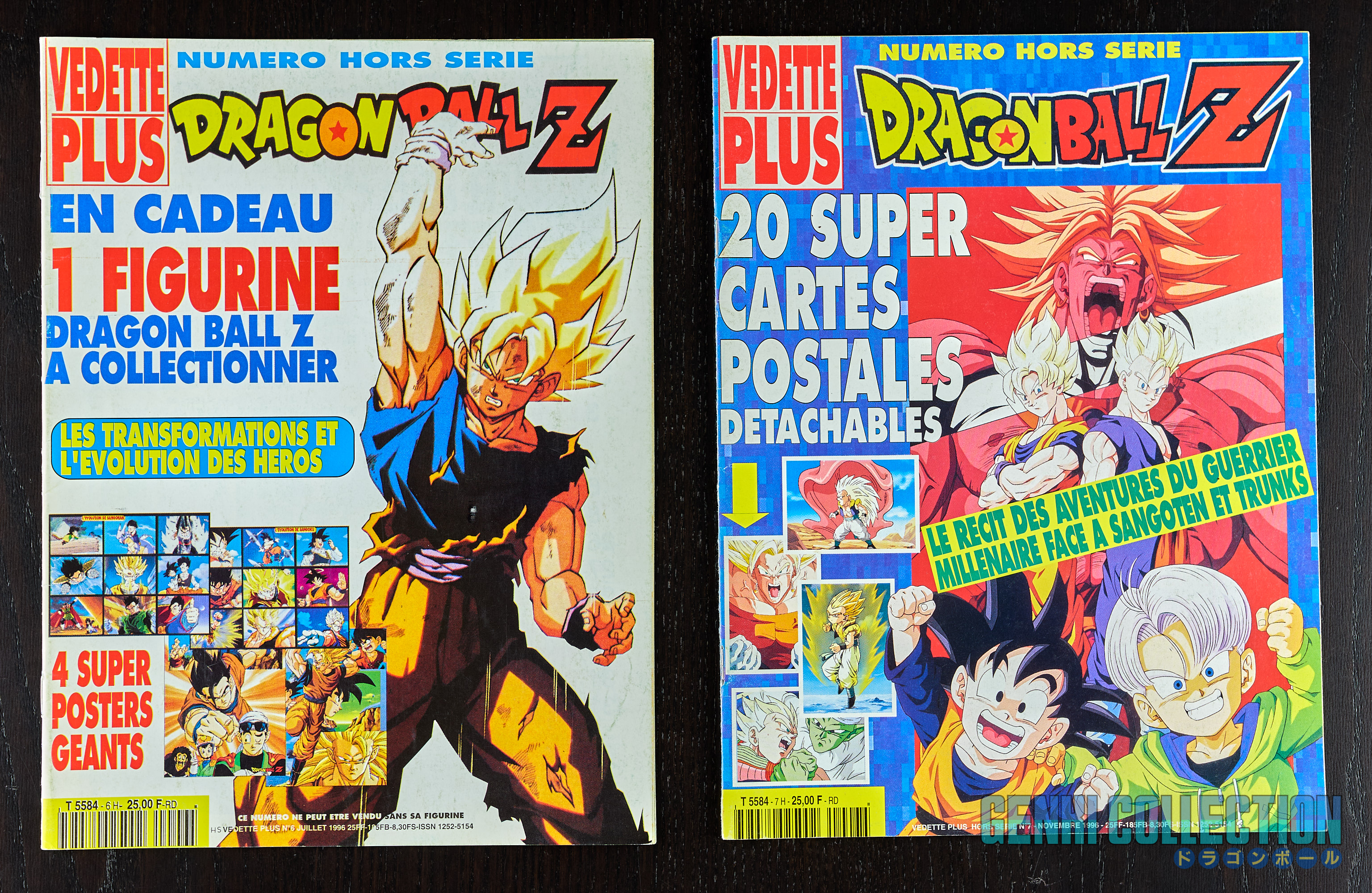 Ensemble de 6 magazines Vedette Plus d'époque spéciaux Dragon Ball Z, n° 3H, 4H, 6H, 7H et 9H, années 1995 à 1997. Les revues sont dans un bon état, mais ont vécues. Des pages peuvent êtres détachées ou écrites. Tous les posters ne sont pas forcément présents, tous comme les cartes détachables. Retrouvez la série telle que découverte dans les années 90, avec de nombreux articles, mais également des illustrations qu'on ne trouve pas forcément ailleurs.