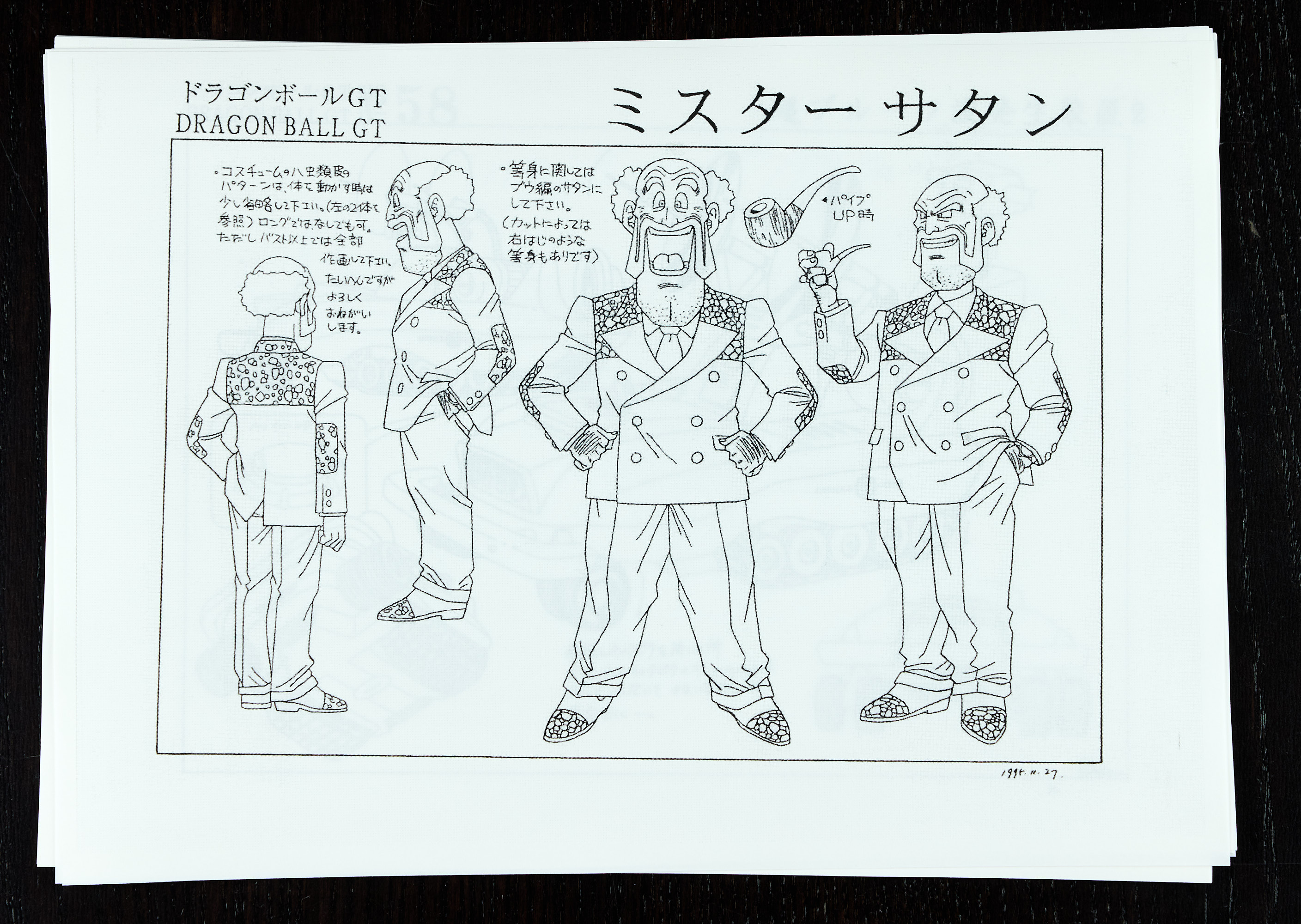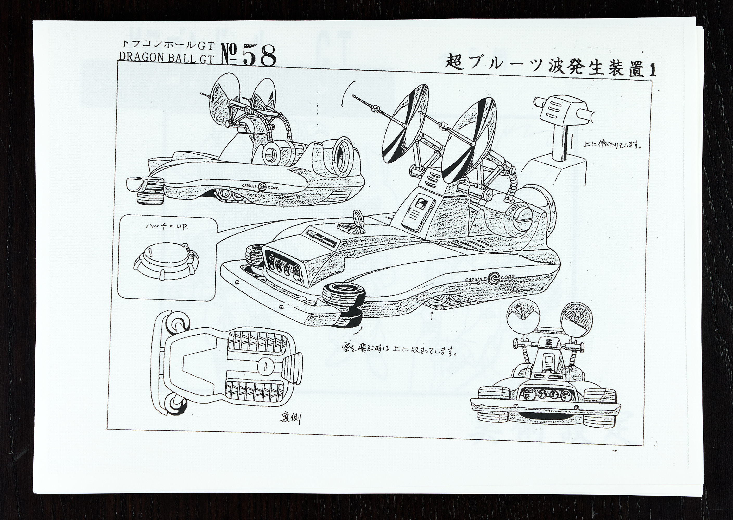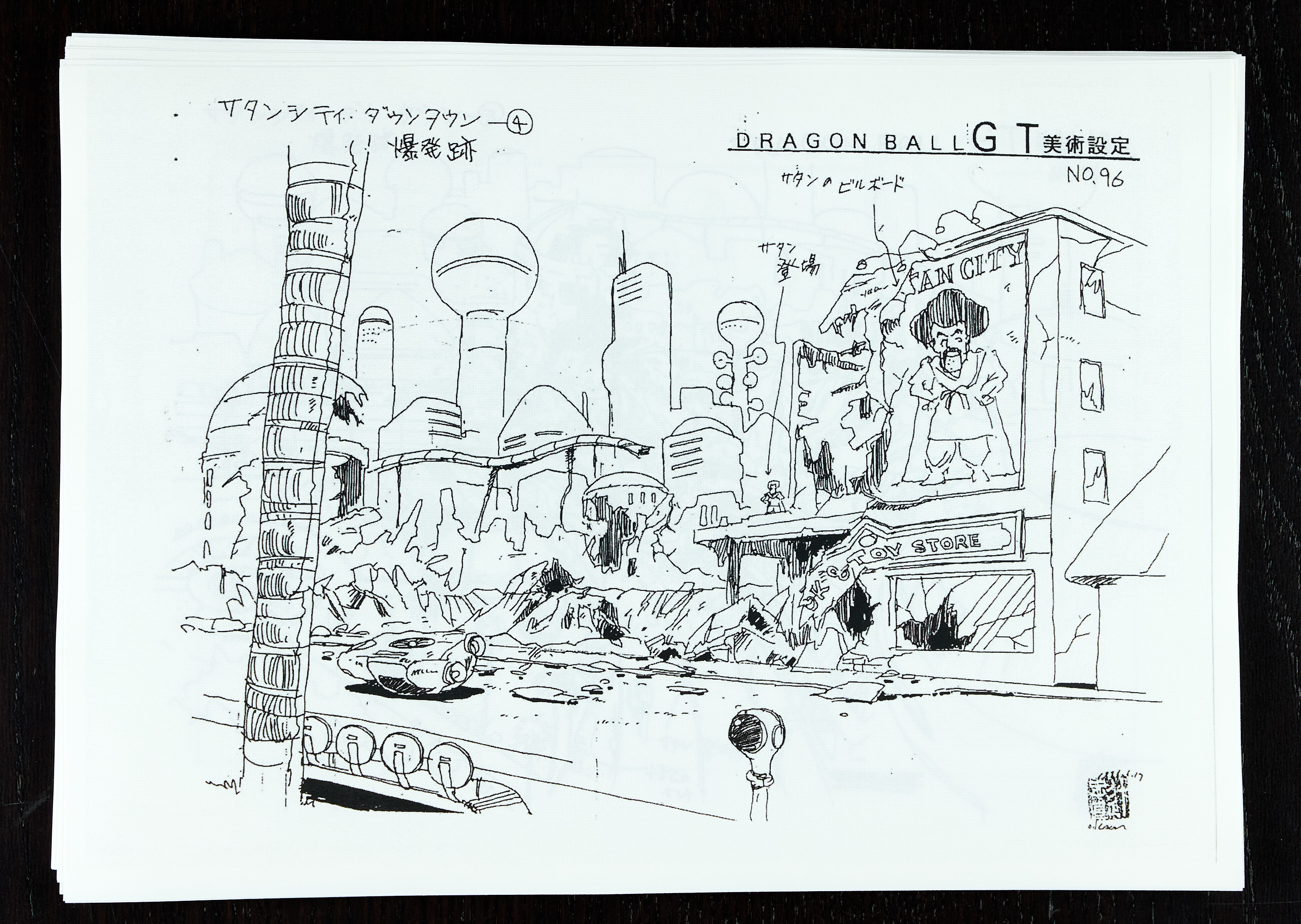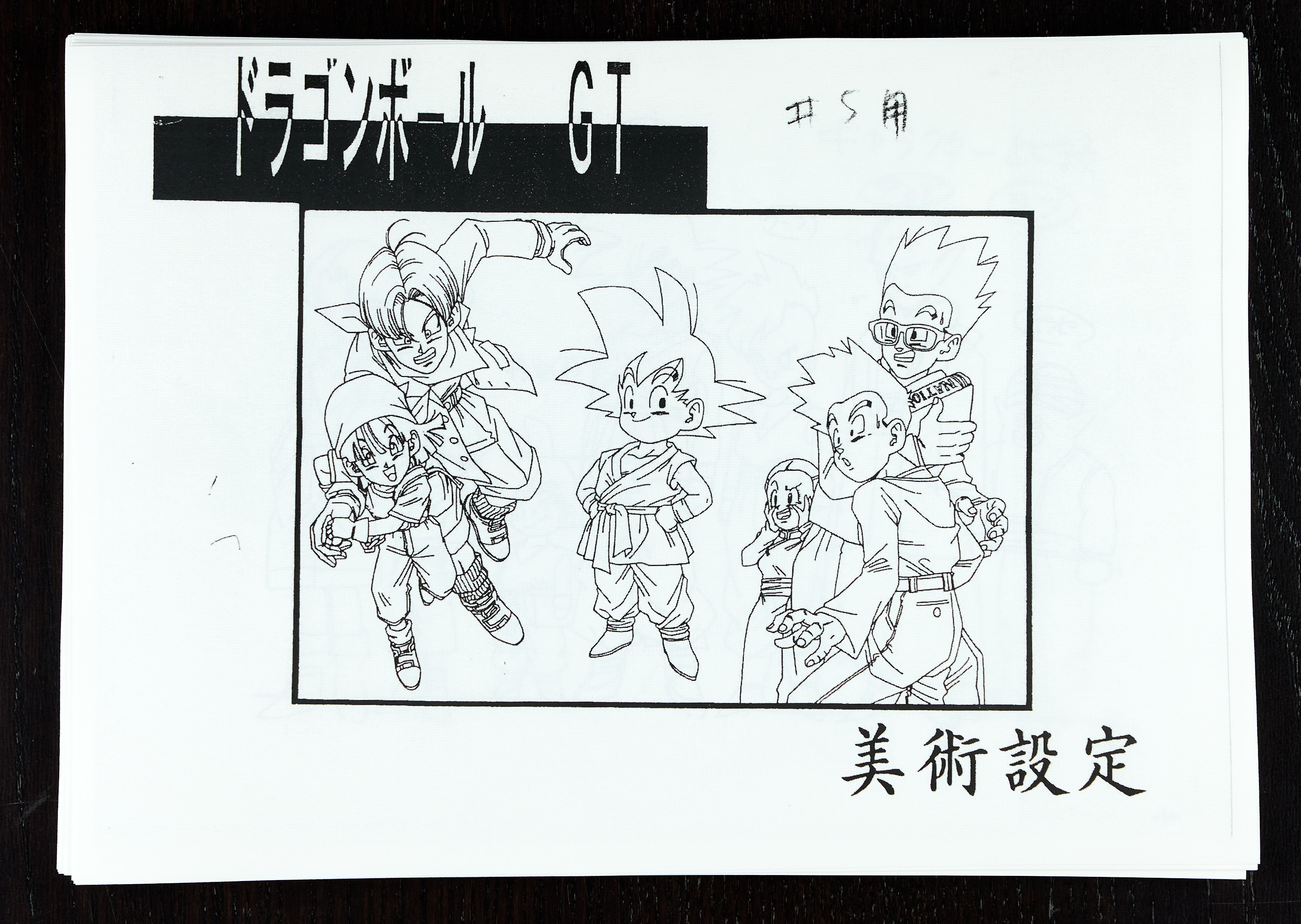 Ensemble de 87 copies de settei (model sheets) format A4 (21x29,7cm) issus de la série Dragon Ball GT, réalisés par divers animateurs talentueux comme Tadayoshi Yamamuro et Katsuyoshi Nakatsuru, utilisés comme modèles de référence pour les studios Toei Animation. Dans le lot vous trouverez des croquis préparatoires des personnages, des décors, des véhicules et des accessoires utilisés dans la série.