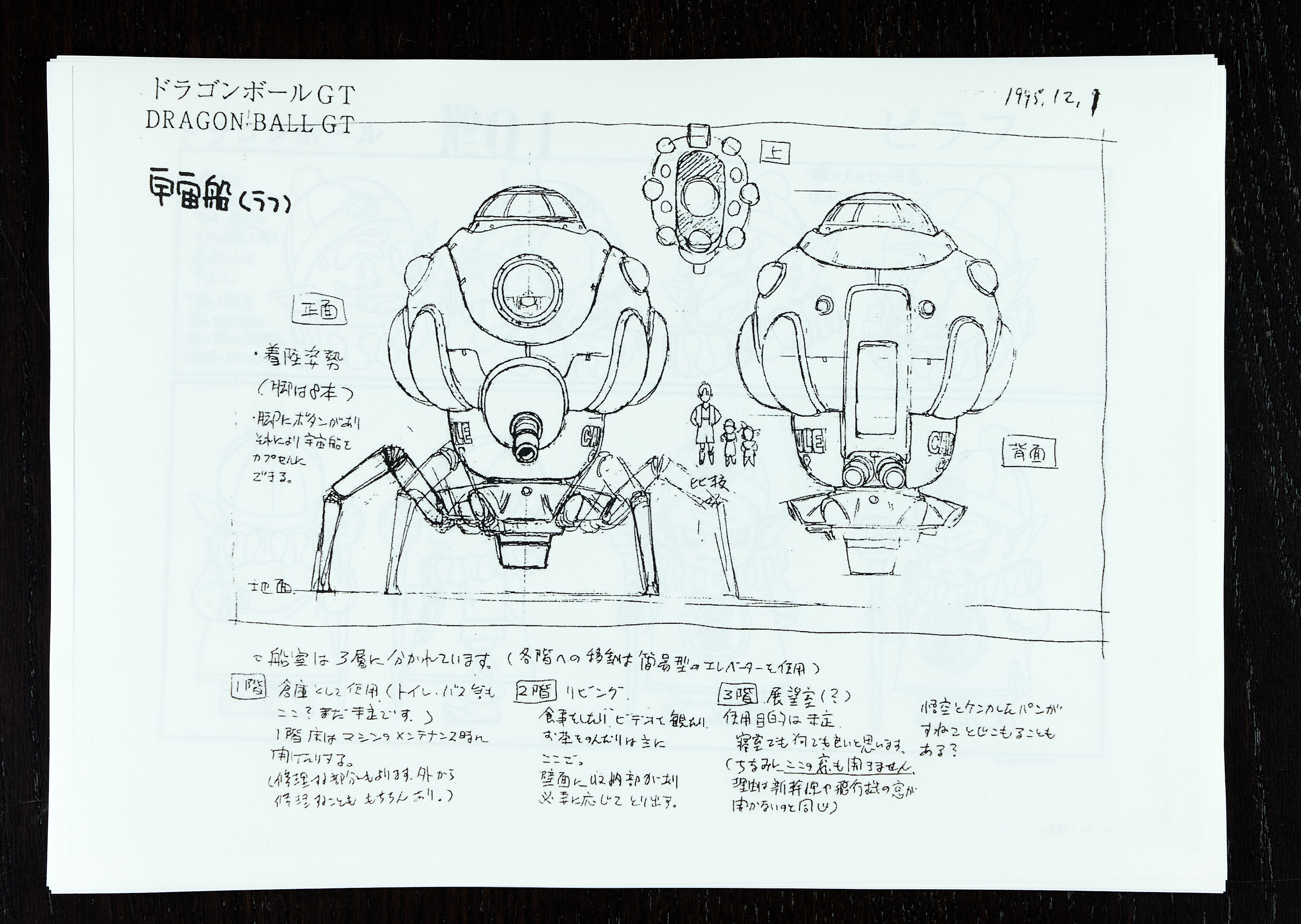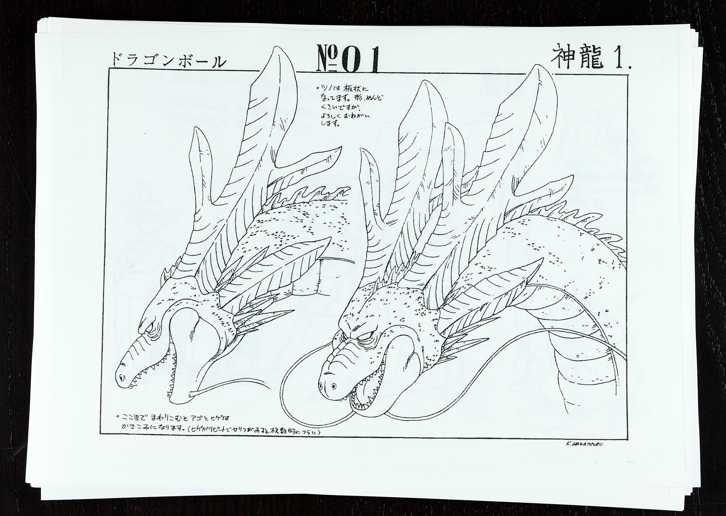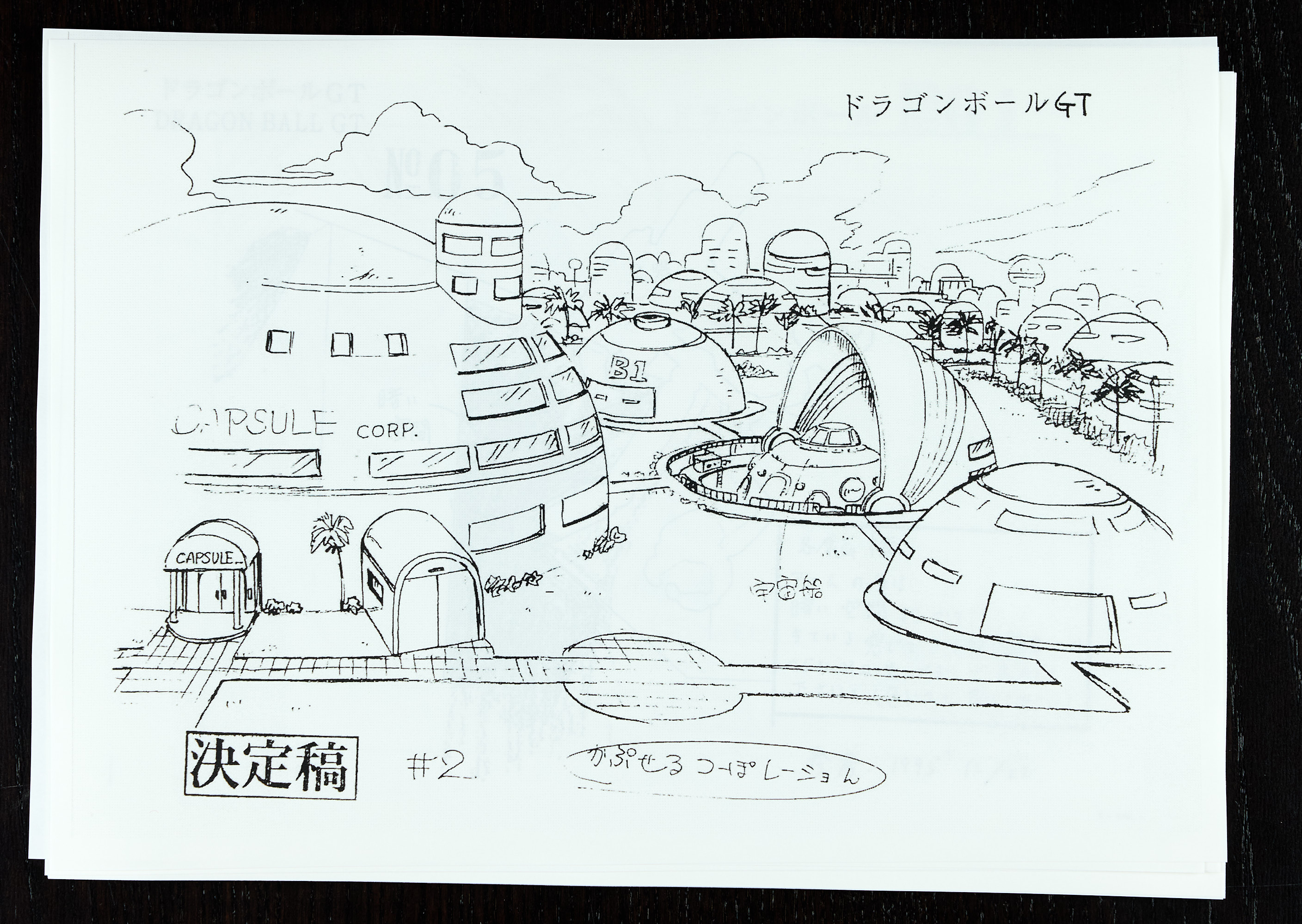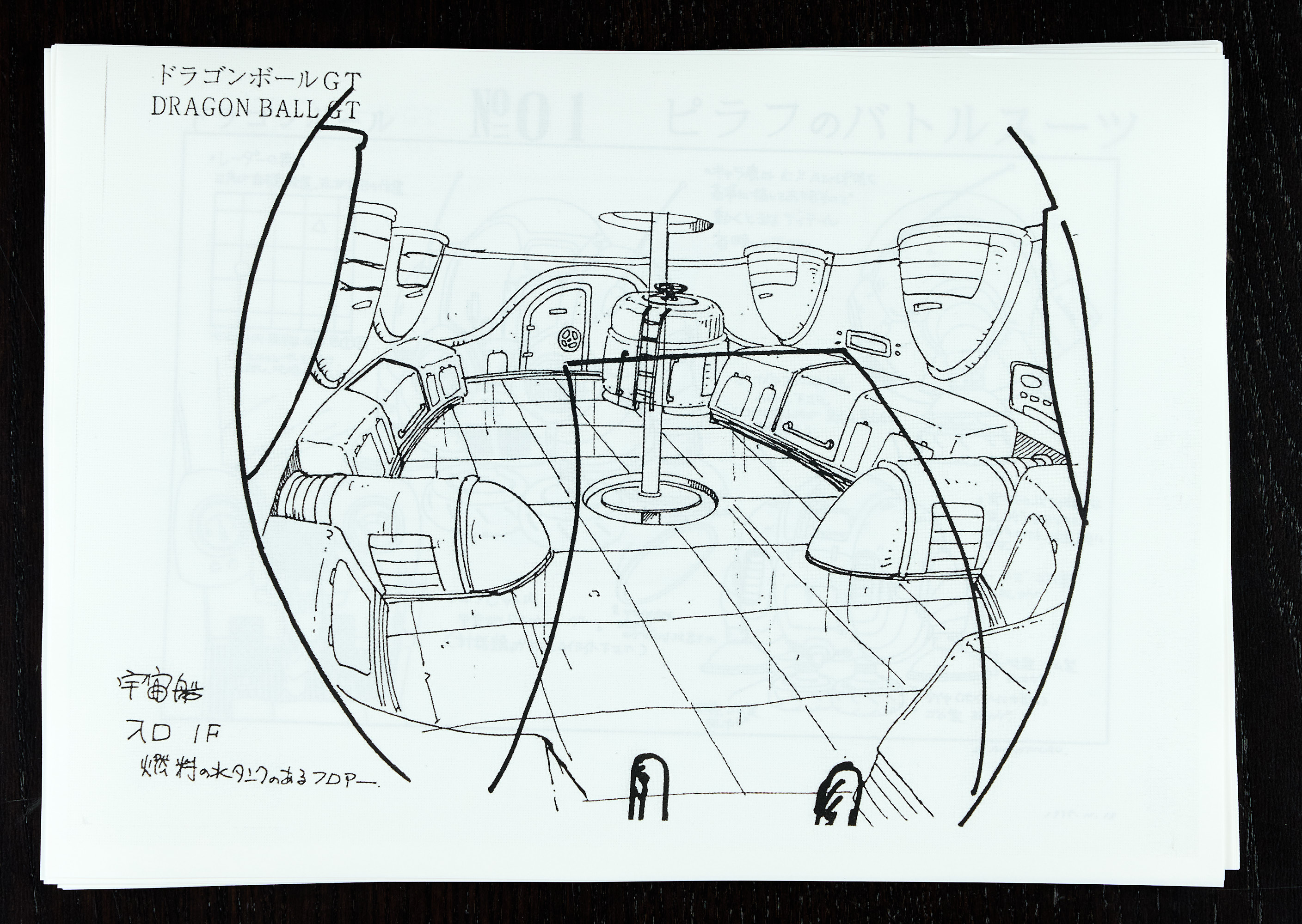 Ensemble de 87 copies de settei (model sheets) format A4 (21x29,7cm) issus de la série Dragon Ball GT, réalisés par divers animateurs talentueux comme Tadayoshi Yamamuro et Katsuyoshi Nakatsuru, utilisés comme modèles de référence pour les studios Toei Animation. Dans le lot vous trouverez des croquis préparatoires des personnages, des décors, des véhicules et des accessoires utilisés dans la série.