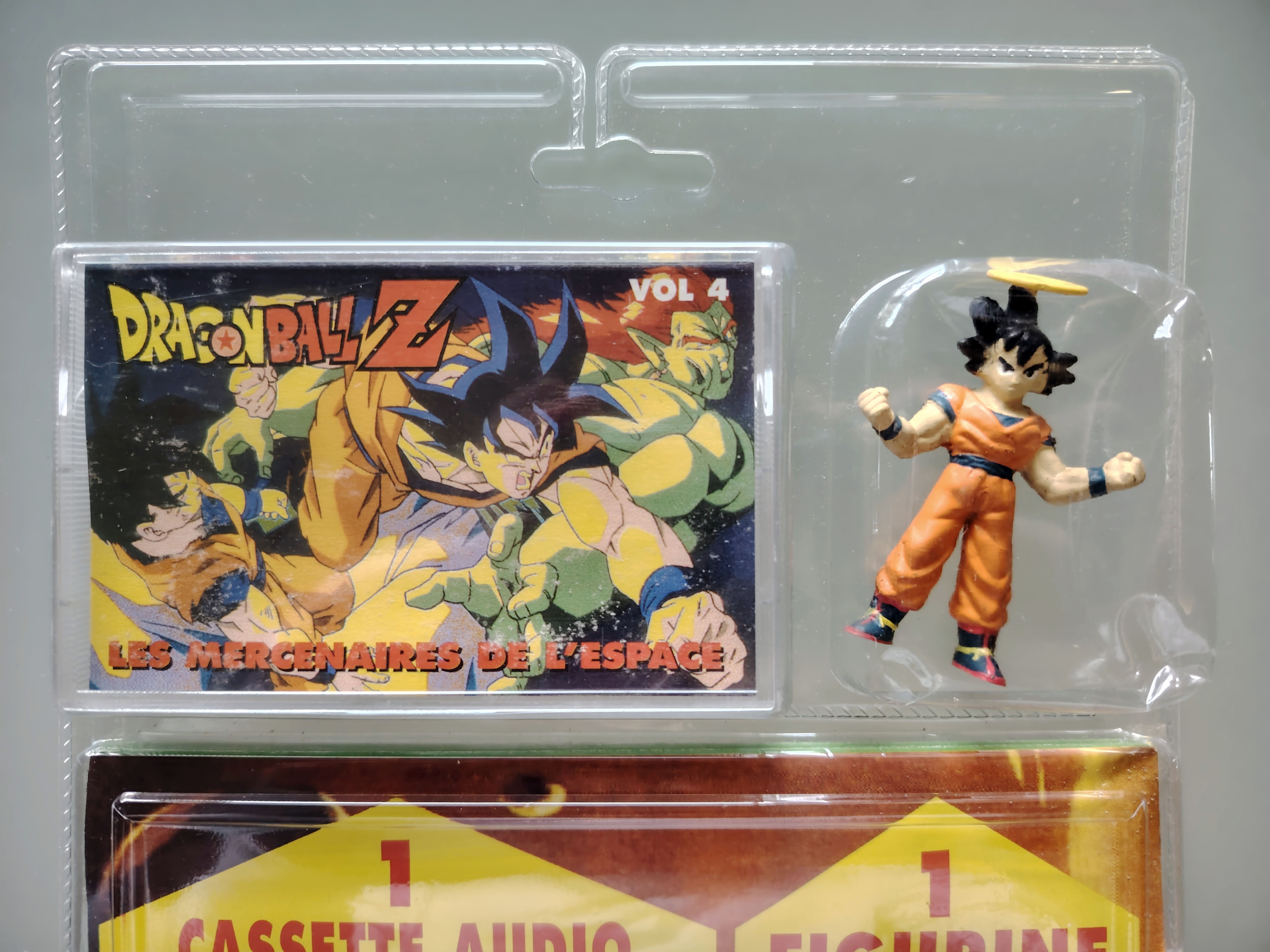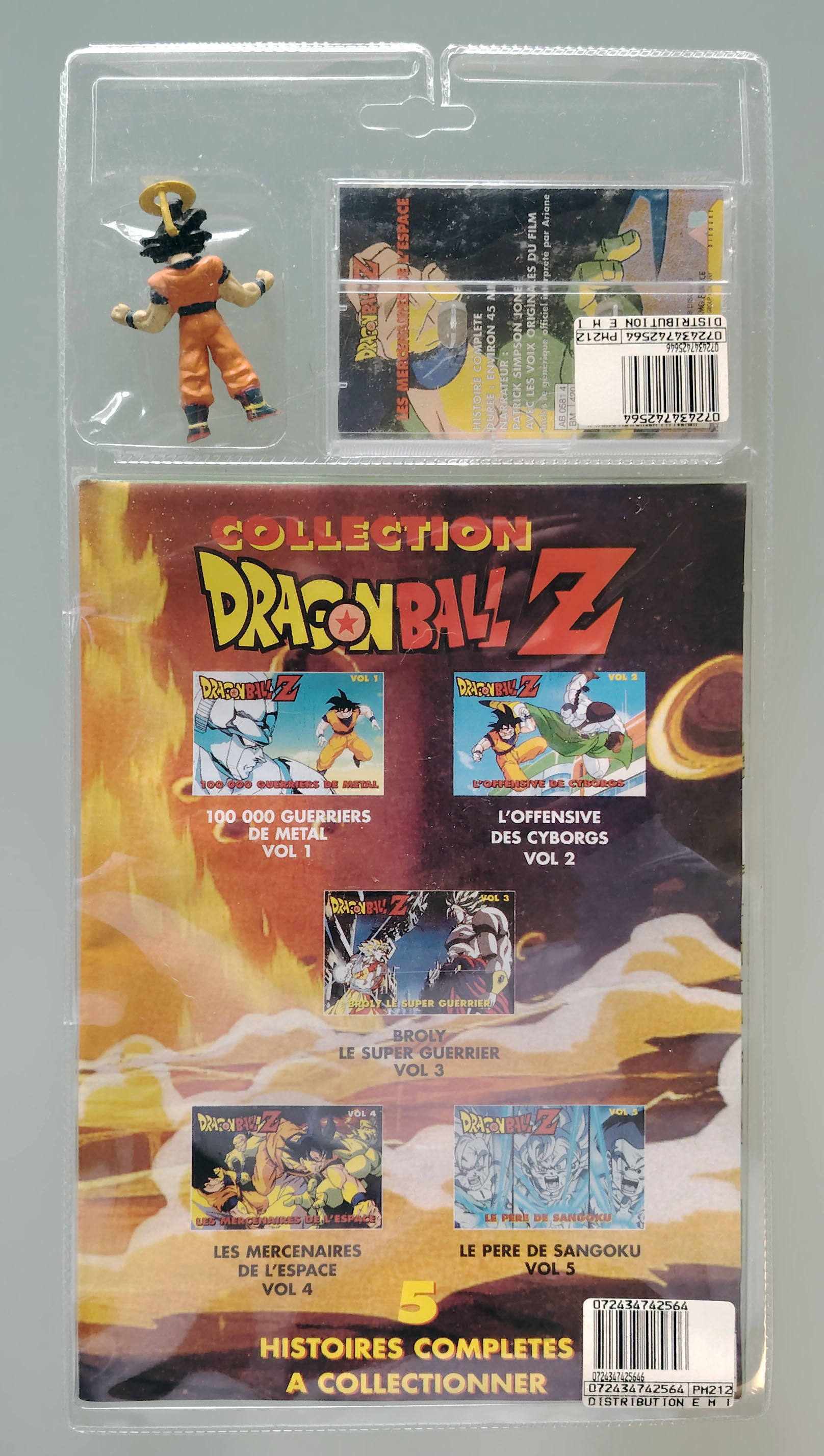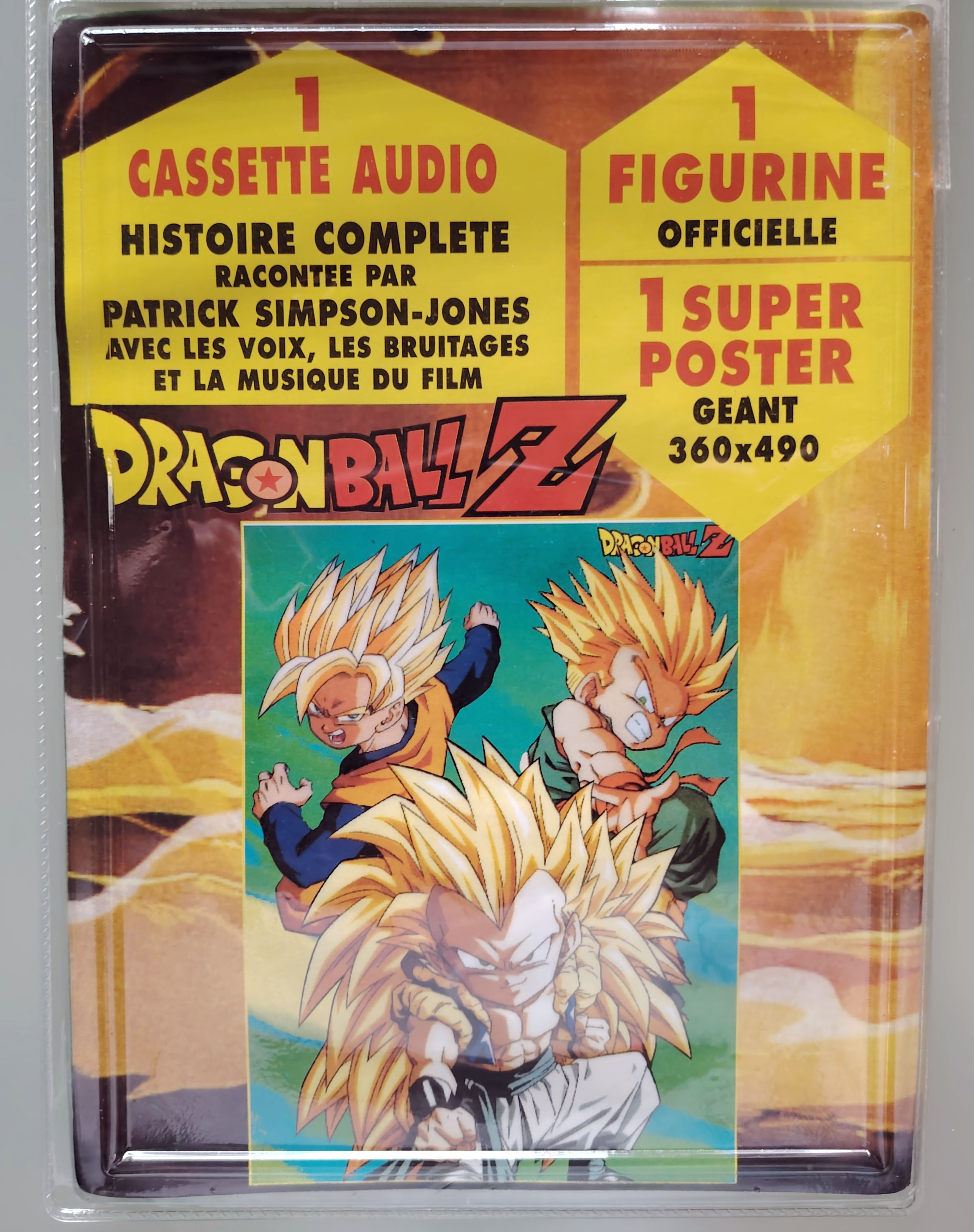 Coffret Scellé Dragon Ball Z Coffret Collection avec une cassette Audio "Histoire complète racontée par Patrick Simpson-Jones avec les voix, les bruitages et la musique du film 9 Les mercenaires de l'espace, une figurine AB Toy et un poster géant 36x46cm de Goten, Trunks et Gotenks. Sorti en 1995 par AB Disque.