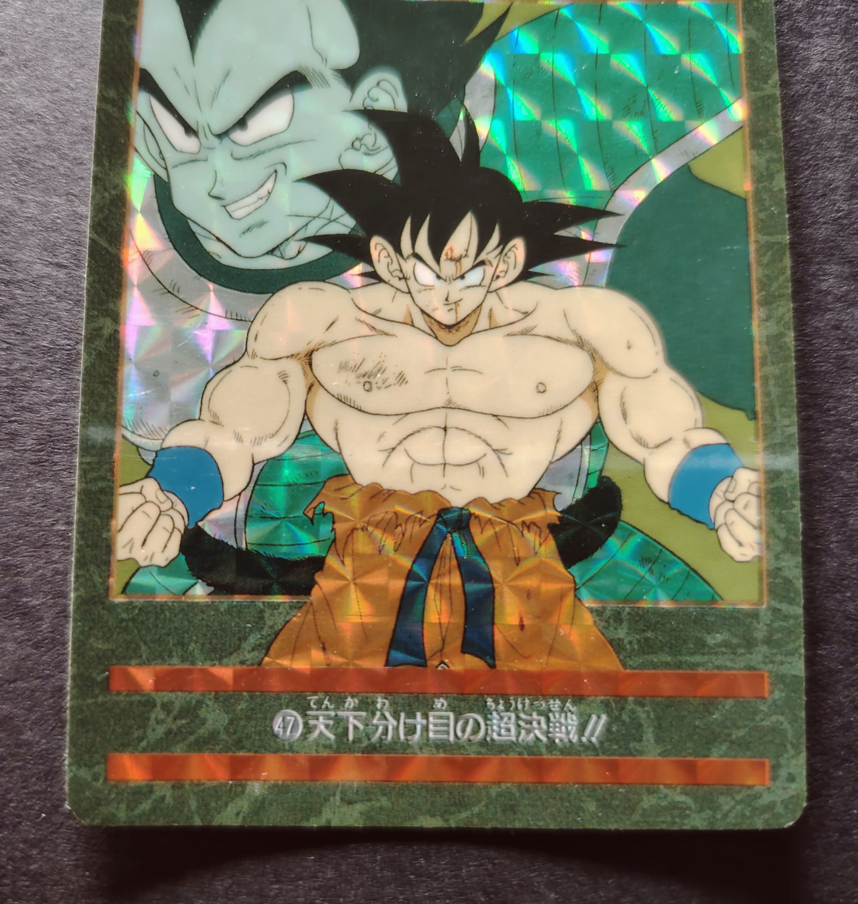 Carte Dragon Ball Z Visual Adventure Part 2 n° 47 représentant Goku & Vegeta. Bon état général avec quelques petites imperfections. Protégée dans une sleeve et un Toploader. Sortie en 1991 par Bandai.