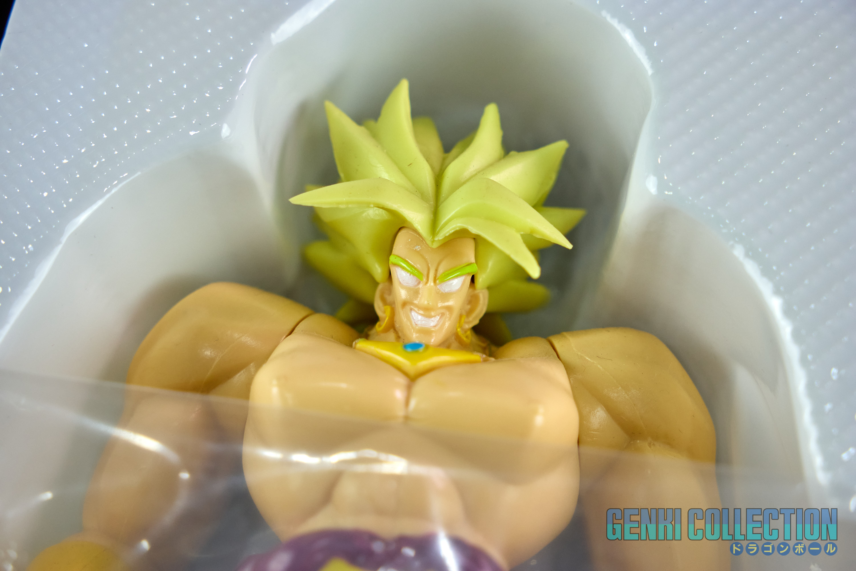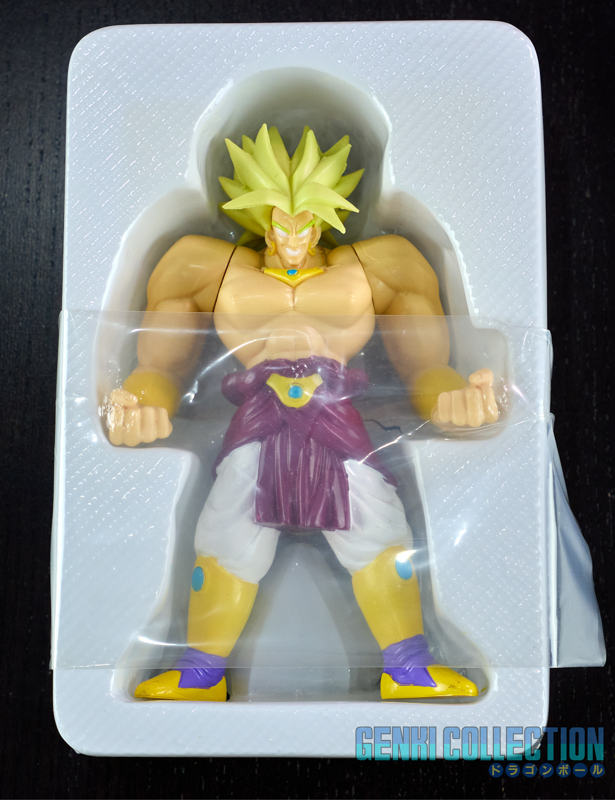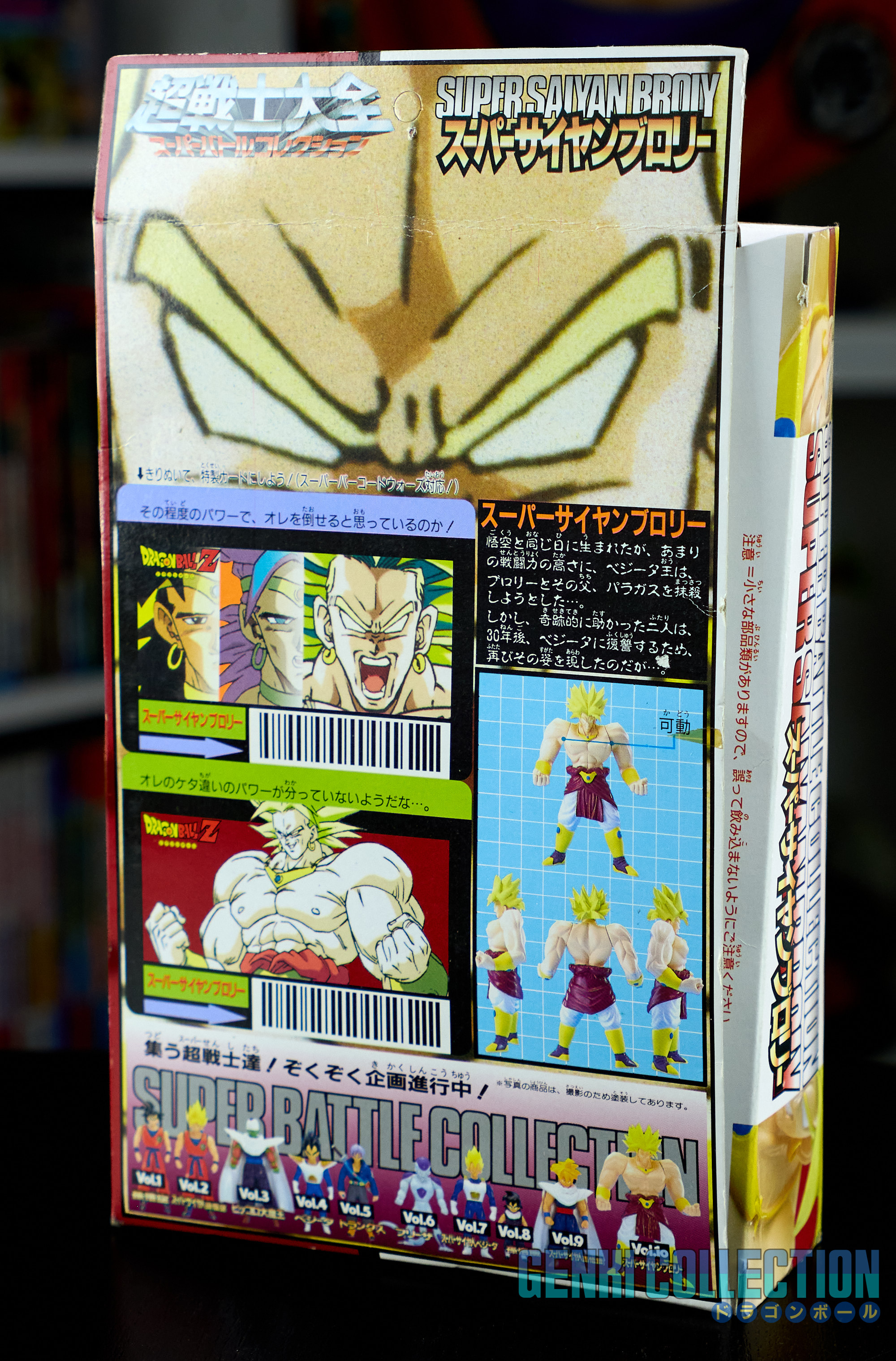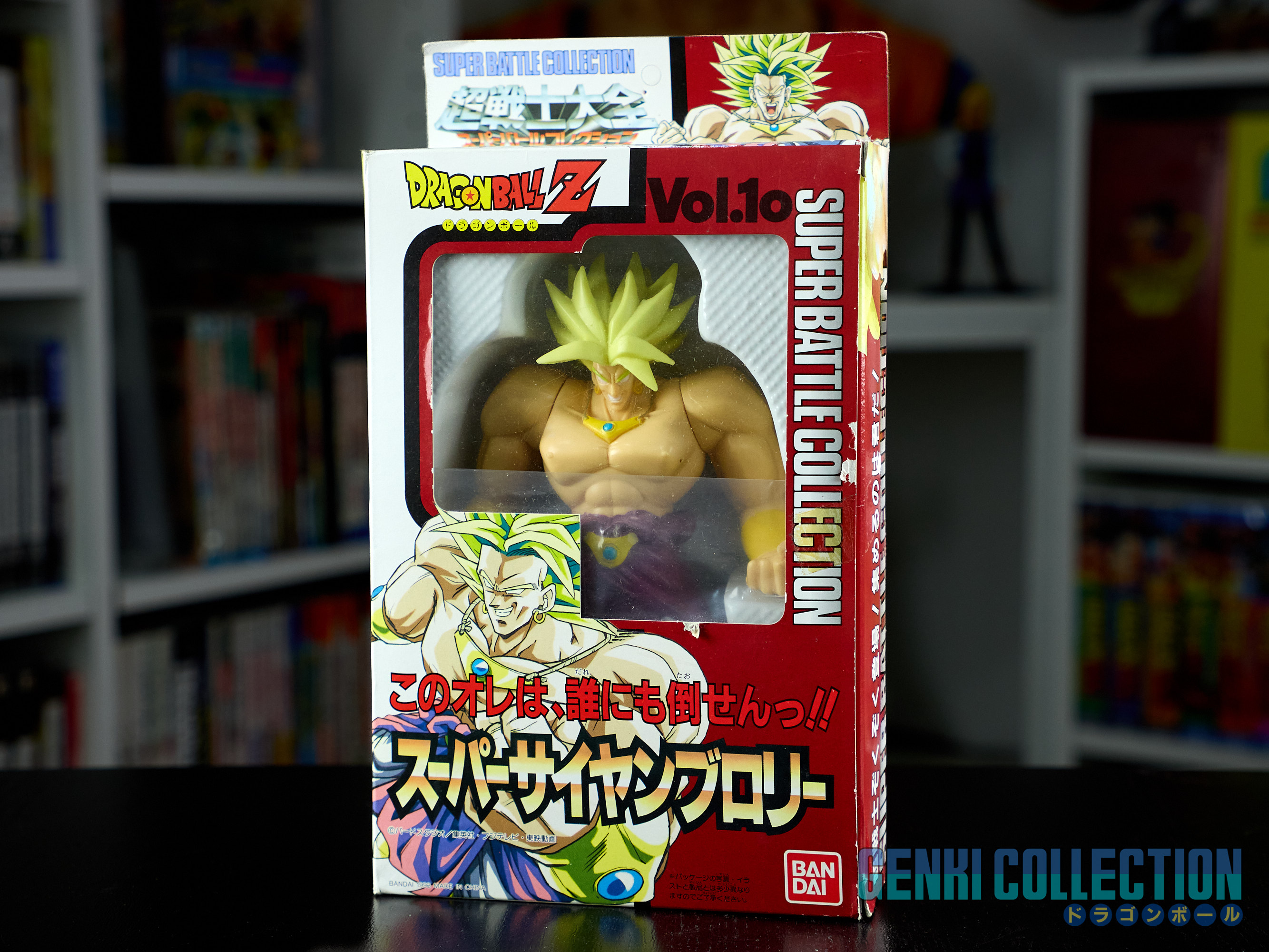 Figurine Super Battle Collection Broly Super Saiyan volume 10 en première édition de 1993, Made in China. Figurine très dure à trouver. Bon état général, quelques défauts sur la boîte (légers plis et usure des coins notamment). La figurine n'a probablement jamais été sortie de son blister.