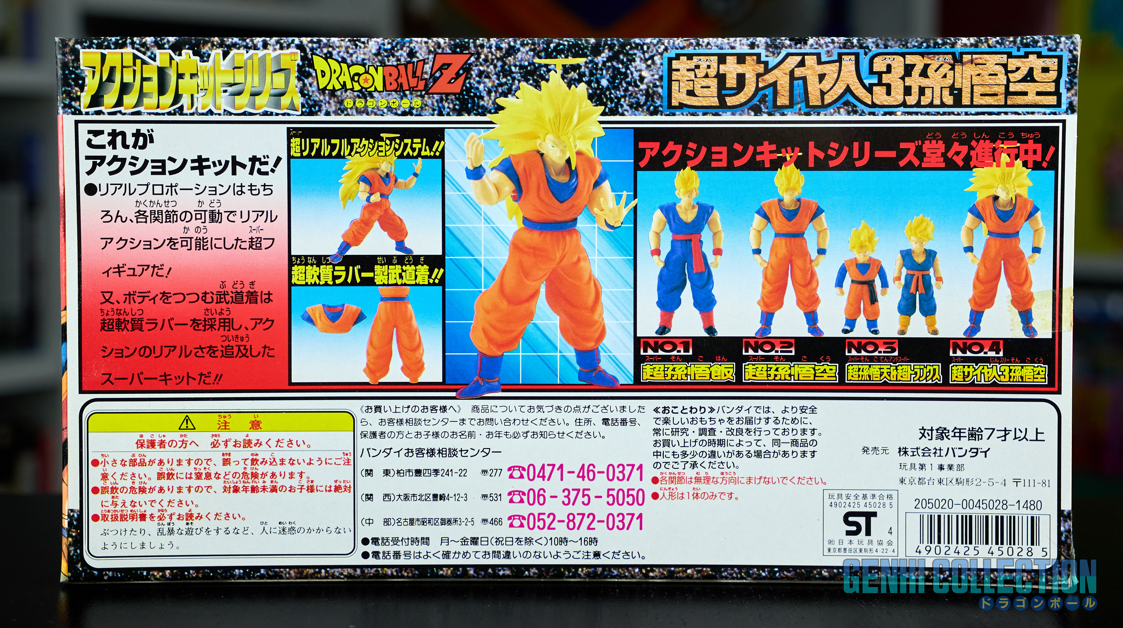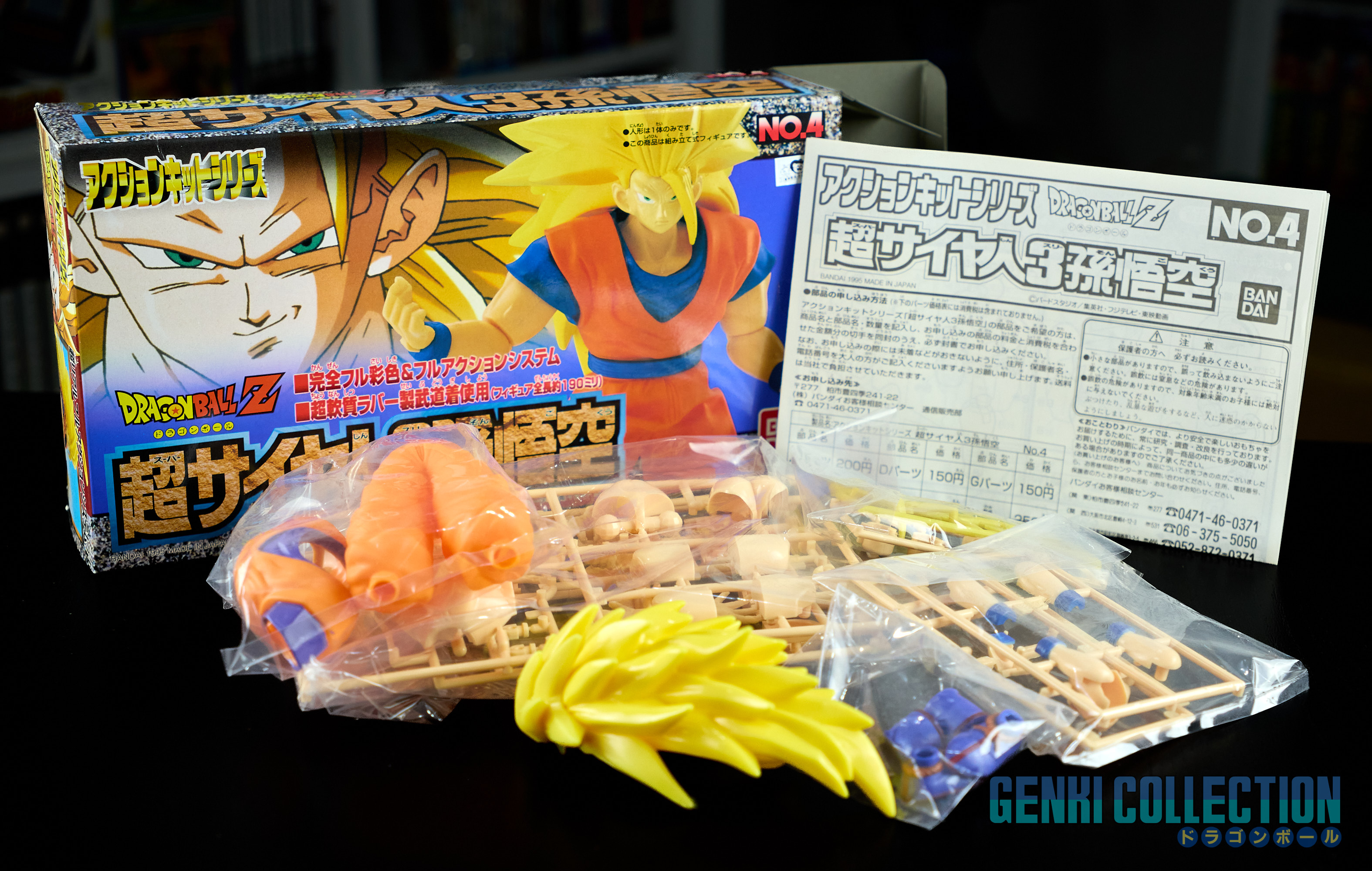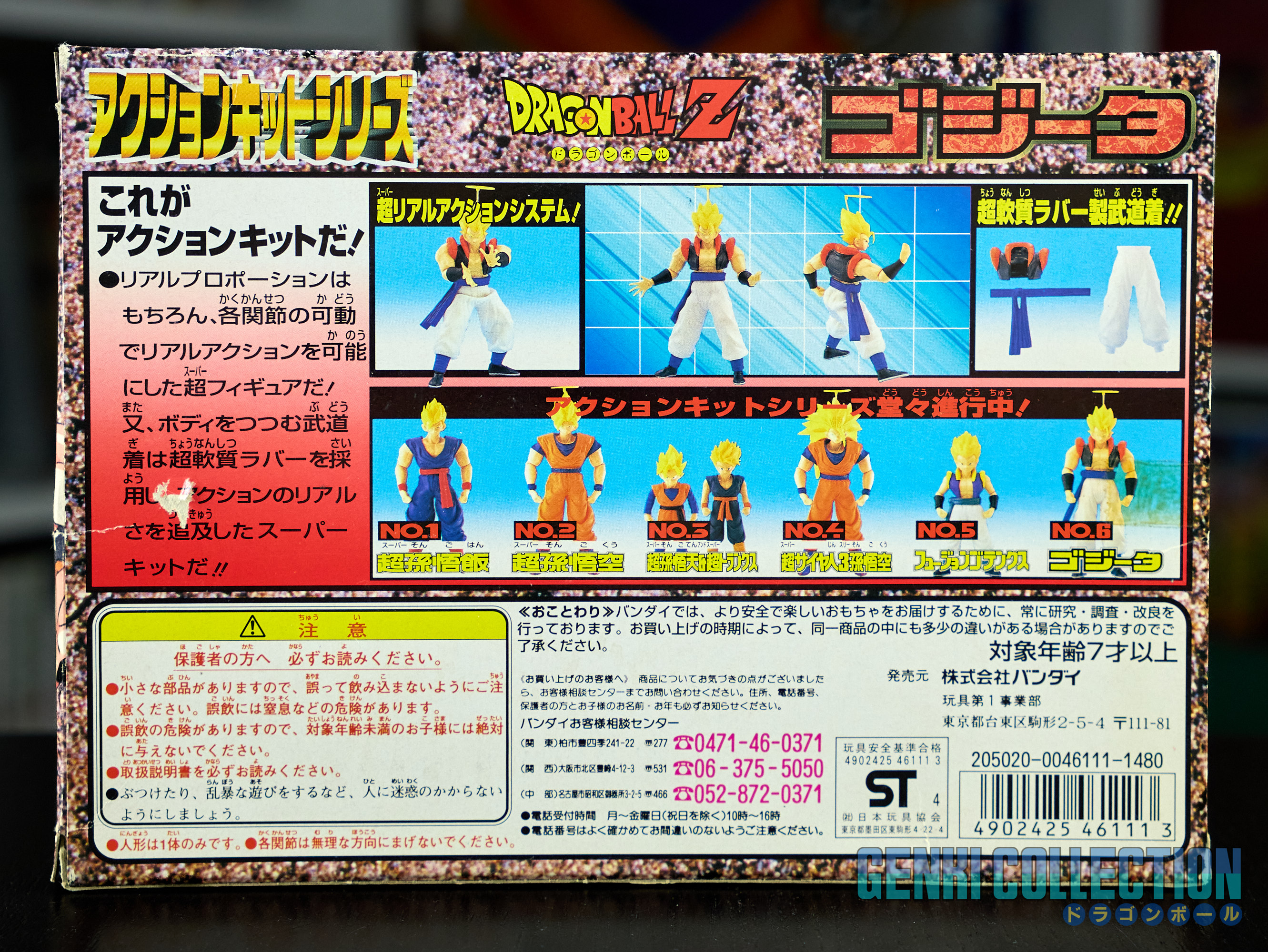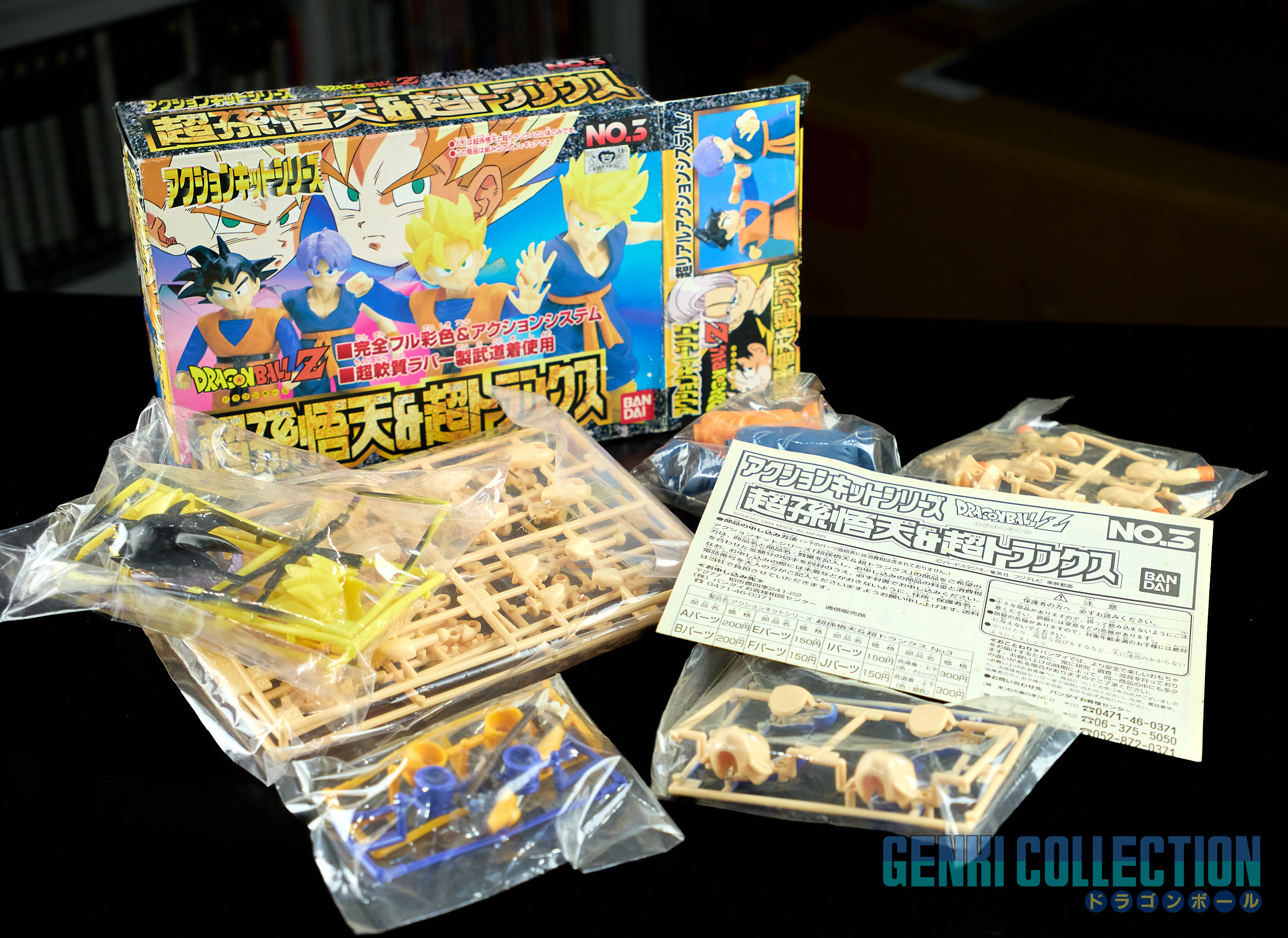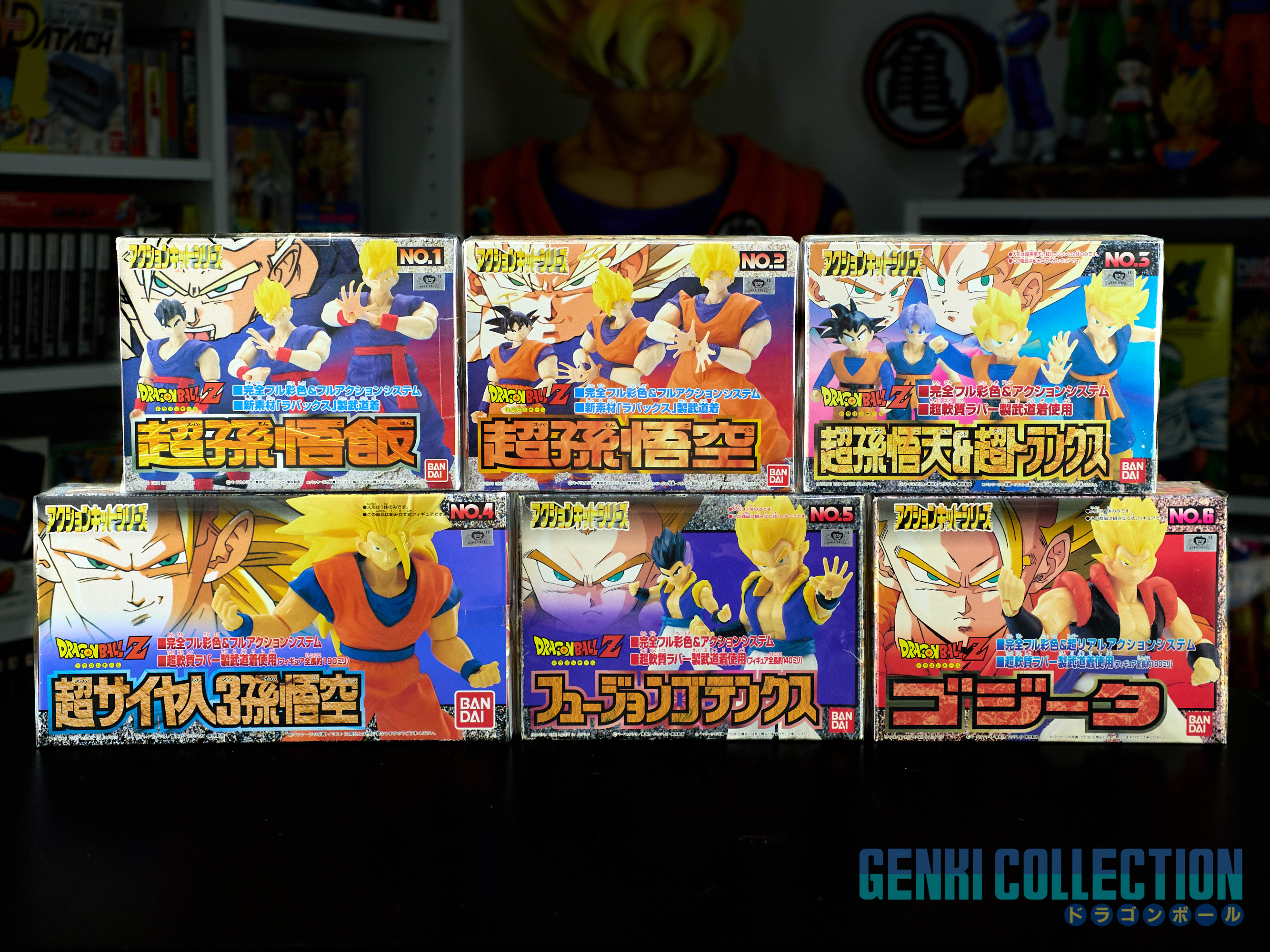 Complete set of 6 Dragon Ball Z Action Kits from 1994 to 1995. Made in Japan 1994 1st edition, of better build quality than the Made in China reissues (easily identifiable by the English names on the front of the boxes, unlike the Japanese versions which are entirely in Japanese).