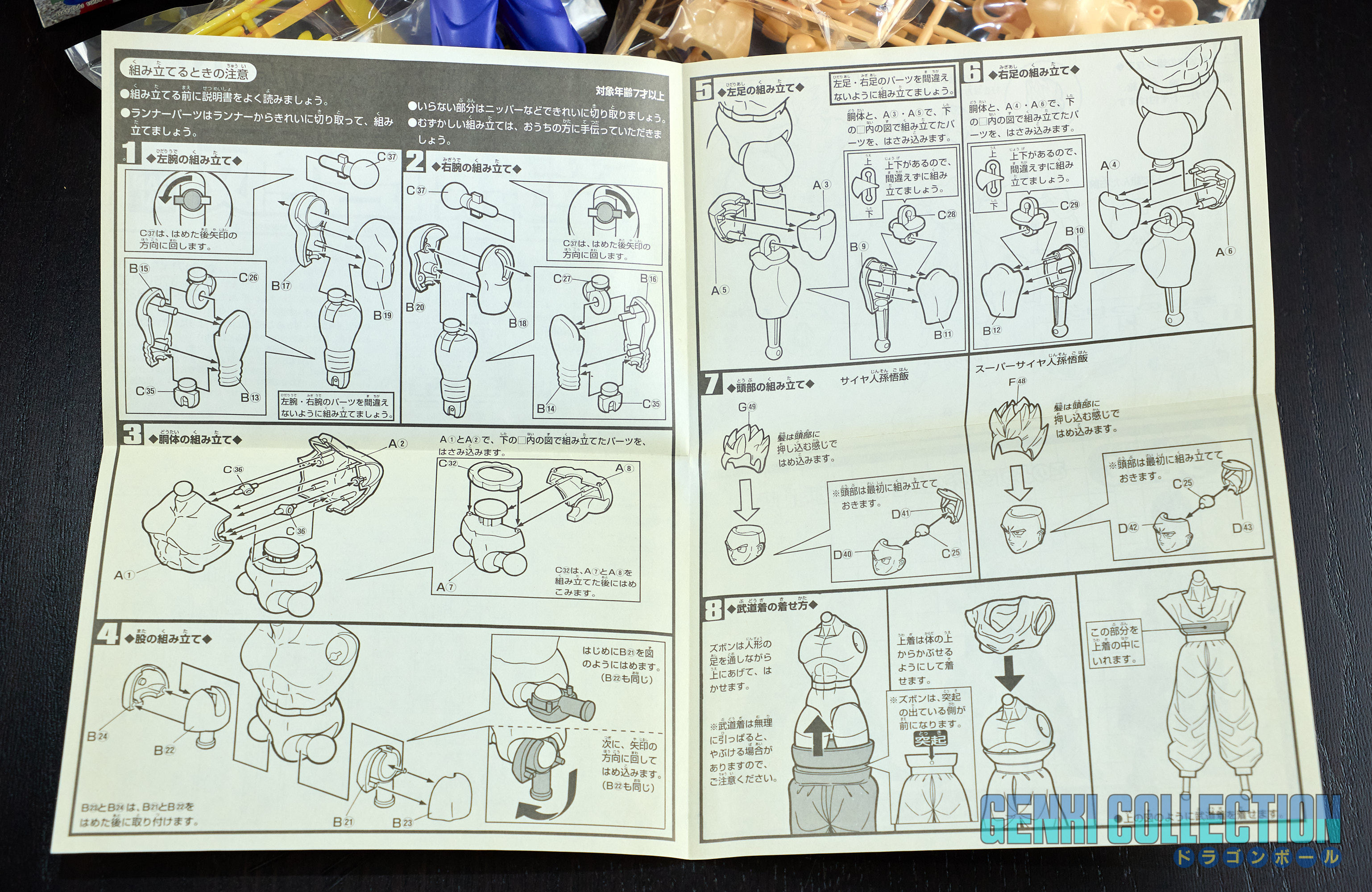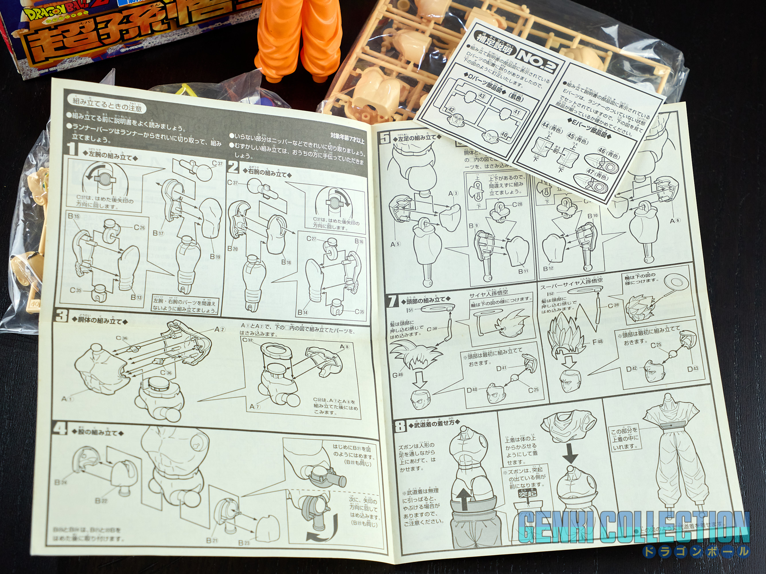 Ce sont de très belles figurines en maquettes à assembler facilement, sans doute les plus fidèles de l'époque avec en plus des têtes interchangeables en forme normale et Super Saiyan. Les vêtements sont en caoutchouc de très bonne facture qui n'ont pas perdu de leur qualité avec le temps. Les kits numéros 1 et 2 ont l'avantage d'avoir un "volet" de présentation qui ne sera pas gardé pour les volumes suivants.