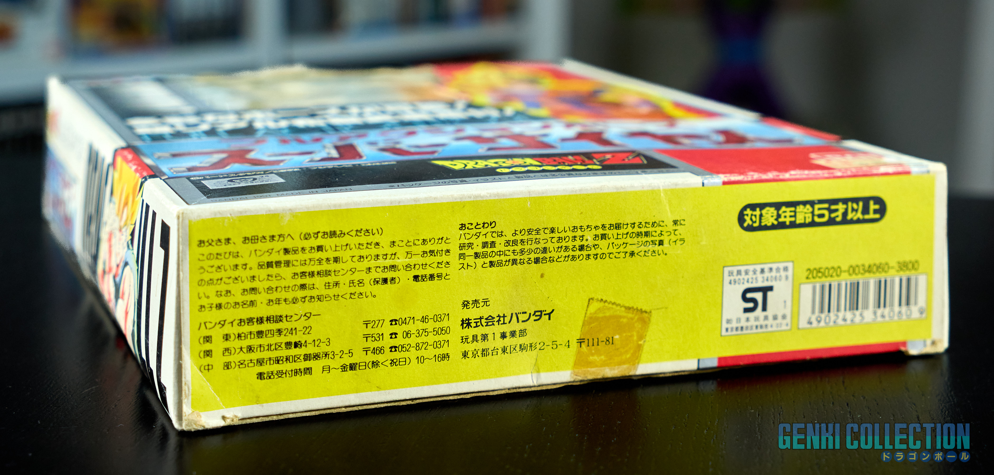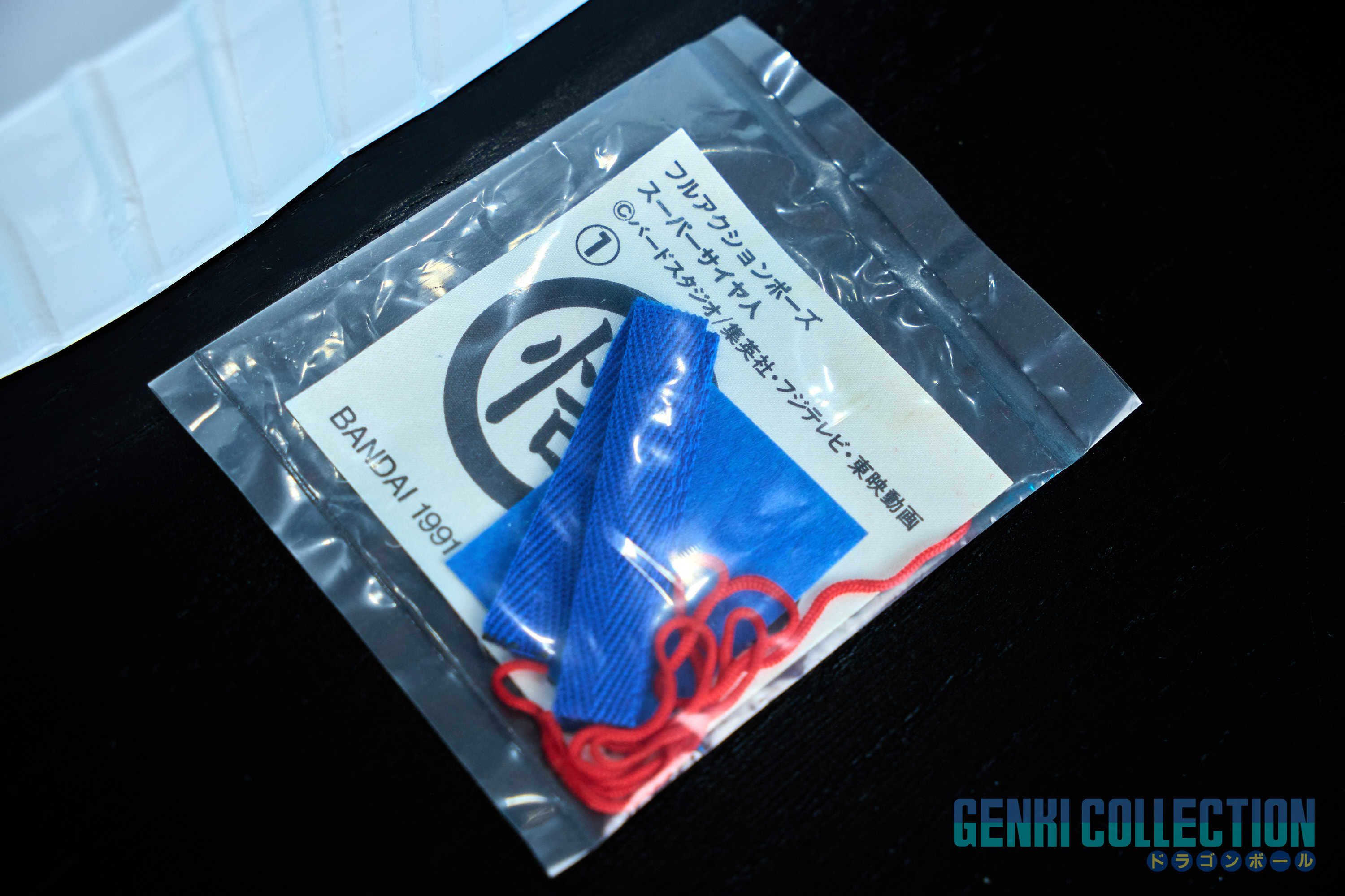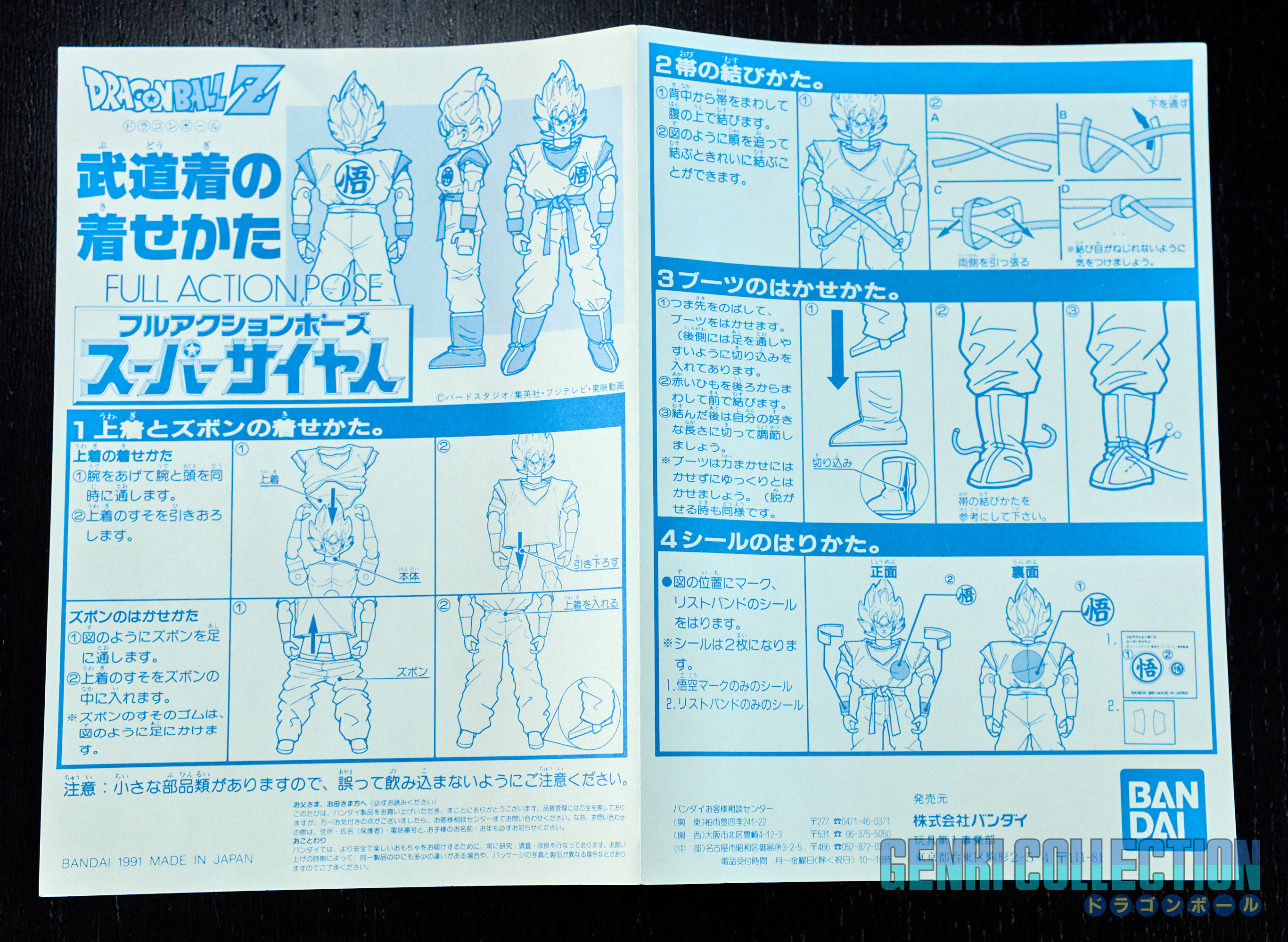 Figurine rare de Son Gokû, série Full Action Pose éditée par Bandai en 1991. Boîte un peu abîmée, mais intérieur en excellent état. Les stickers, ceintures et protèges poignets sont scellés sous blister et les vêtements en tissus sont éclatants et ne présentent aucune usure (comme neufs).La figurine est parfaitement rigide, ce qui est rare, généralement ces modèles sont facilement "désarticulés". Elle n'a donc jamais été manipulée. La notice est également présente.