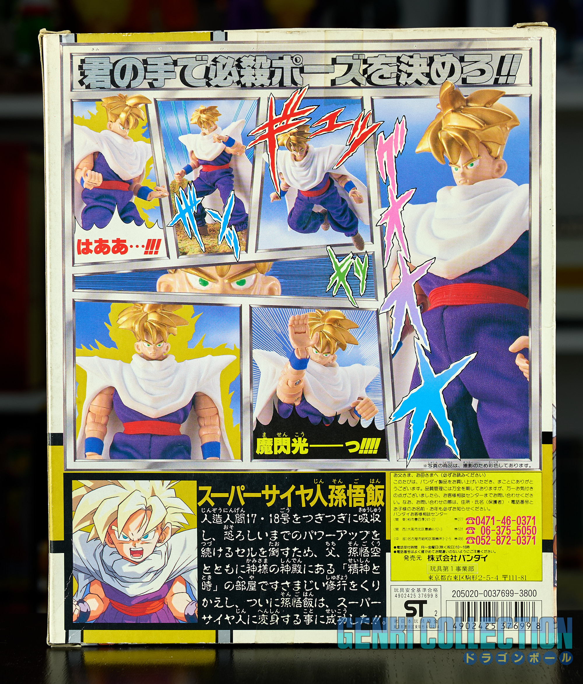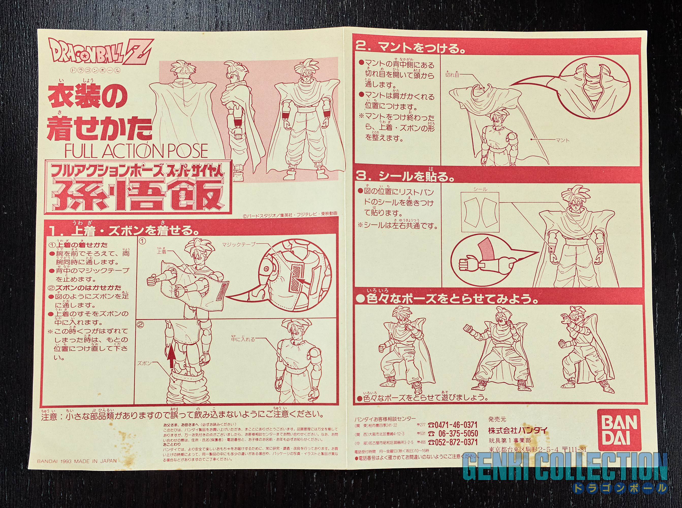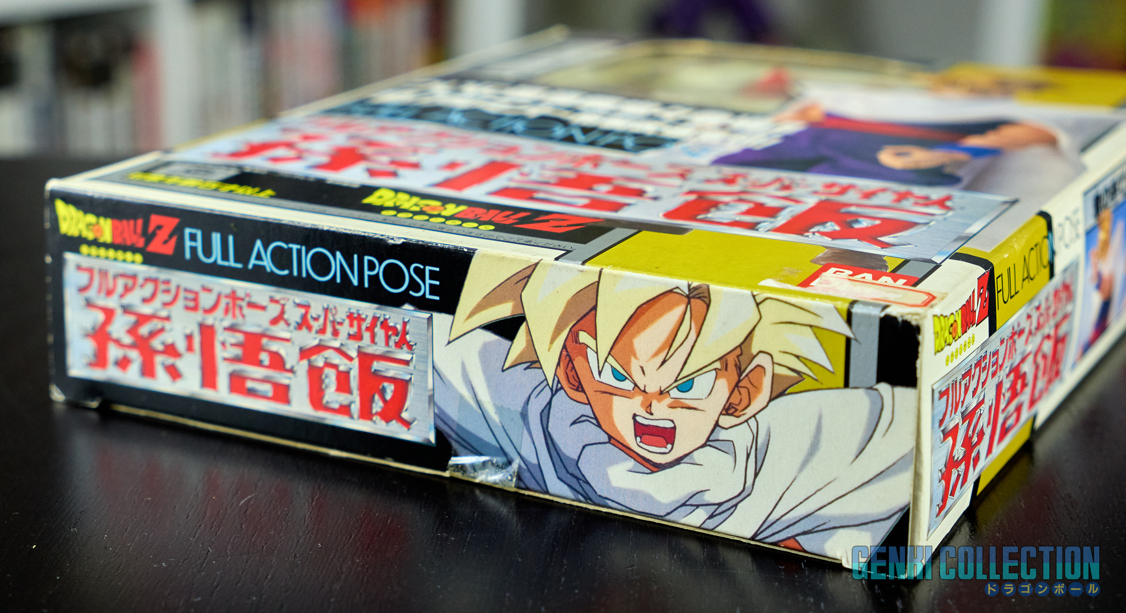Figurine rare de Son Gohan, série Full Action Pose éditée par Bandai en 1993. Boîte un peu abîmée, mais intérieur en excellent état. Les protèges poignets n'ont jamais été collés et les vêtements en tissus sont éclatants et ne présentent aucune usure (comme neufs).La figurine est parfaitement rigide, ce qui est rare, généralement ces modèles sont facilement "désarticulés". Elle n'a donc jamais été manipulée. La notice est également présente.
