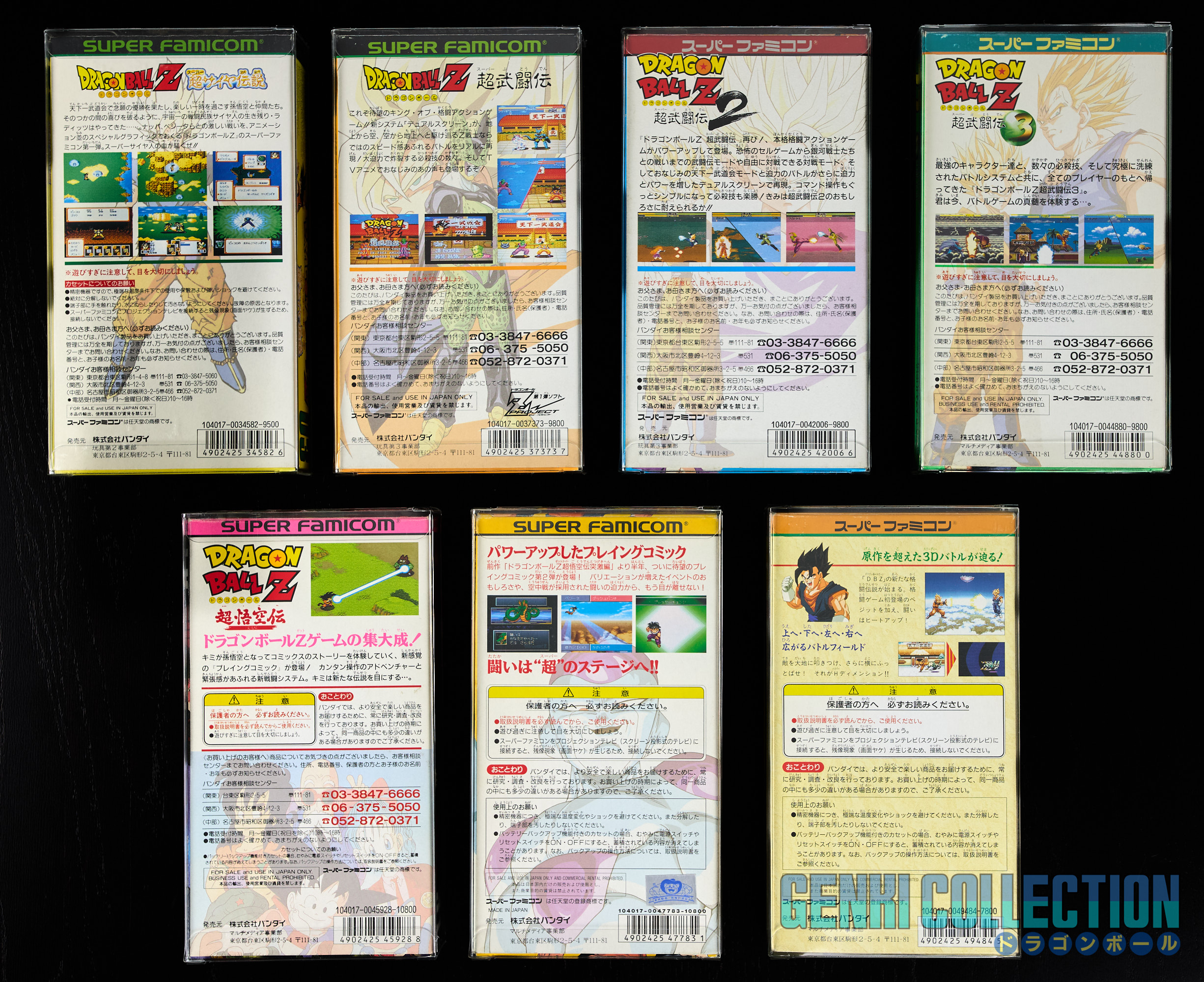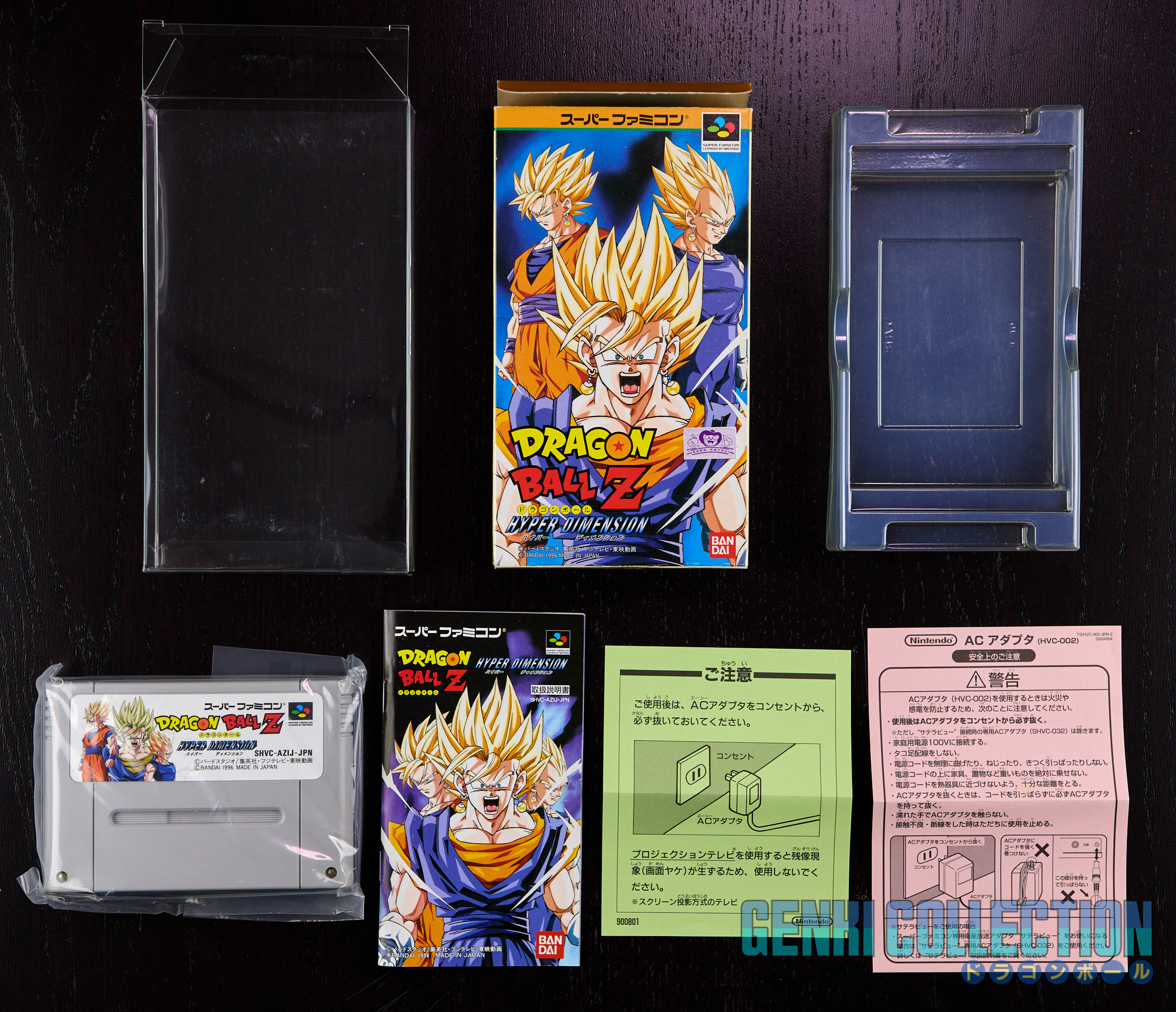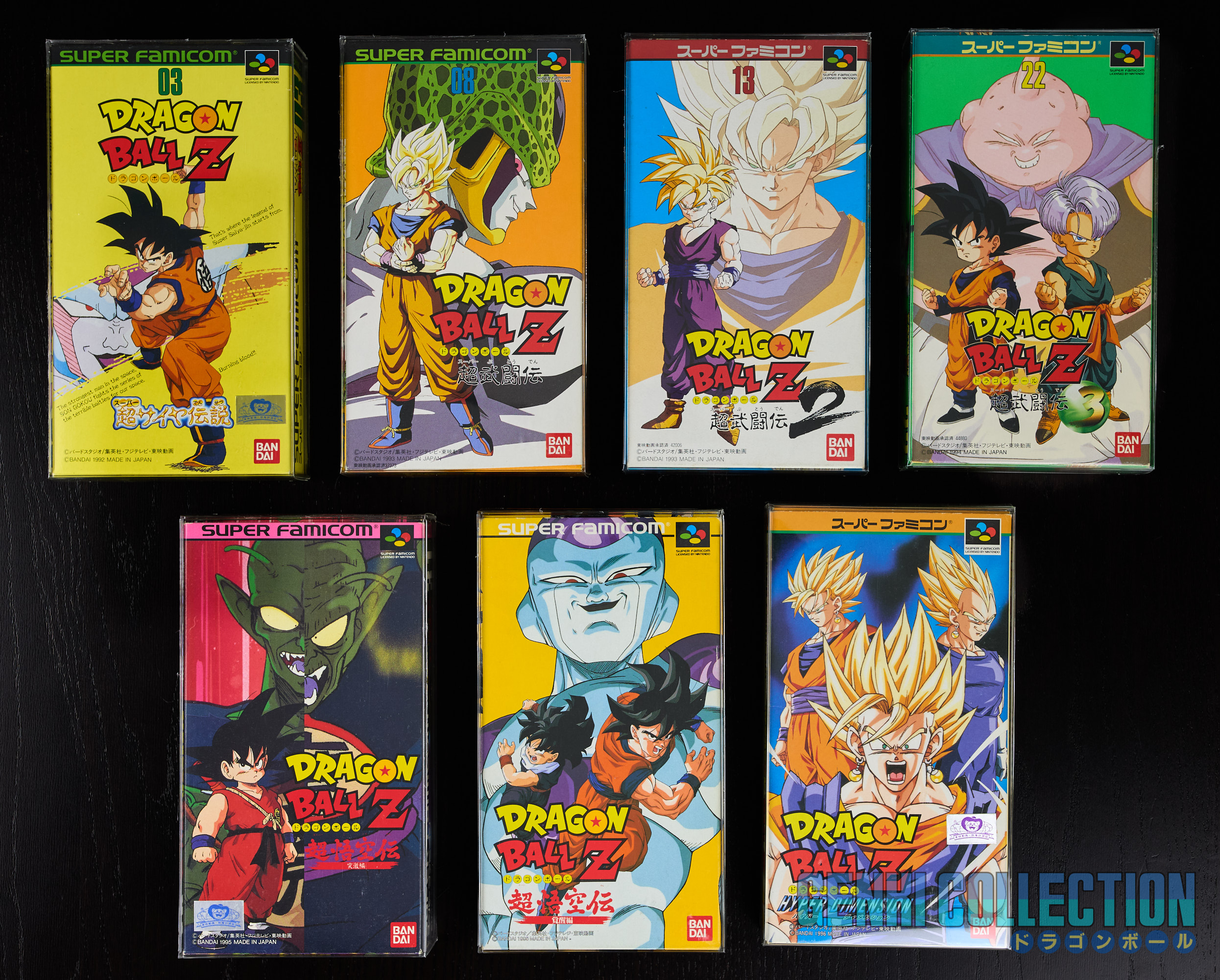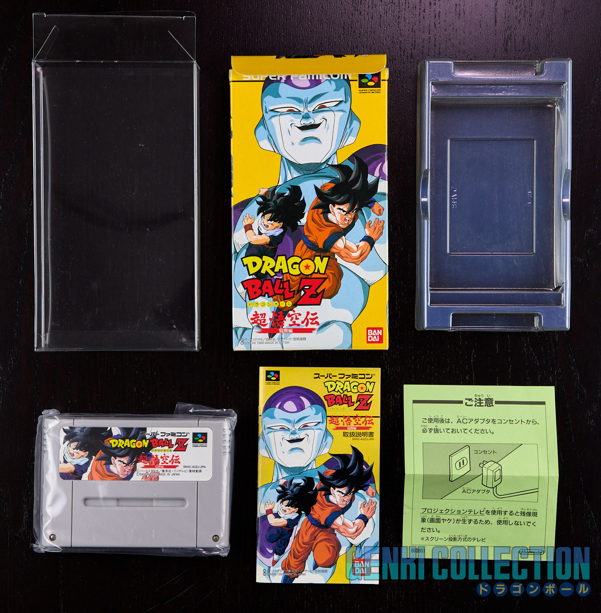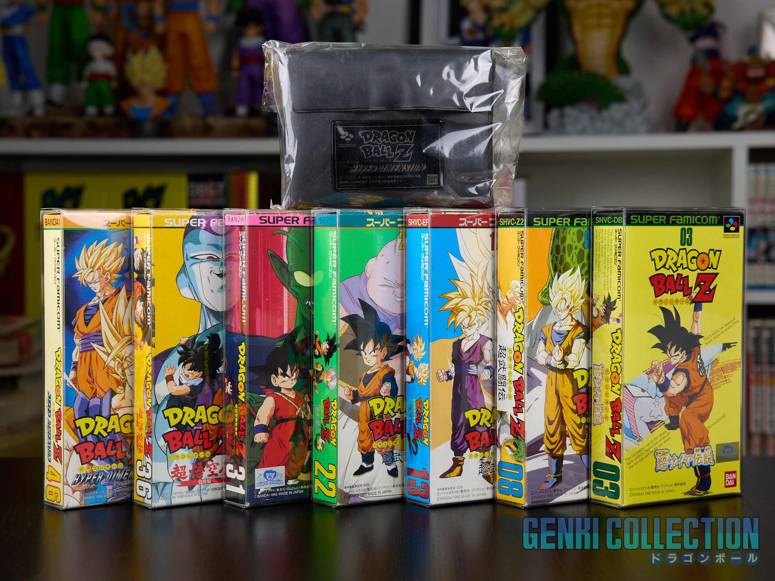 Complete Japanese version set of the 7 Dragon Ball Z video games on Super Famicom (Japanese Super Nintendo), released between 1992 and 1996 and presented in their Crystal Boxes, plus an exclusive "Not for Sale" Hyper Dimension pouch. Games in excellent overall condition and complete, detailed as follows: