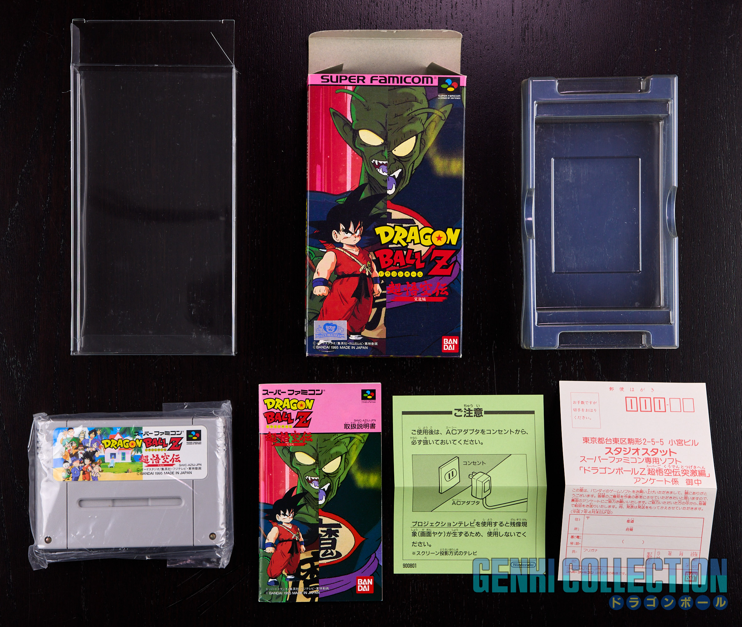 - Dragon Ball Z Super Goku Den Totsugeki Hen (1995) with cartridge, box, manual, and registration card.