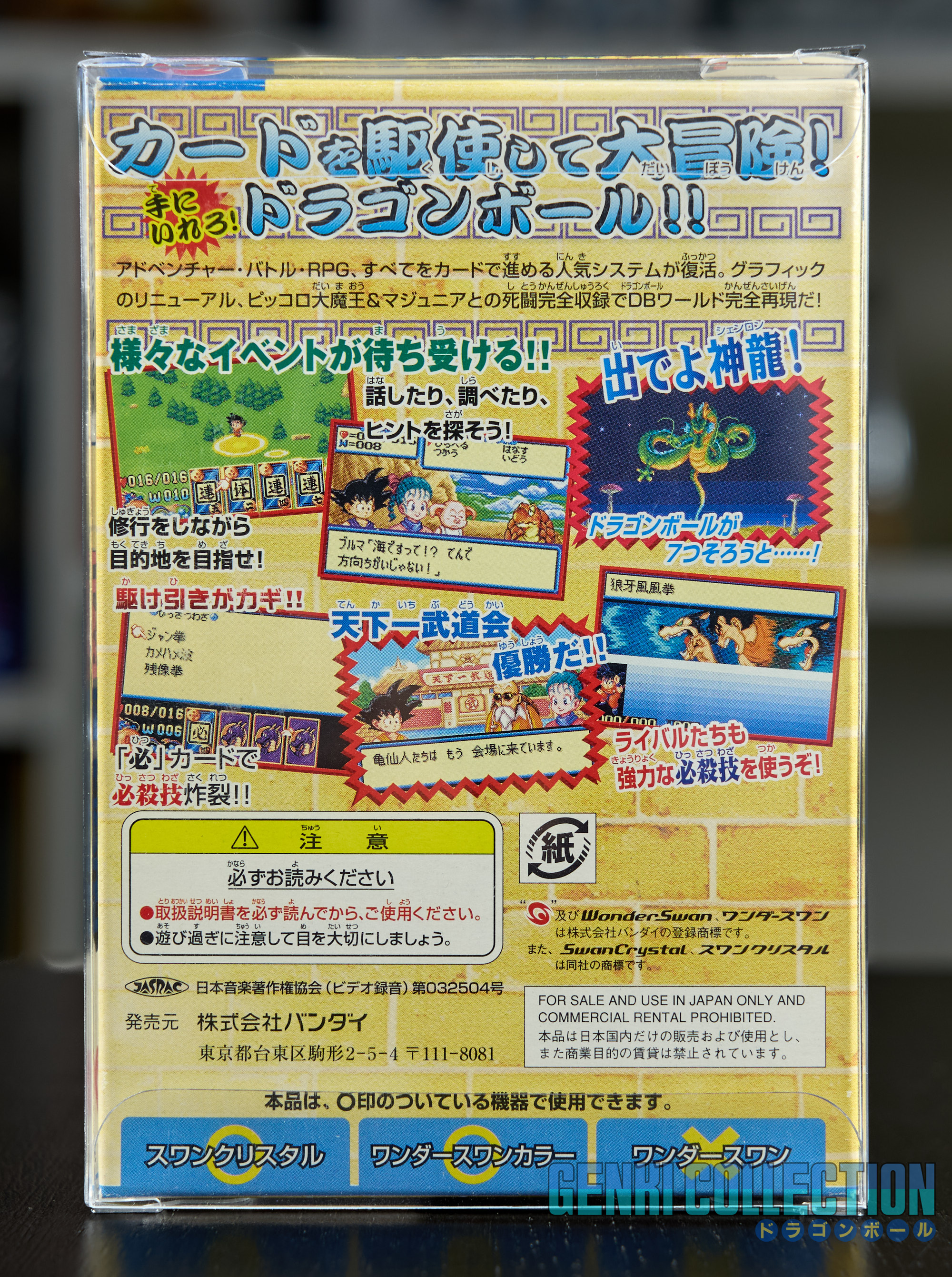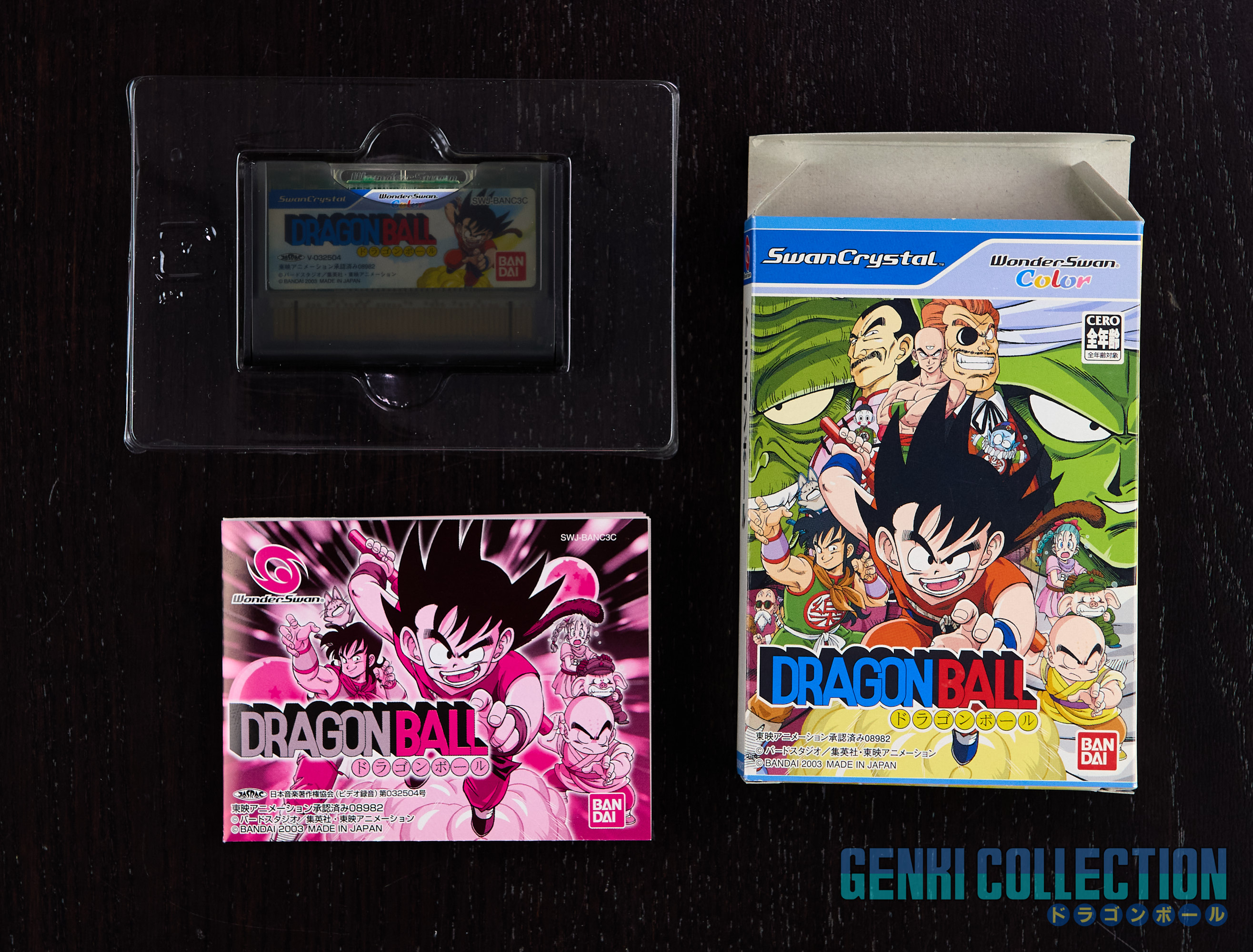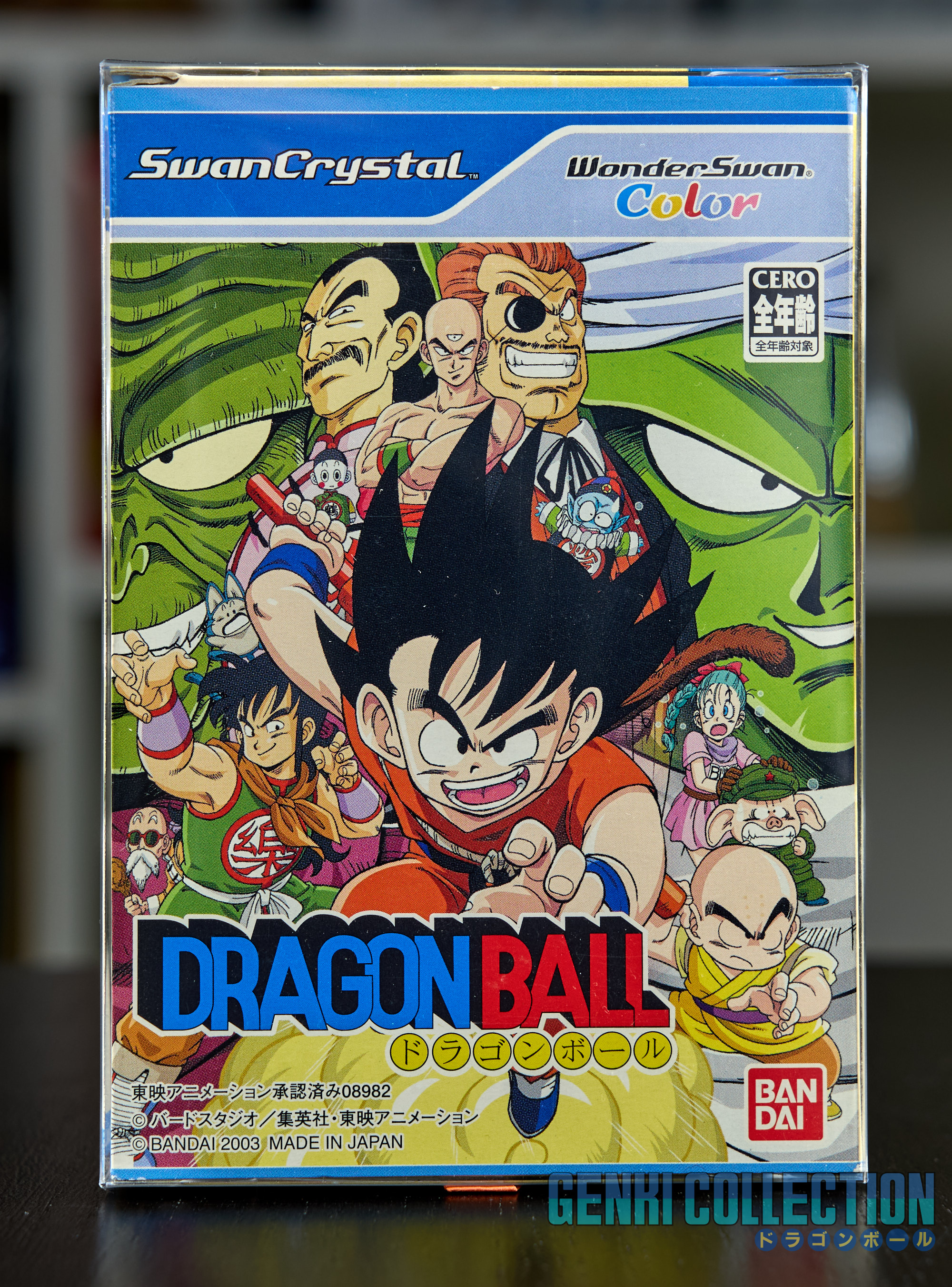 Japanese version video game Dragon Ball for WonderSwan Color and Crystal, released in 2003 and presented in its Crystal Box. A particularly rare game in excellent condition, complete with its box, manual, and cartridge.