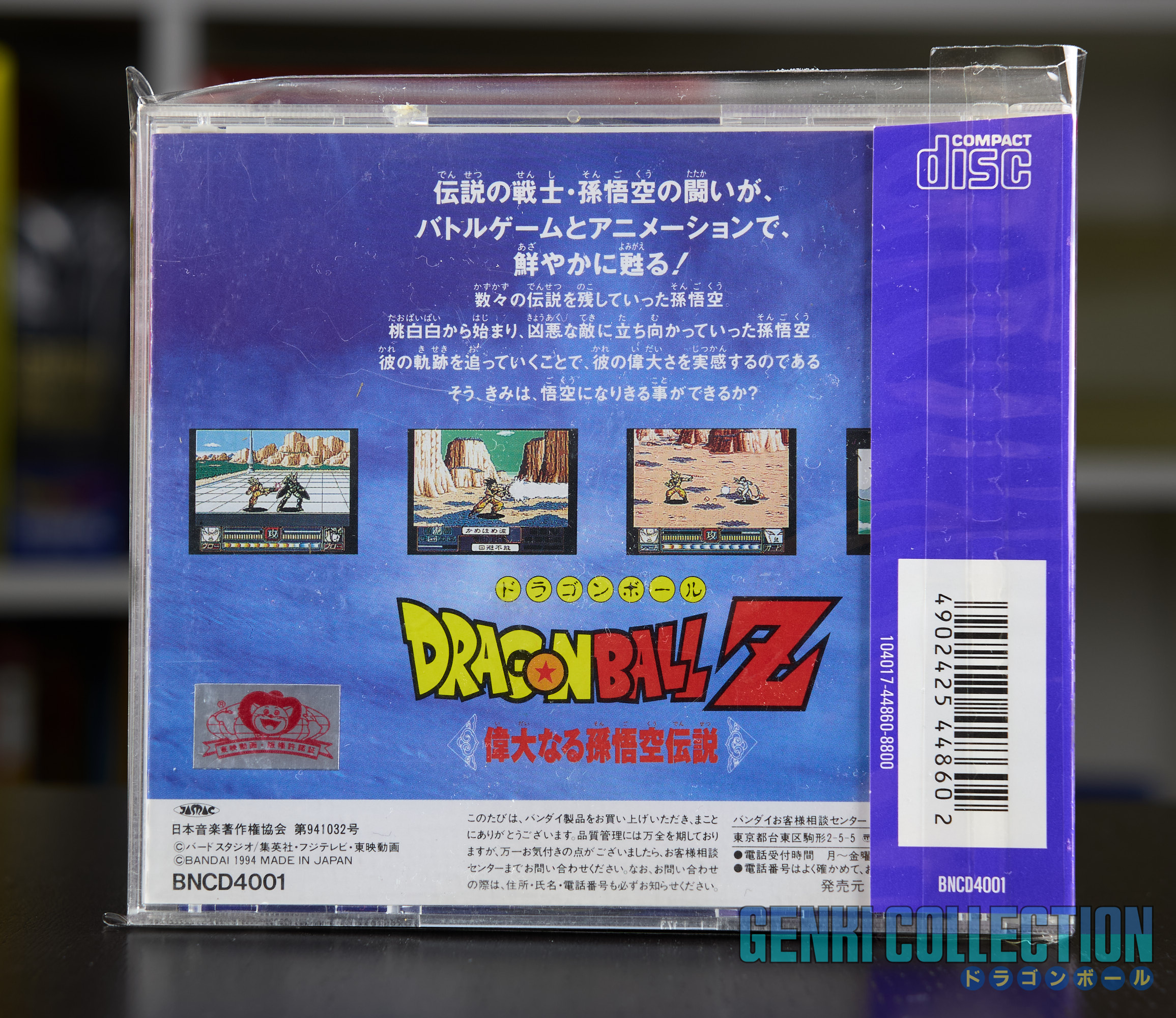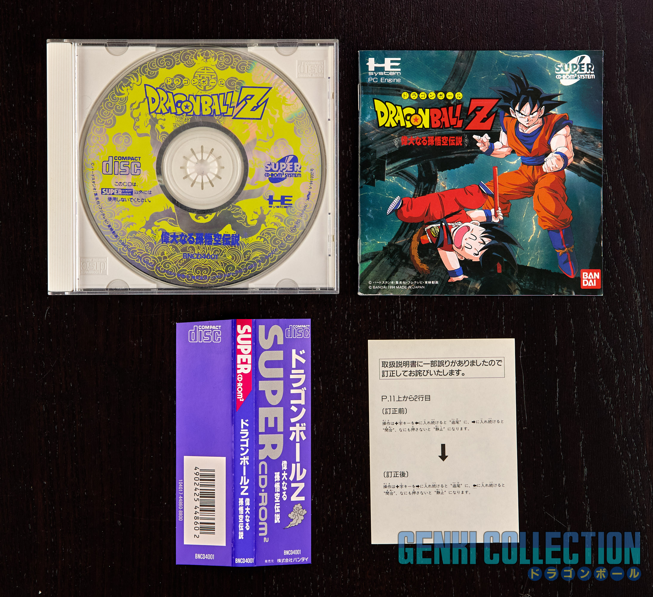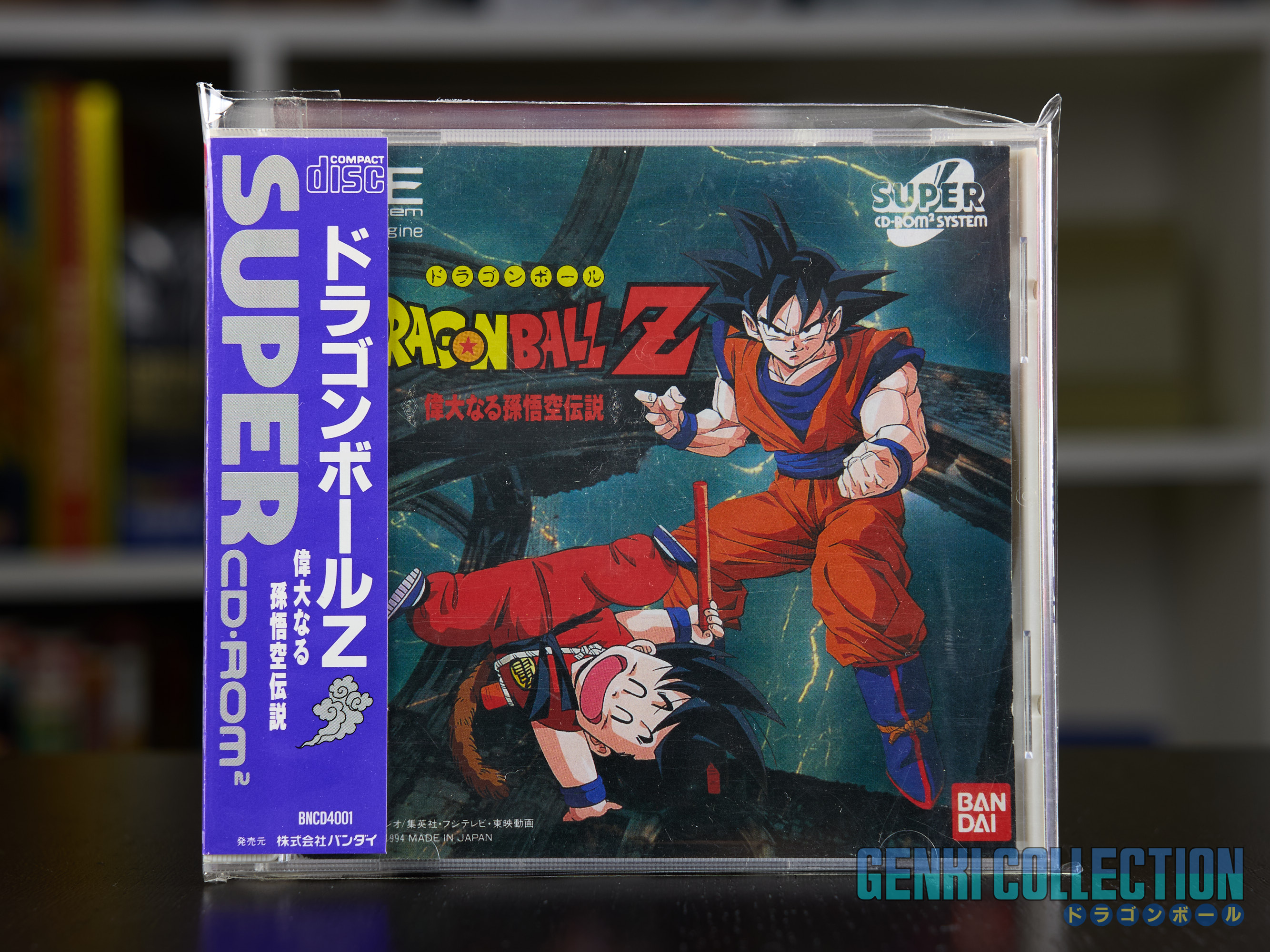 Japanese version video game Dragon Ball Z Idainaru Son Goku Densetsu on the PC Engine Super CD-ROM² console, released in 1994 and protected in cellophane. Game in very good condition, complete with its case, manual, and CD.