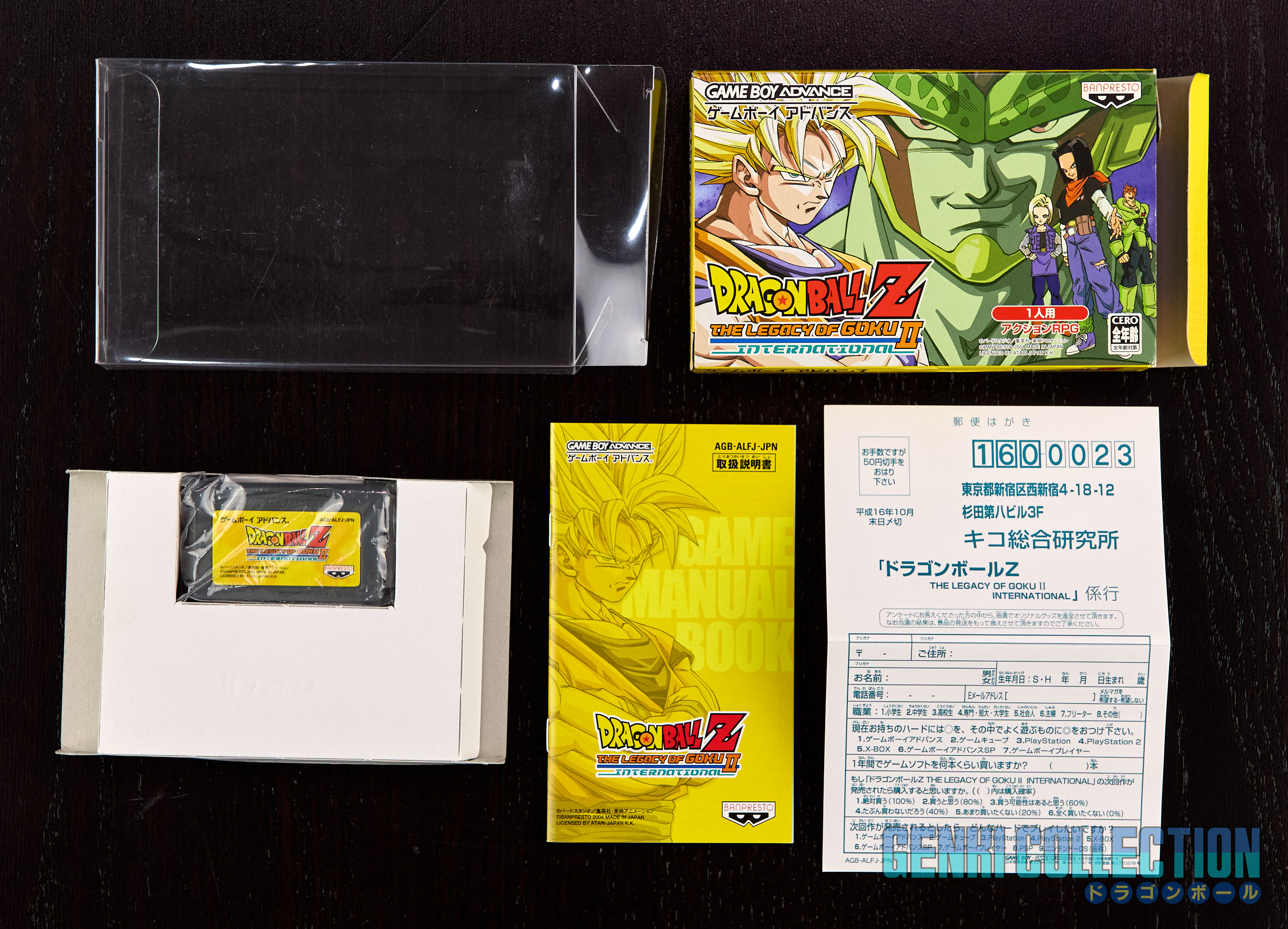 - Dragon Ball Z The Legacy of Goku II International (2004) with cartridge, box (spine slightly bent), manual, and registration card.