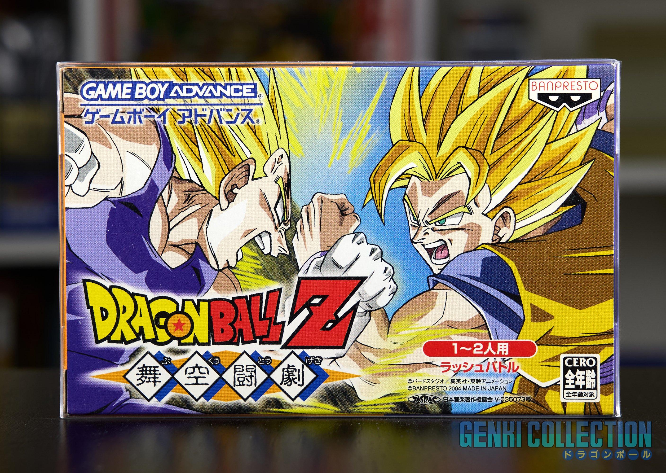 - Dragon Ball Z Bukû Tôgeki (2004) avec cartouche, boîte (très bon état), notice, registered card et flyer publicitaire.
