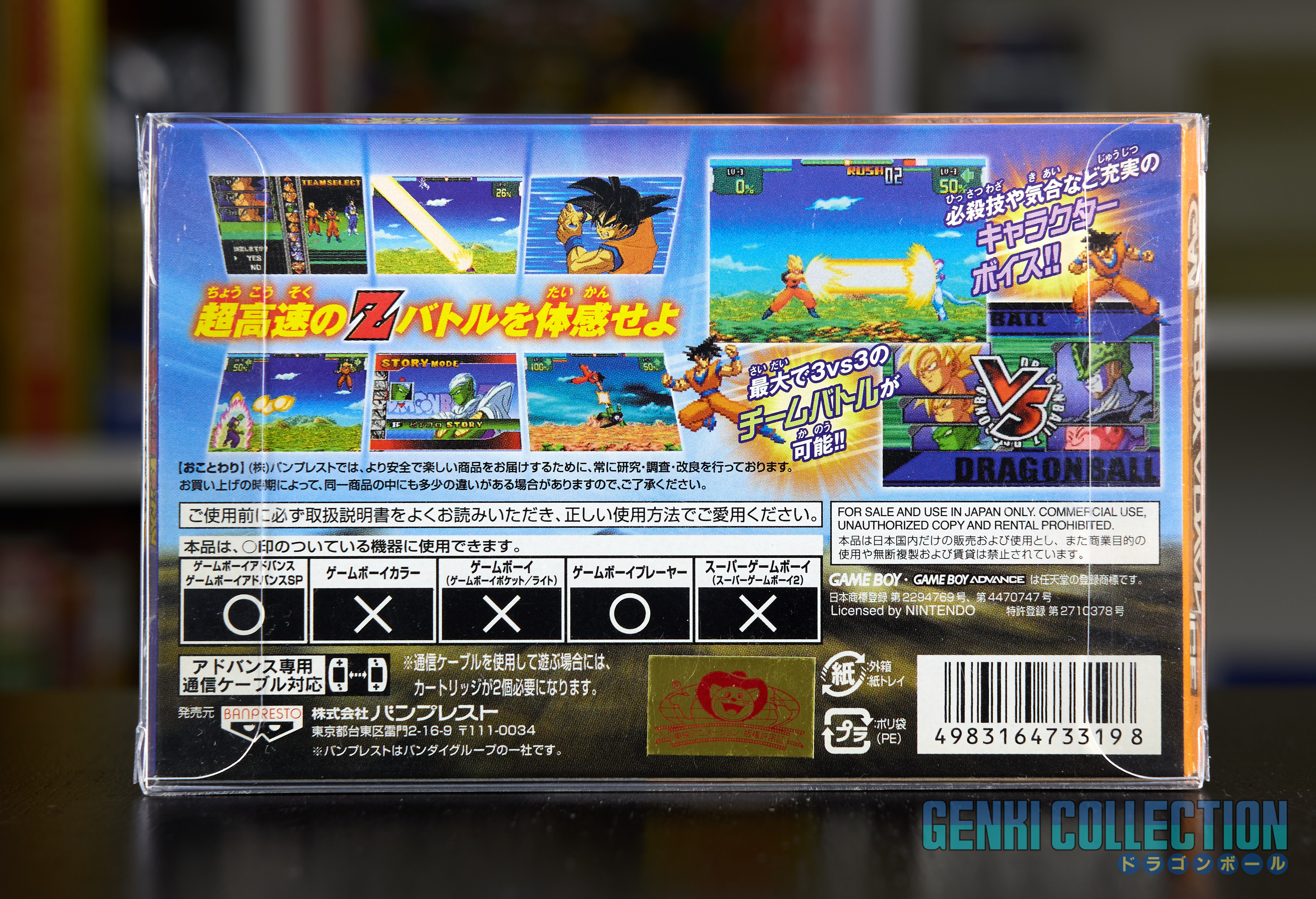 Complete Japanese version set of the 3 Dragon Ball Z video games on Game Boy Advance, released in 2004 and presented in their Crystal Boxes. Complete games detailed as follows: