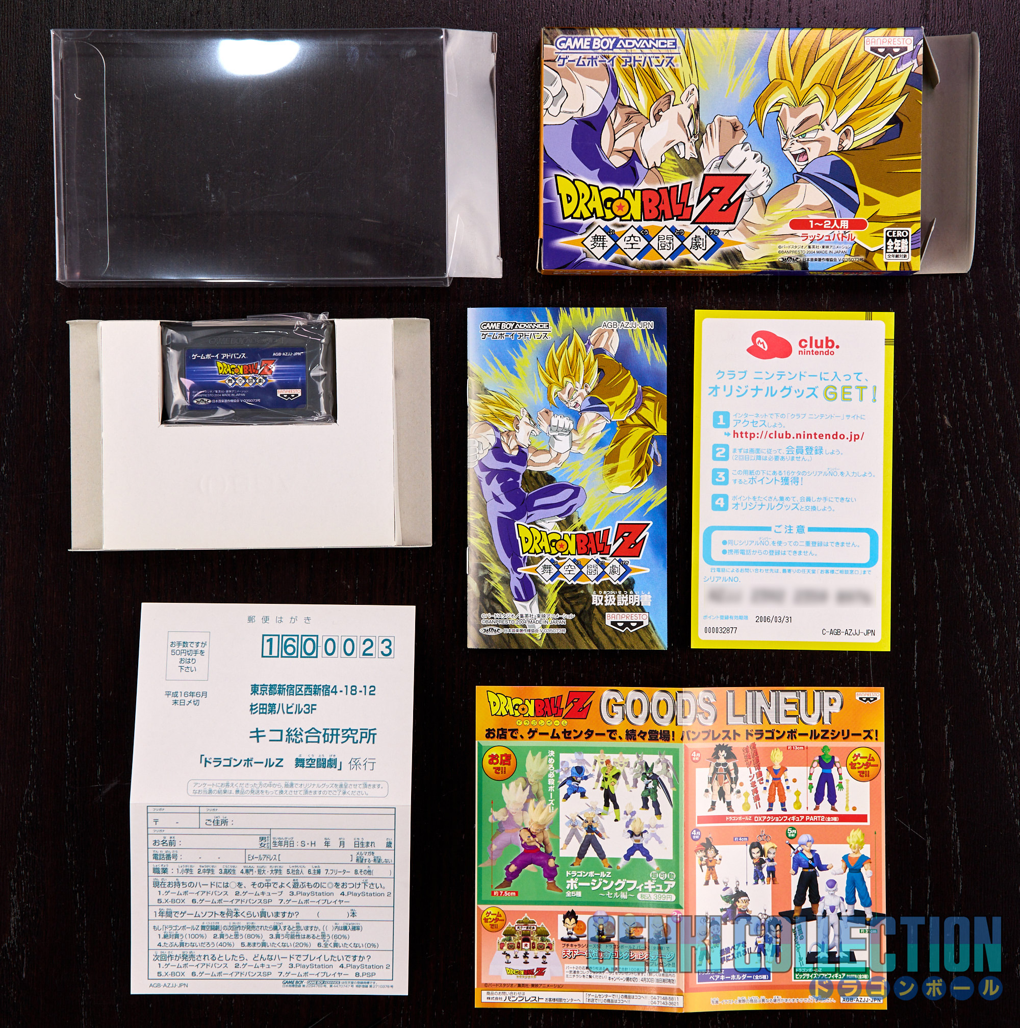 - Dragon Ball Z Buku Togeki (2004) with cartridge, box (very good condition), manual, registration card, and advertising flyer.