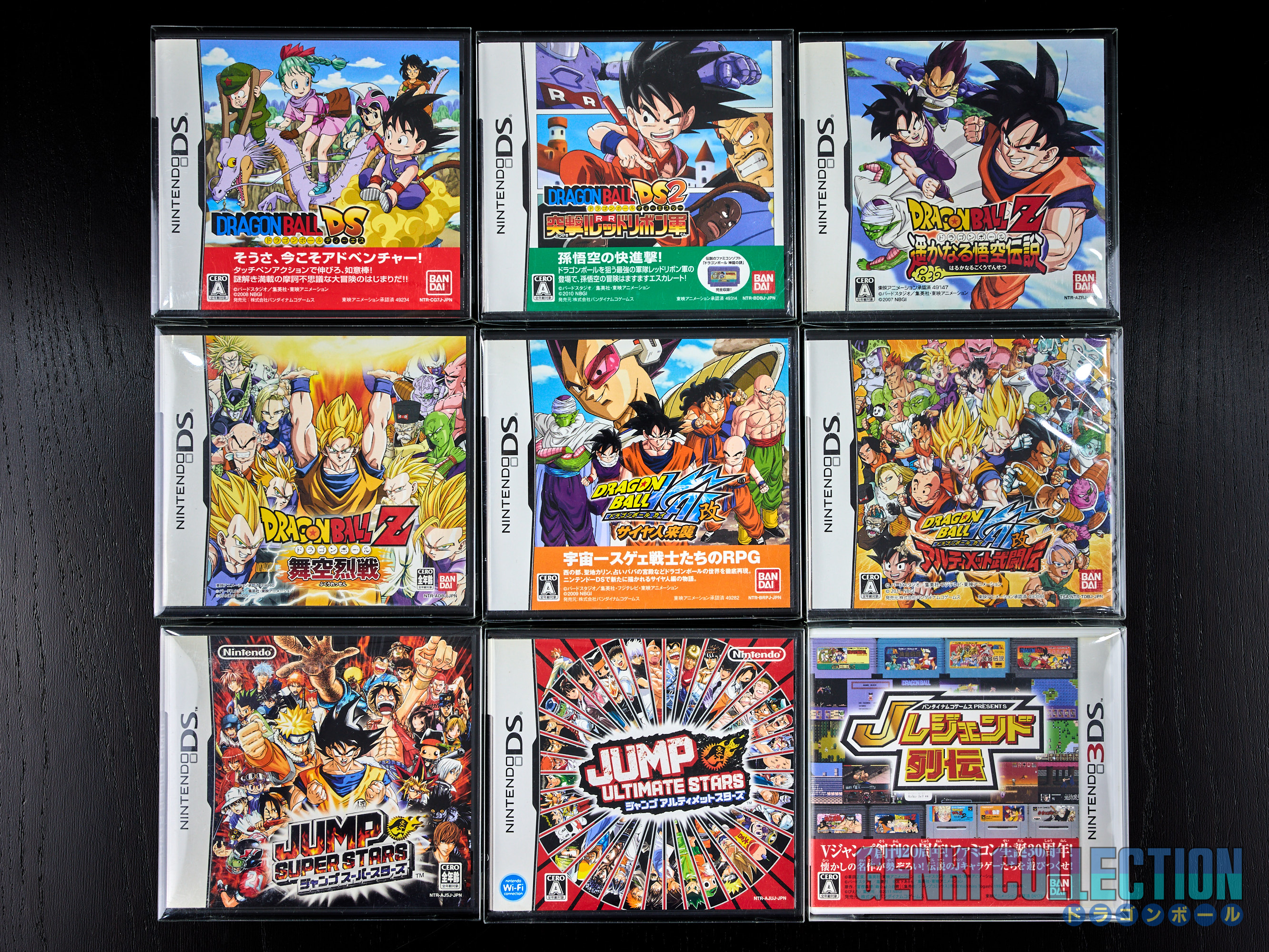 Set of 9 Japanese Dragon Ball, Z, and Kai games on Nintendo DS and 3DS consoles, released between 2005 and 2013 and presented in their Crystal Boxes. The Dragon Ball DS 2 and Ultimate Butoden games are new and sealed. All other games are complete and in very good condition, detailed as follows: