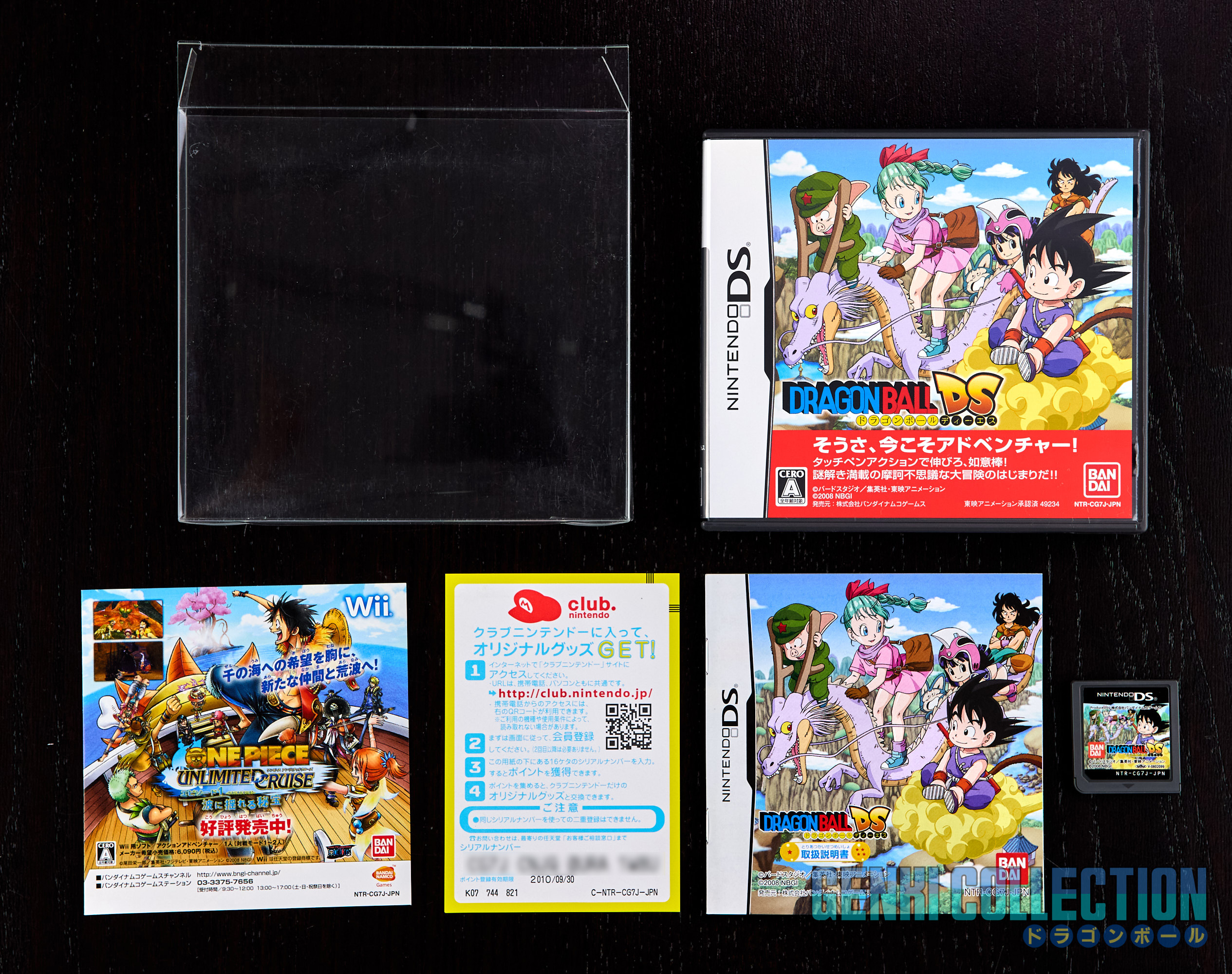 - Dragon Ball DS (NDS - 2008) with cartridge, box, manual, and advertising flyer.
