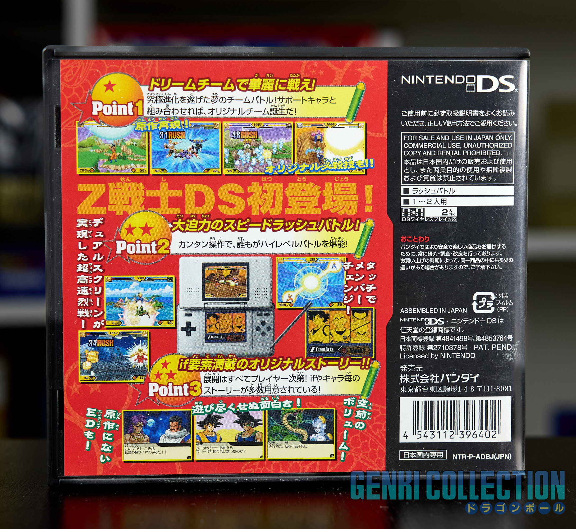 - Dragon Ball Z Harukanaru Gokû Densetsu (NDS - 2007) avec cartouche, boîte, notice et registered card.