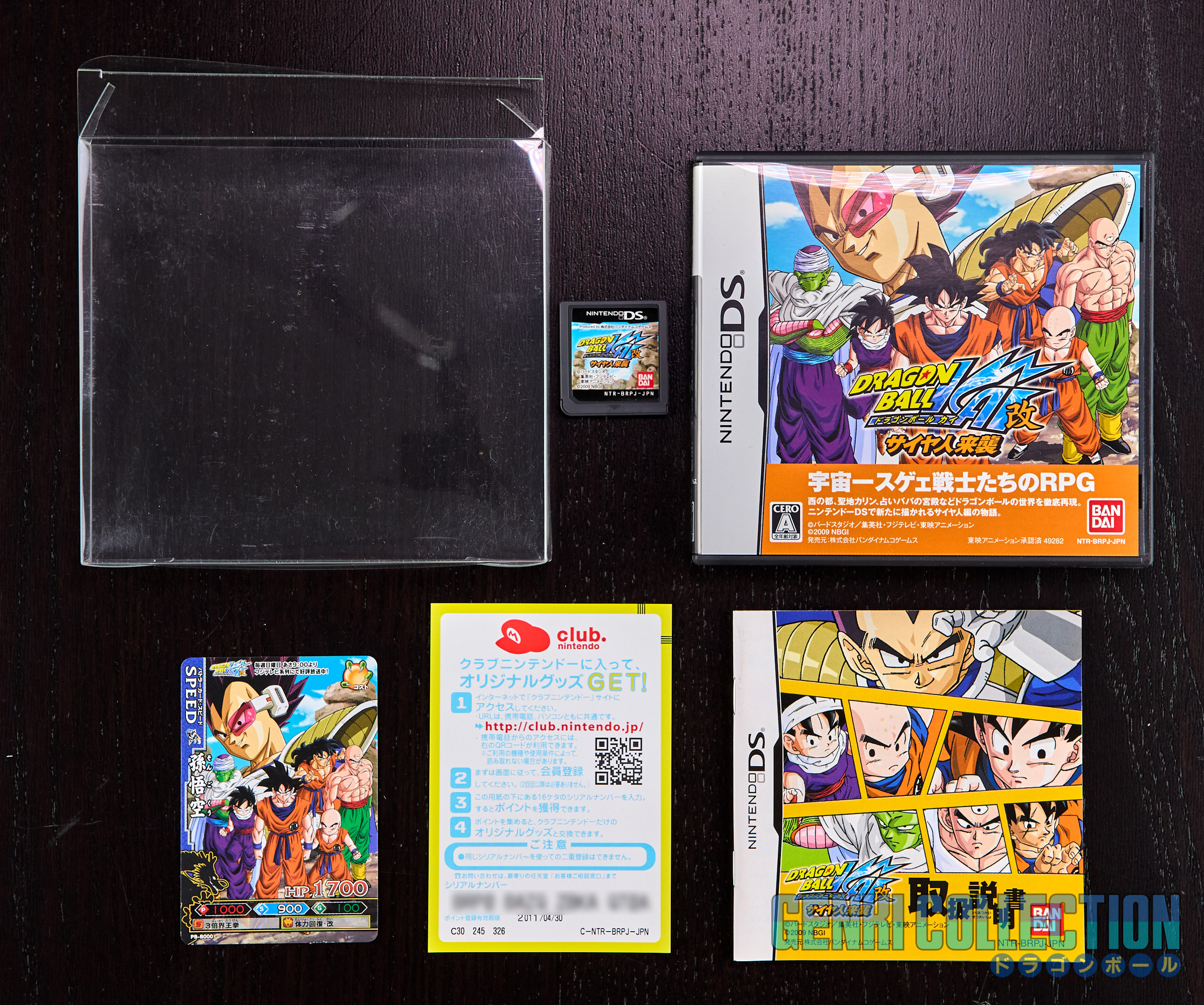 - Dragon Ball Kai Saiyajin Raishu (NDS - 2009) with cartridge, box, manual, promotional card, and registration card.