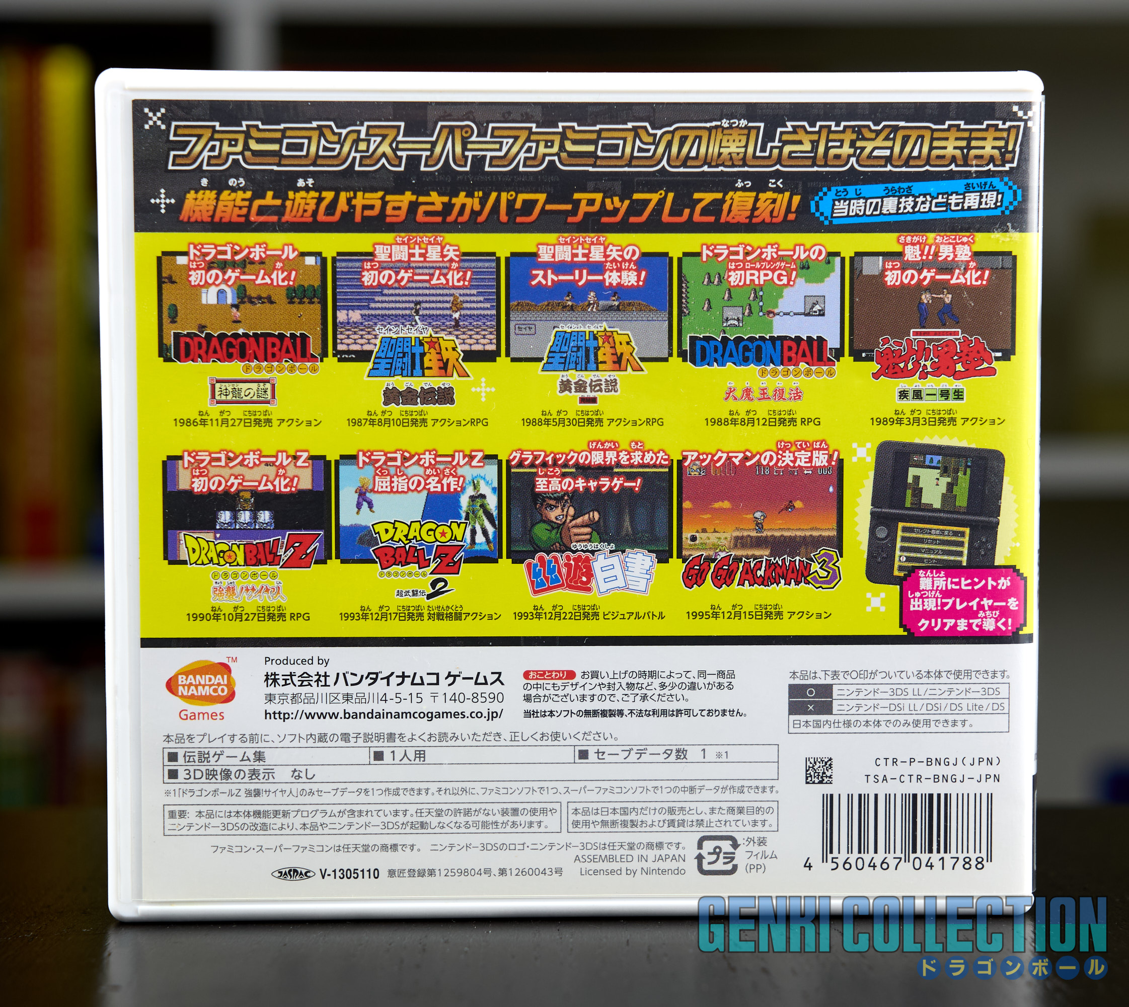 Ensemble de 9 jeux japonais Dragon Ball, Z et Kai sur consoles Nintendo DS et 3DS, sortis entre 2005 et 2013 et présentés dans leur Crystal Box. Les jeux Dragon Ball DS 2 et Ultimate Butôden sont neufs et scellés. Tous les autres jeux sont complets et en très bon état, dont voici le détail :