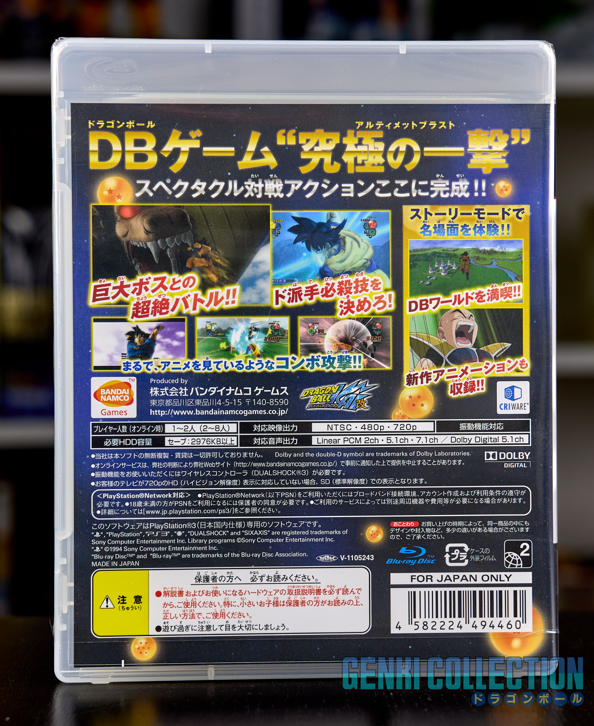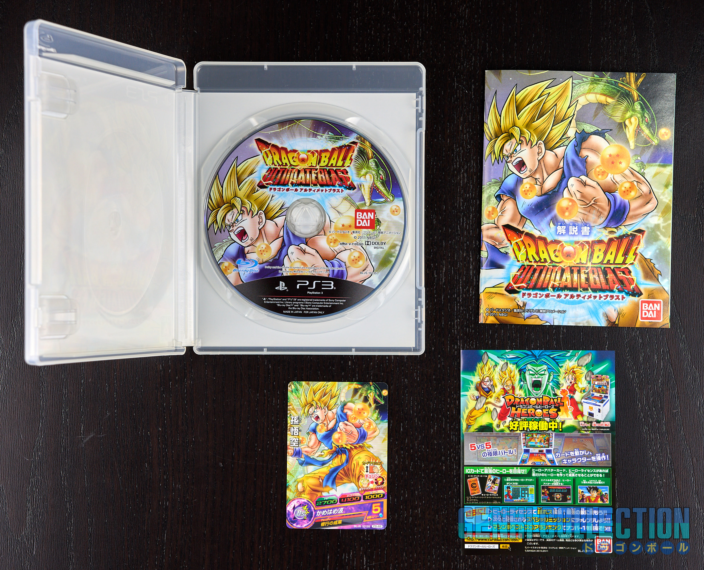 - Dragon Ball Ultimate Blast (2011) avec boîte, notice, CD, carte promotionnelle et flyer publicitaire.