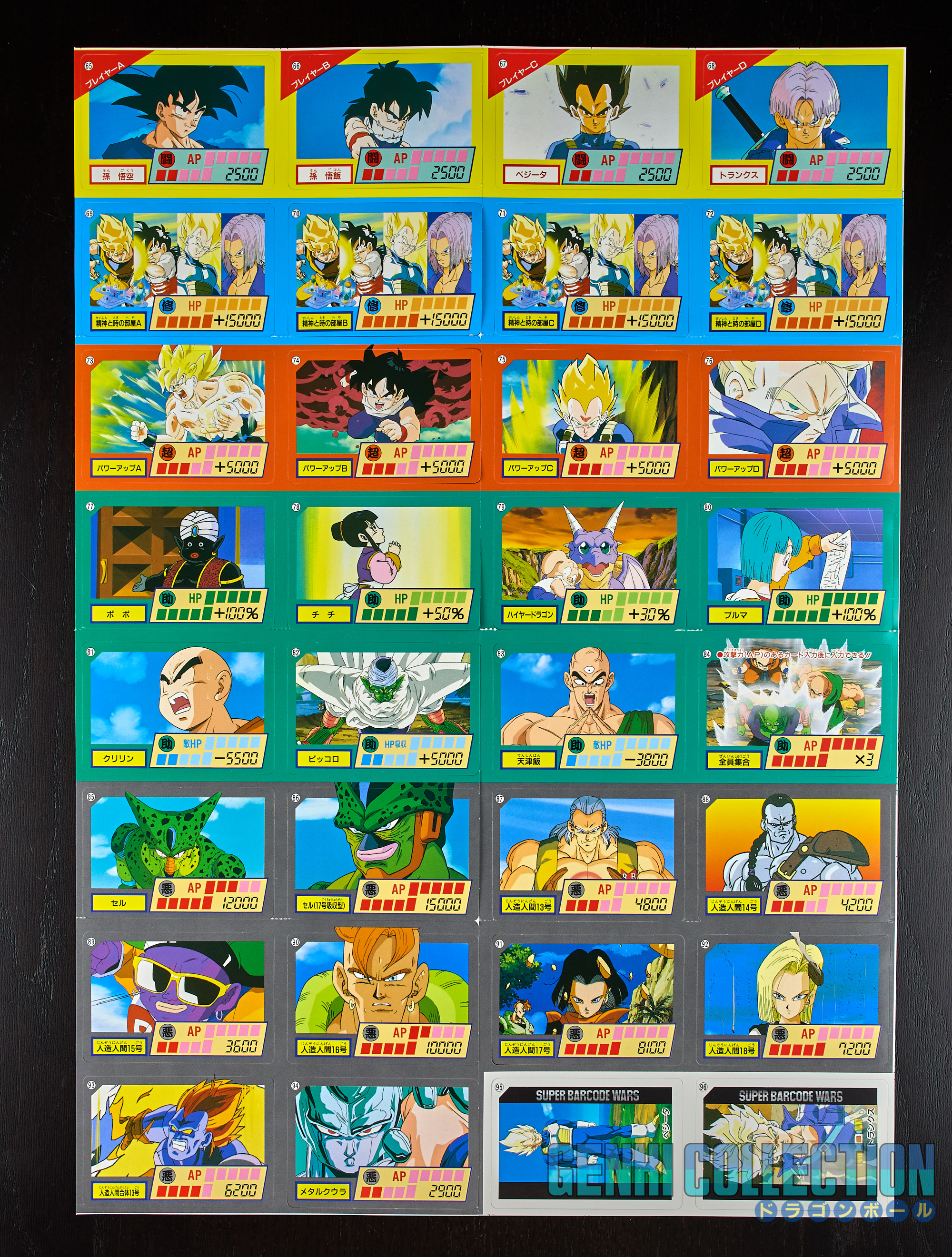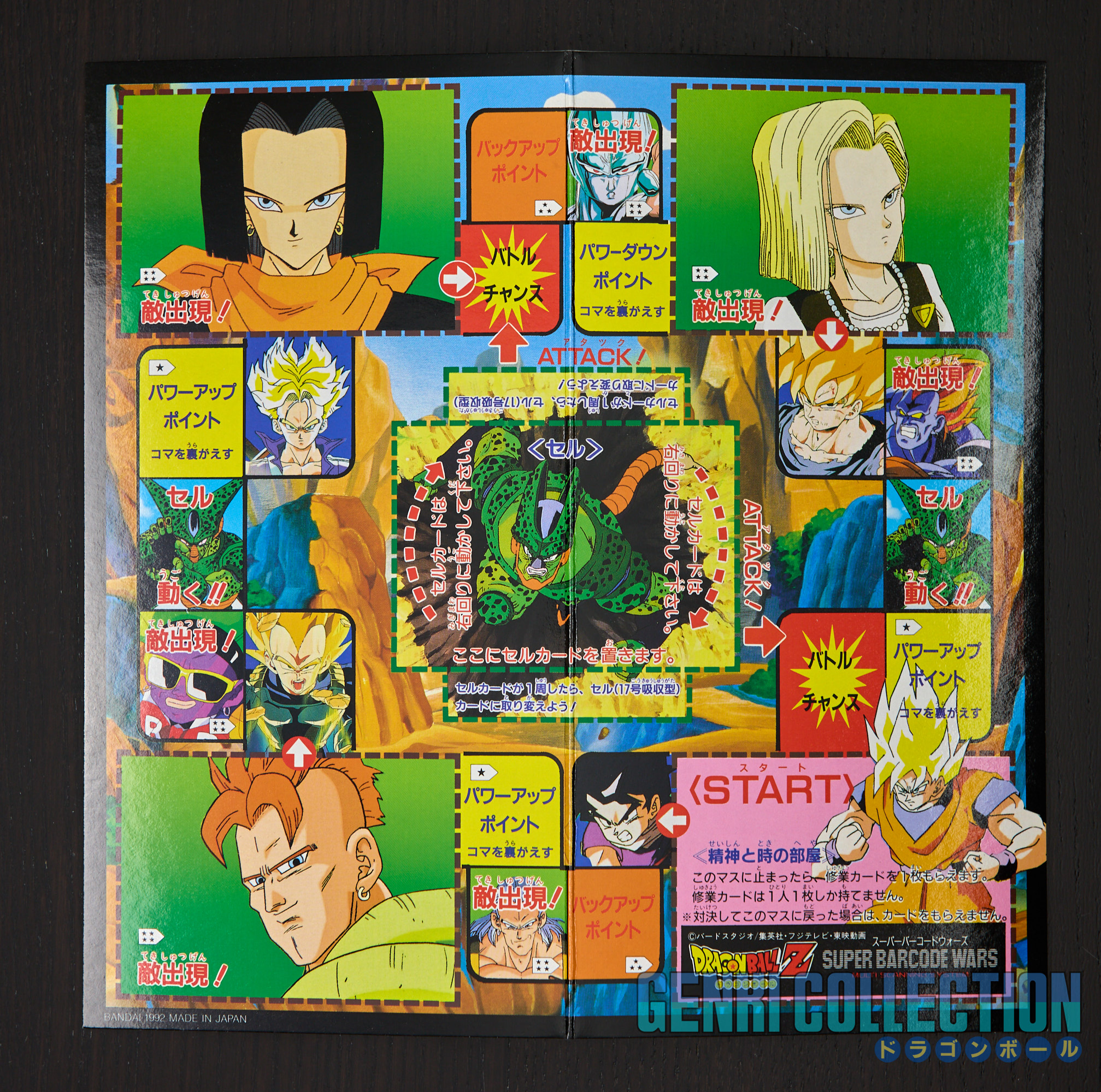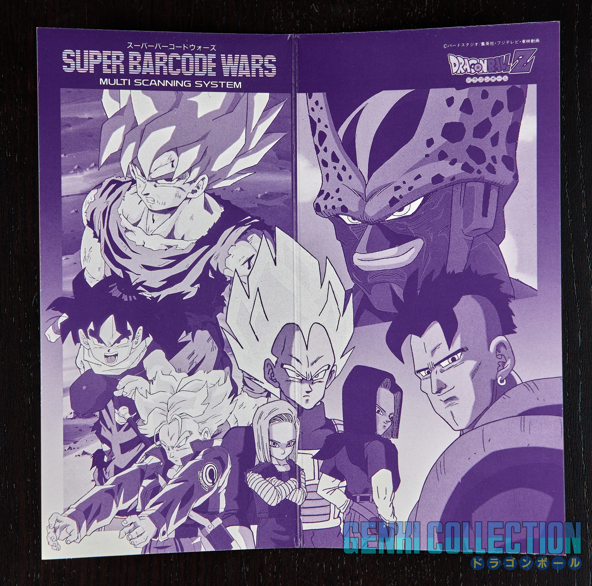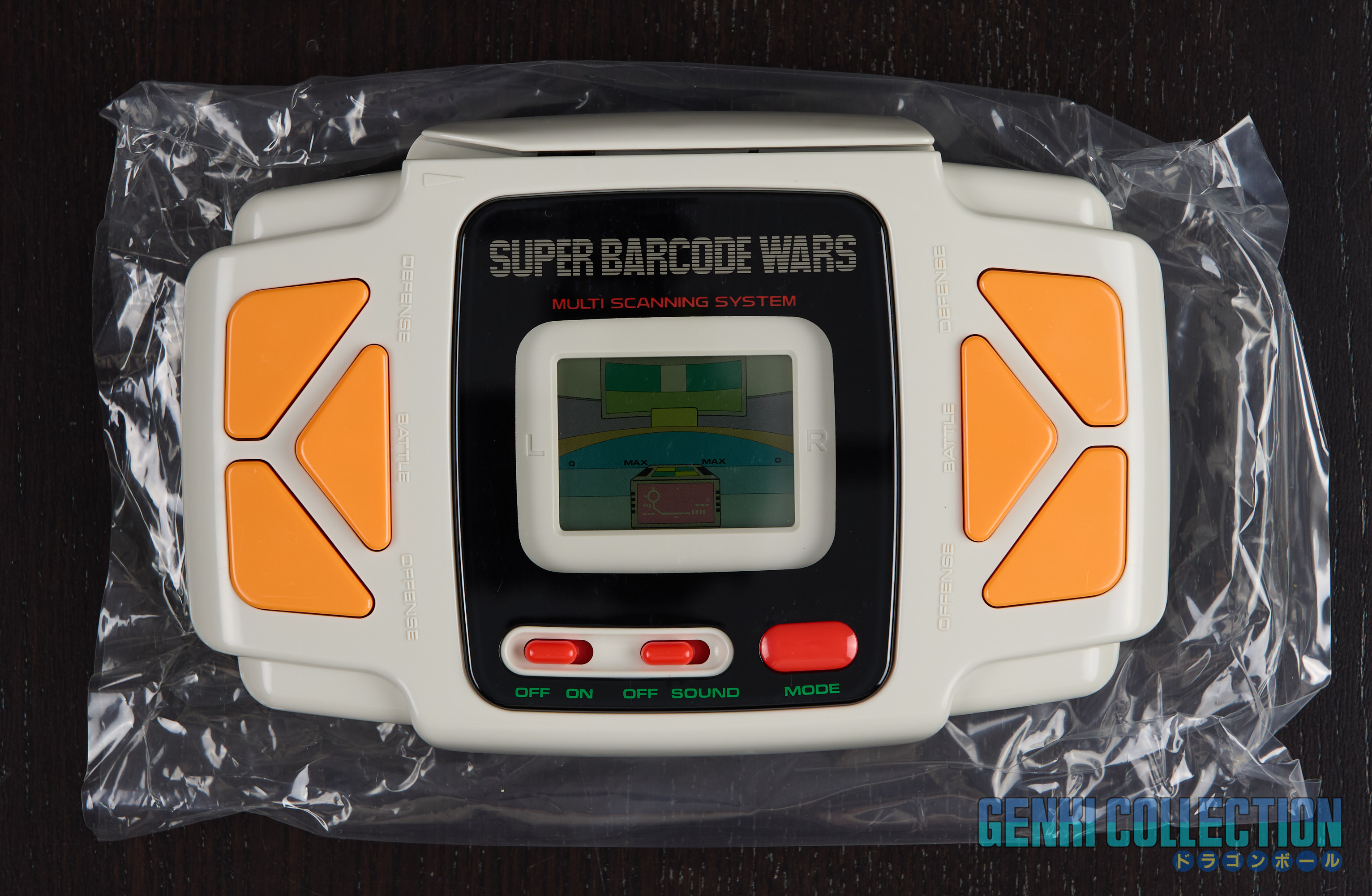 Dragon Ball Z Super Barcode Wars electronic game and its Battle Game Set appendix, released in 1992. The lot is in excellent, near-mint condition. The original game contains the barcode scanner device (battery operated), 4 tokens, instruction manual, a cardboard game board, and a set of 64 cards. The additional set includes 4 round tokens to be customized with "prism" stickers (unpeeled), an instruction manual, a new game board, and a set of 32 "sprued" cards (they have never been detached).